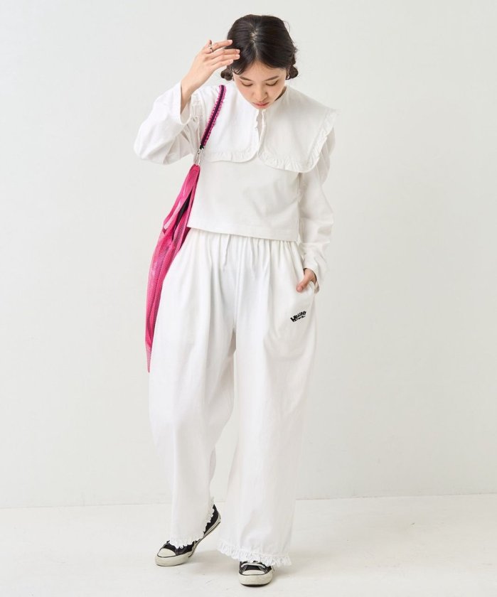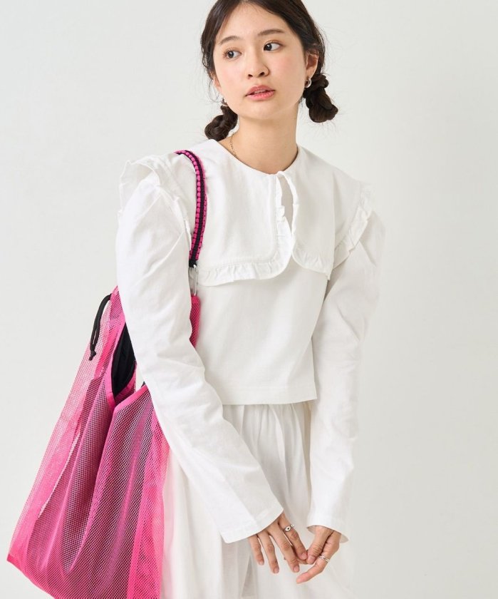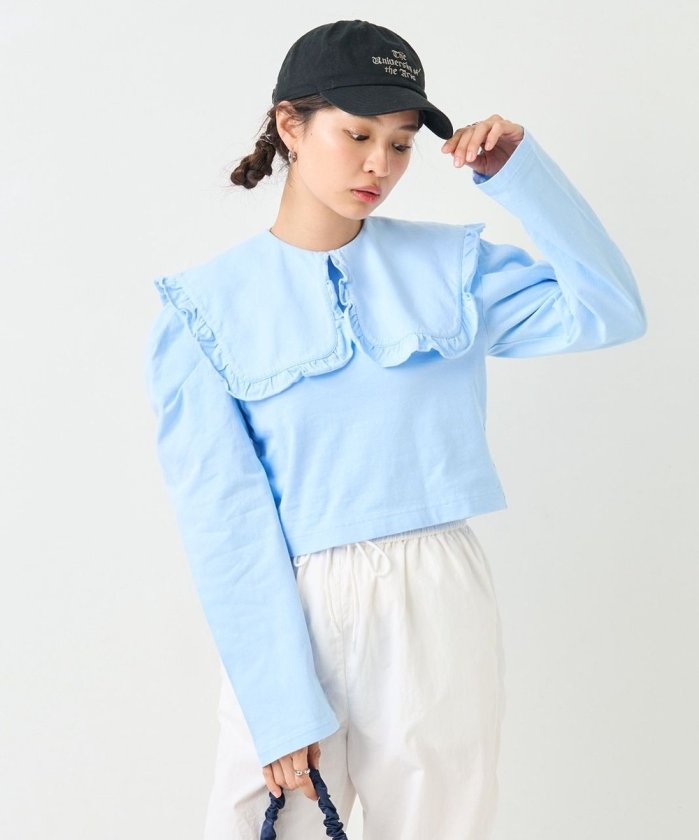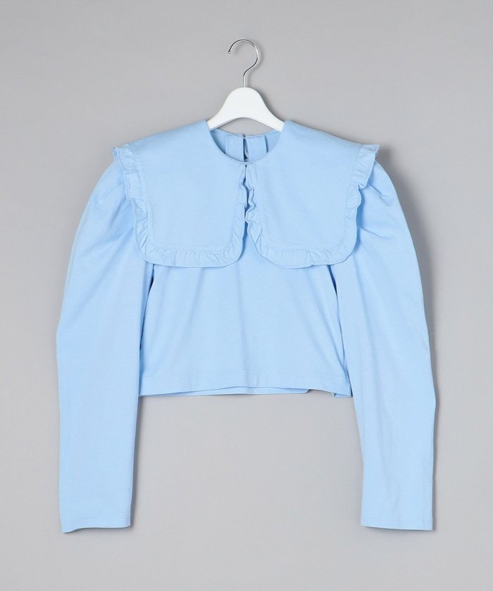 這款來自 [SUPER FINE DRY] 的剪裁荷葉邊領 T 恤以其厚重和乾爽的質地為特色。