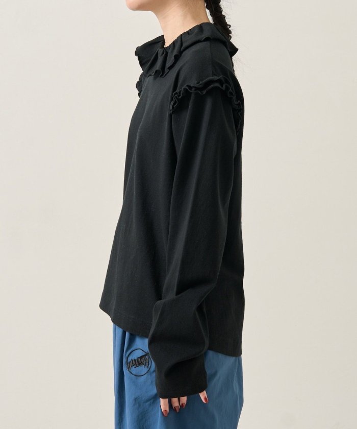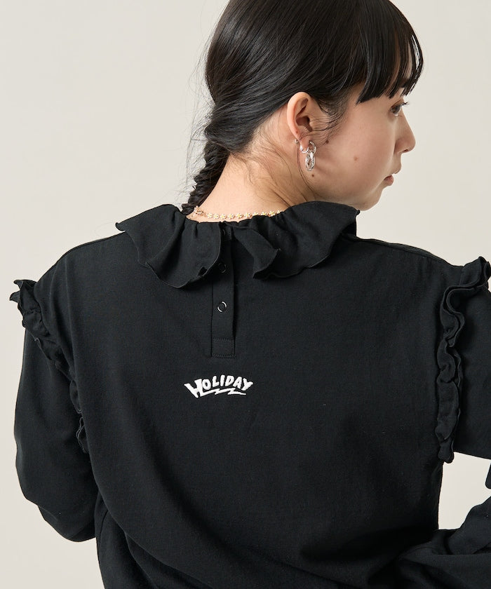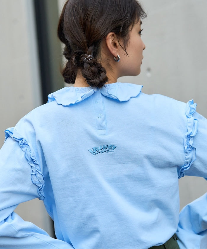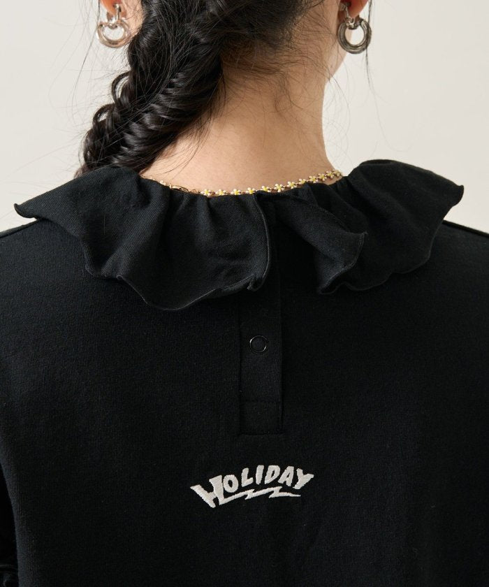 荷葉邊寬度較短,剪裁和縫製面料結實,不會過於甜膩,具有類似 HOLIDAY 的平衡感。