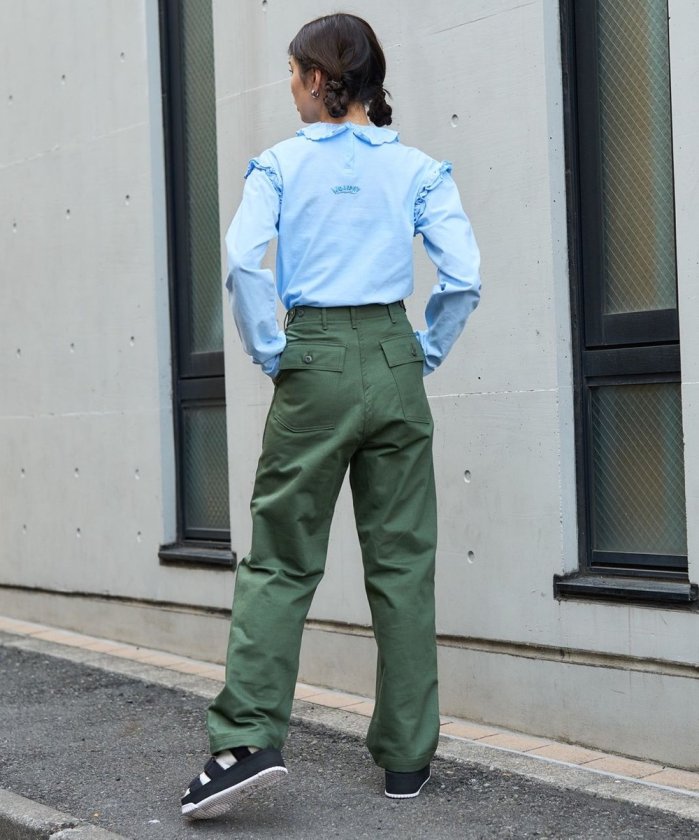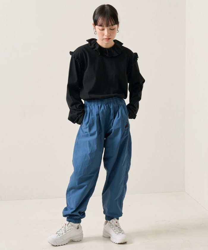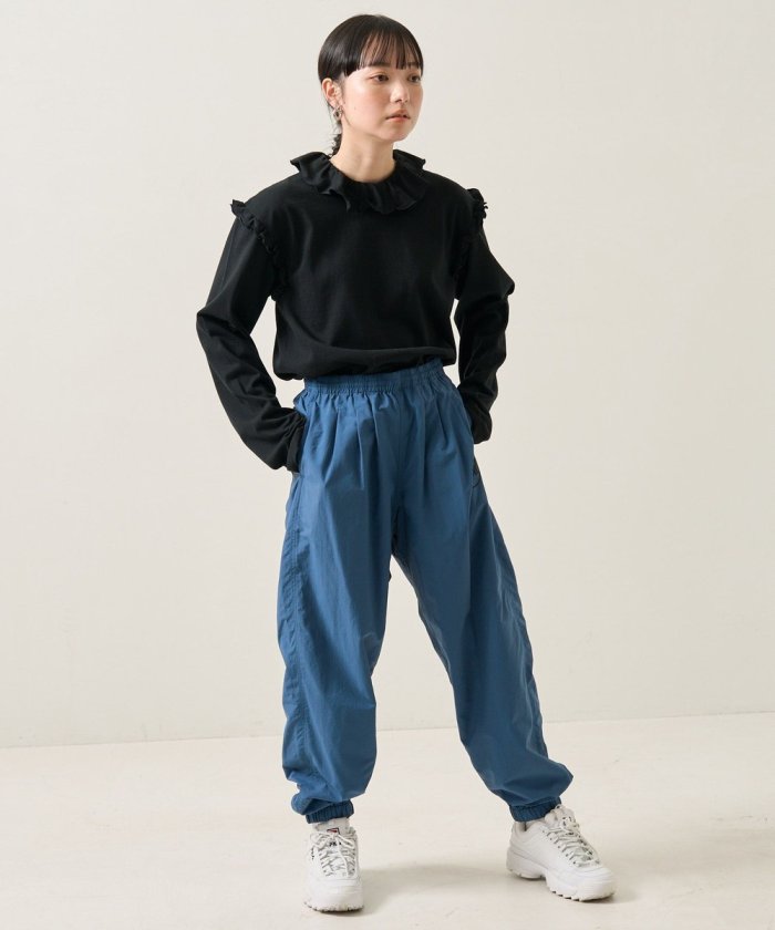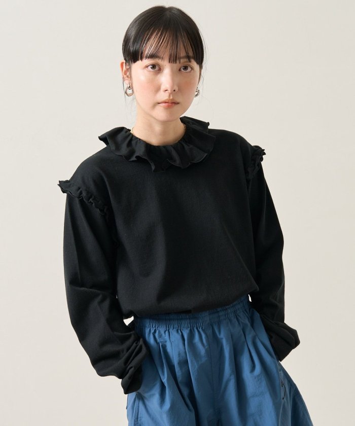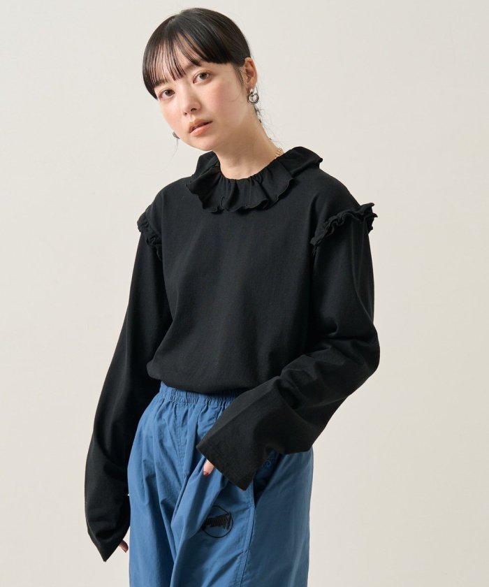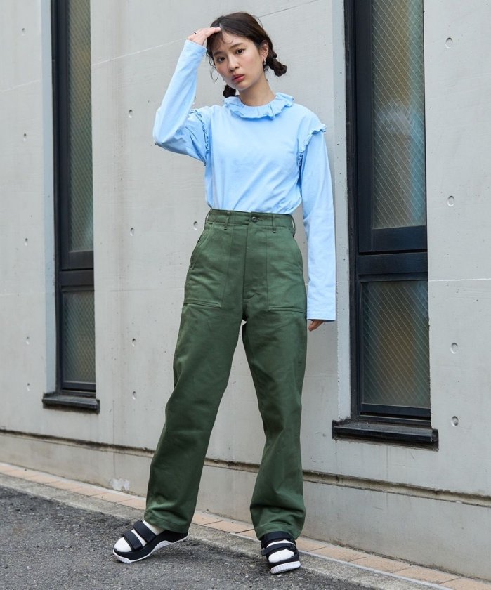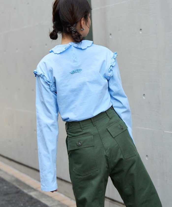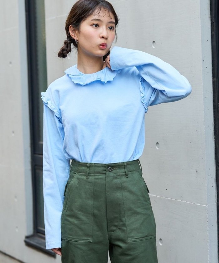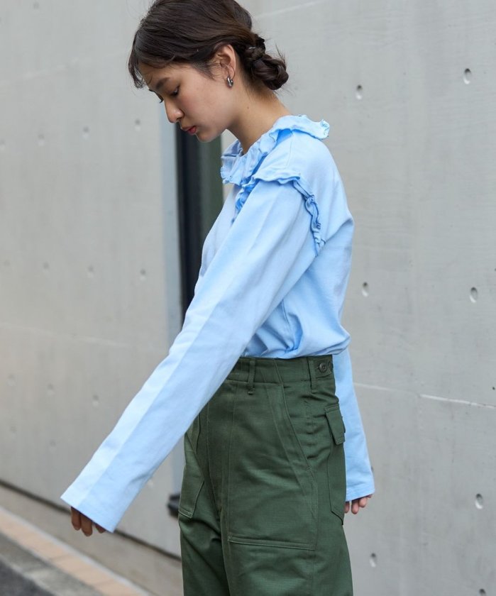 荷葉邊上衣非常適合搭配長褲和工裝褲。