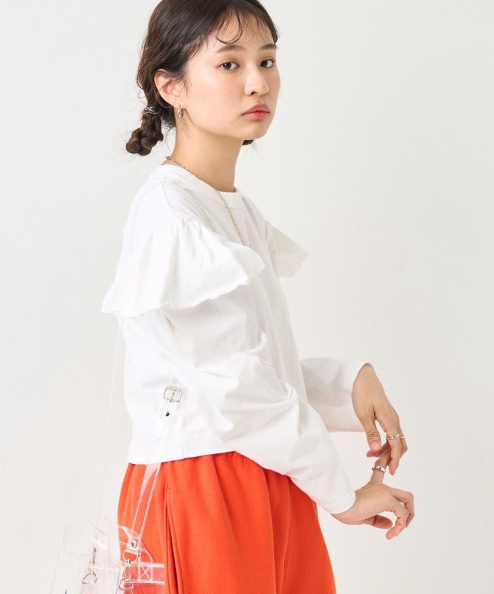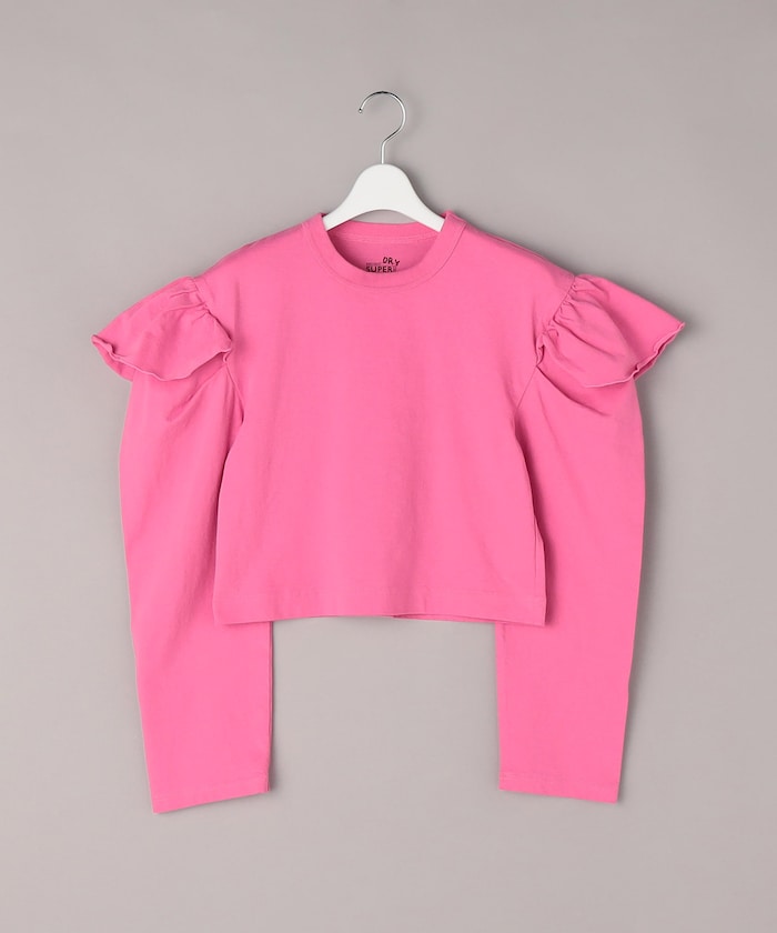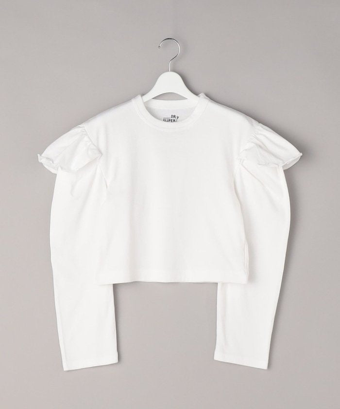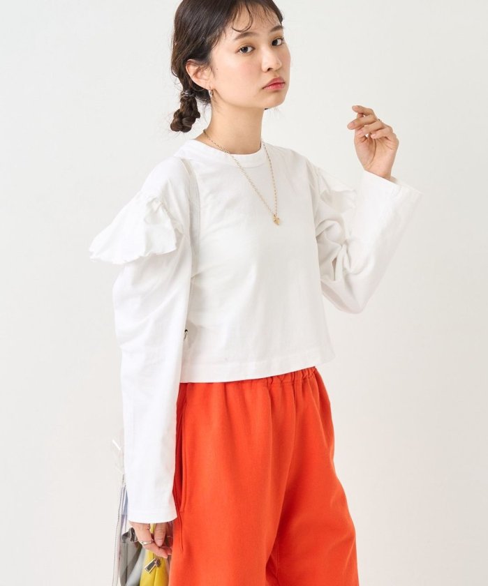 束腰上衣,肩部有荷葉邊,袖子厚而鬆垮。
