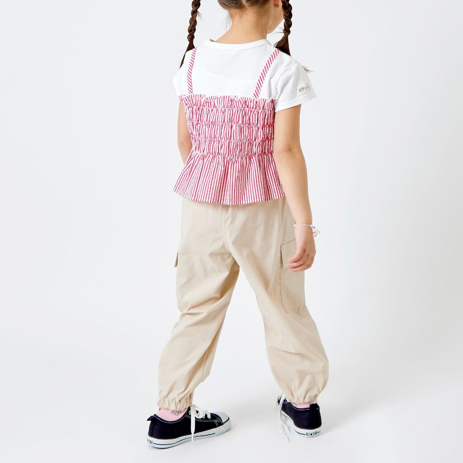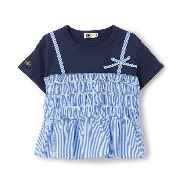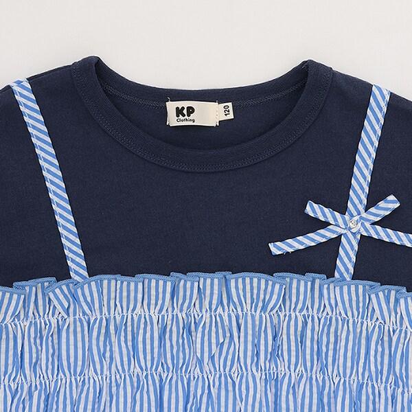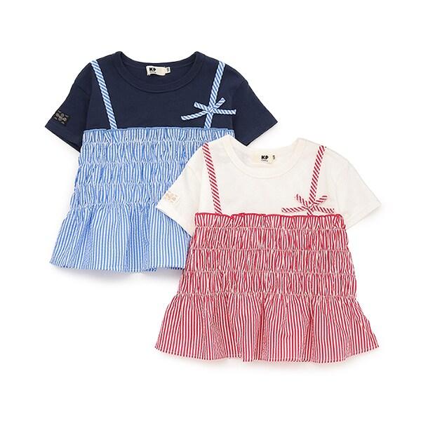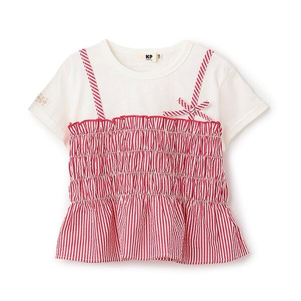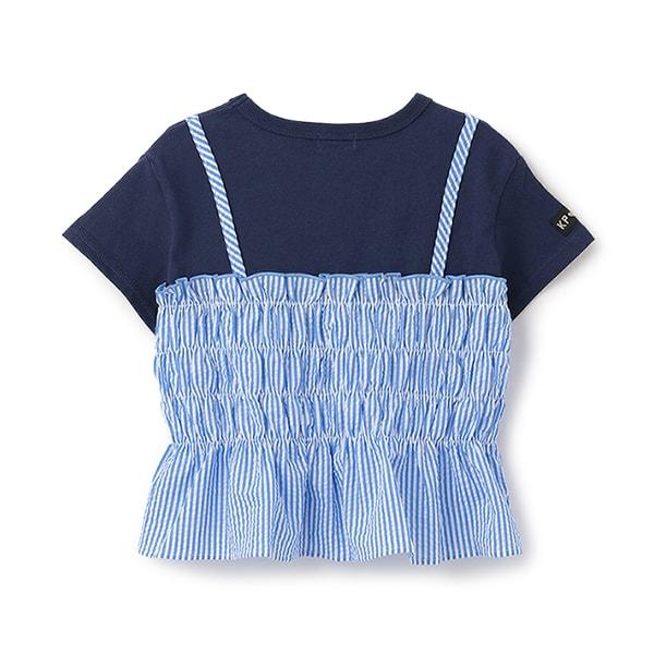 足球條紋吊帶拼接T恤