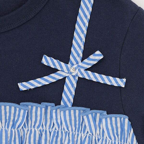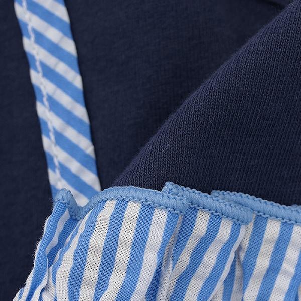 半身裙部分由足球條紋面料製成,手感輕盈光滑。