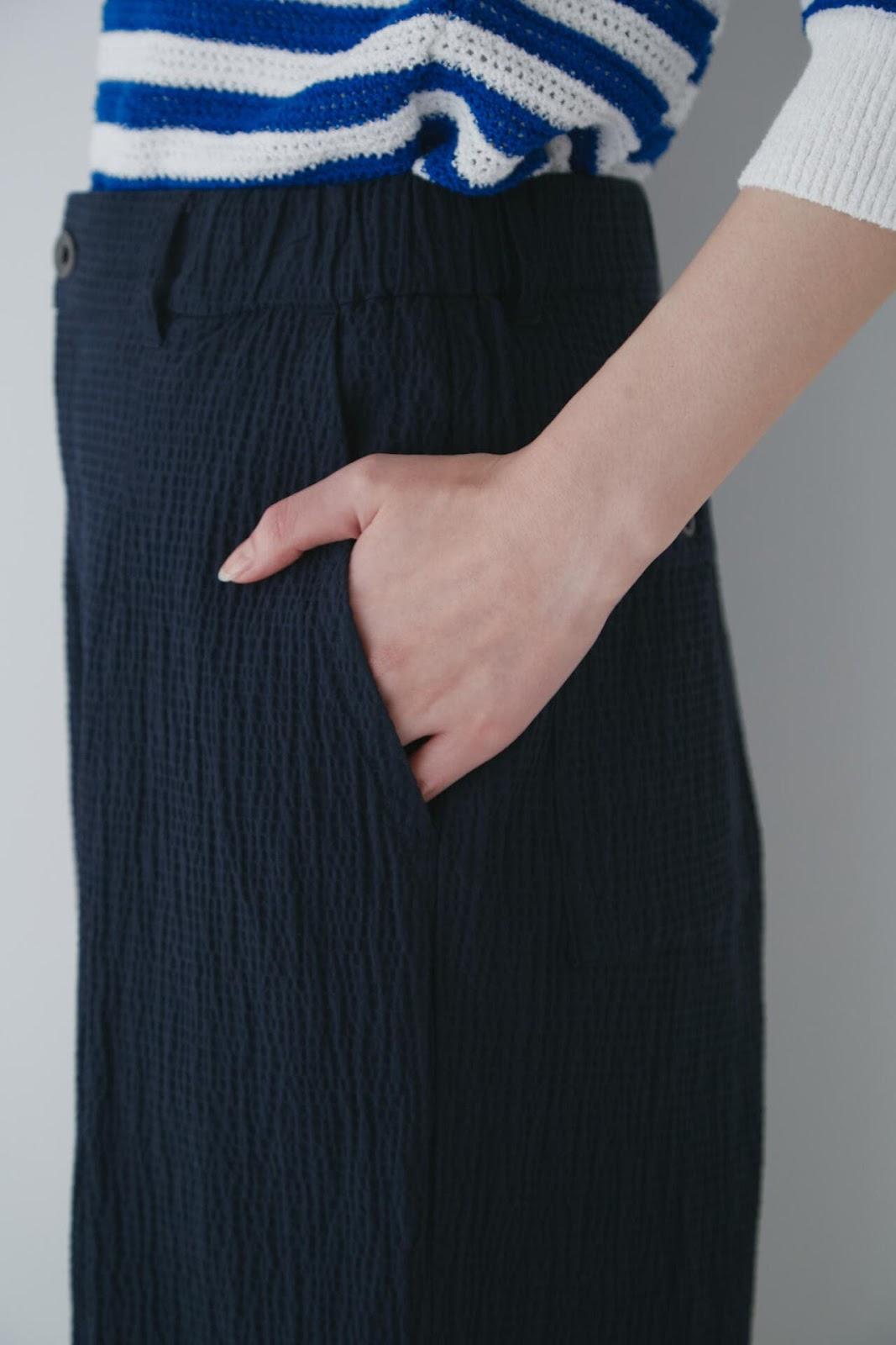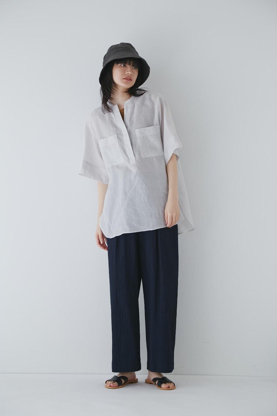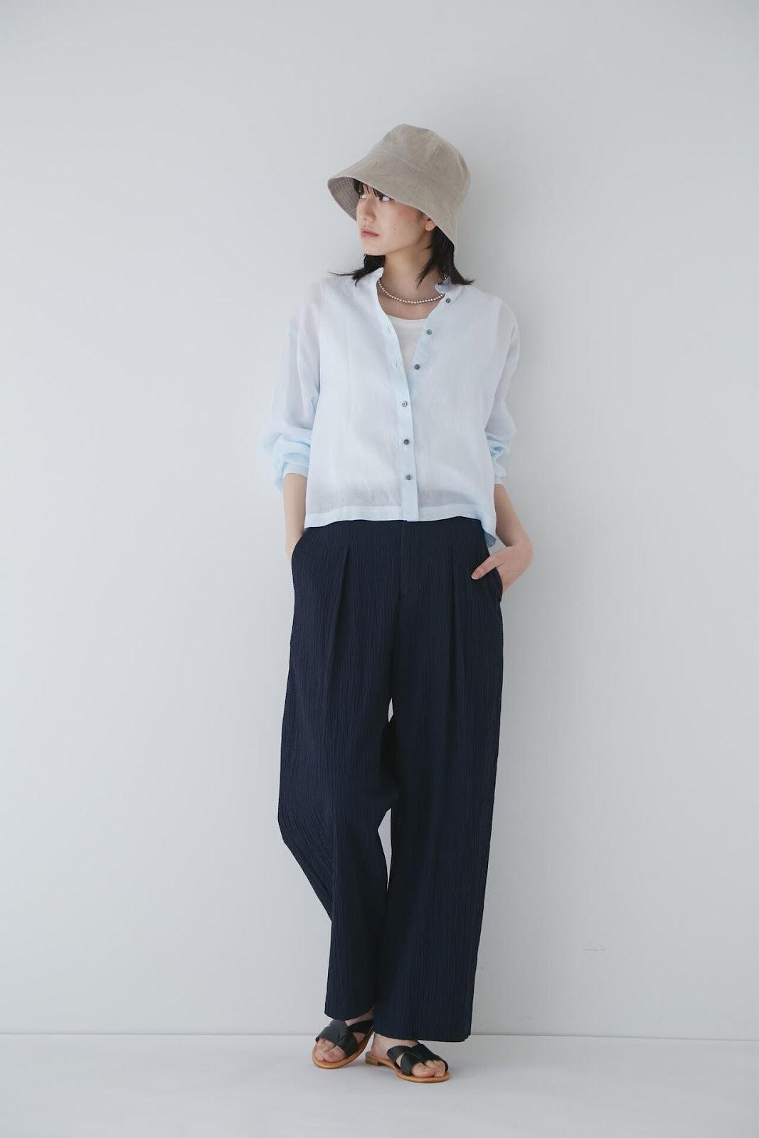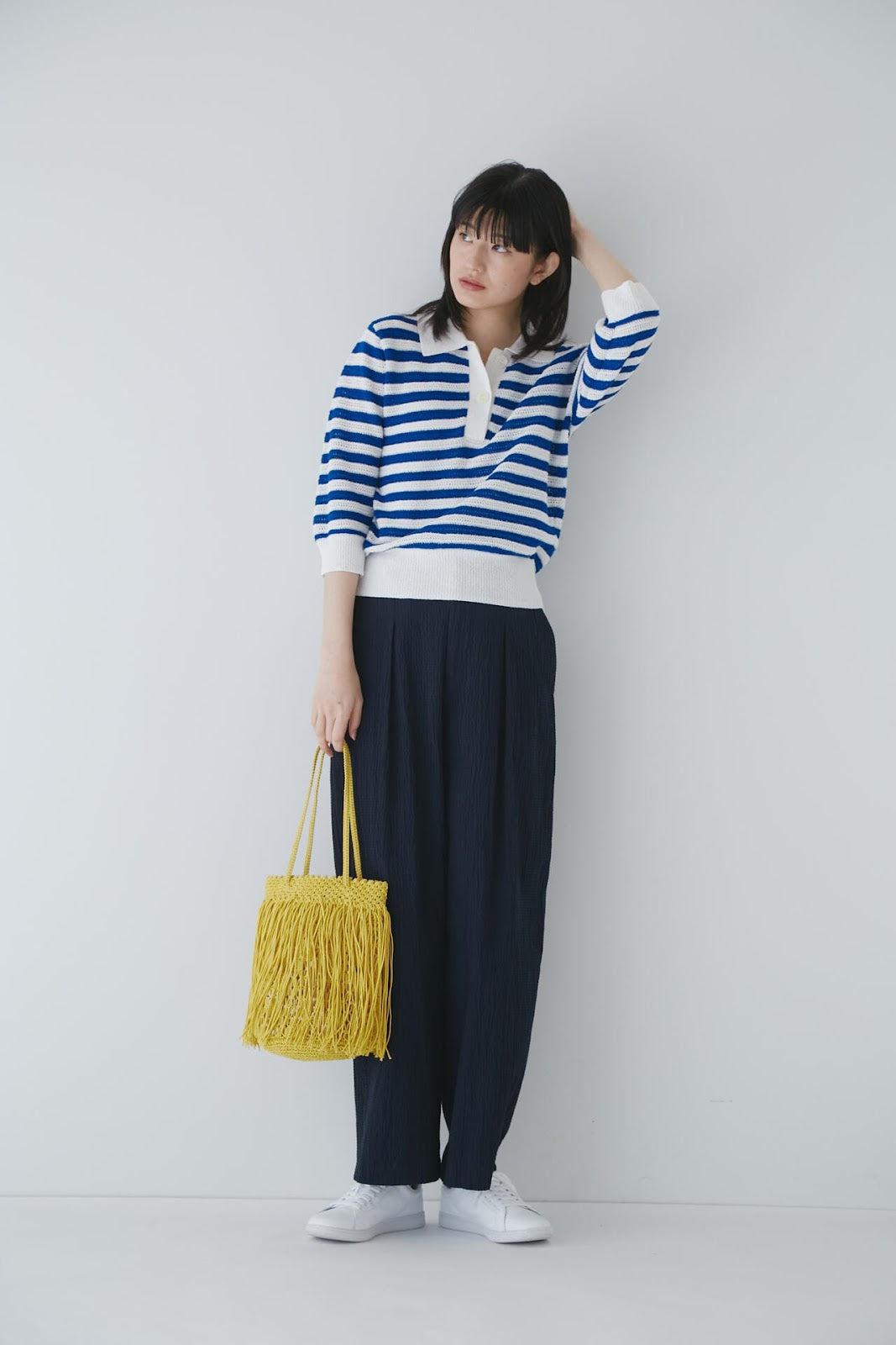 輕鬆長褲,輕質面料,打造輕鬆夏日造型 [設計特色] 這款輕鬆長褲的腰部有鬆緊帶,還可以用腰帶的內置繫帶收緊腰部。寬鬆的錐形剪裁是夏日休閒的理想之選。採用波紋面料製成,給人涼爽的感覺,穿著舒適。波紋是一種將面料局部強力收縮,形成凹凸紋理的面料。推薦搭配:與同款上衣搭配,營造輕鬆愜意的感覺。搭配簡潔的上衣,會給人一種時尚的感覺,是日常穿著的👍選擇。
