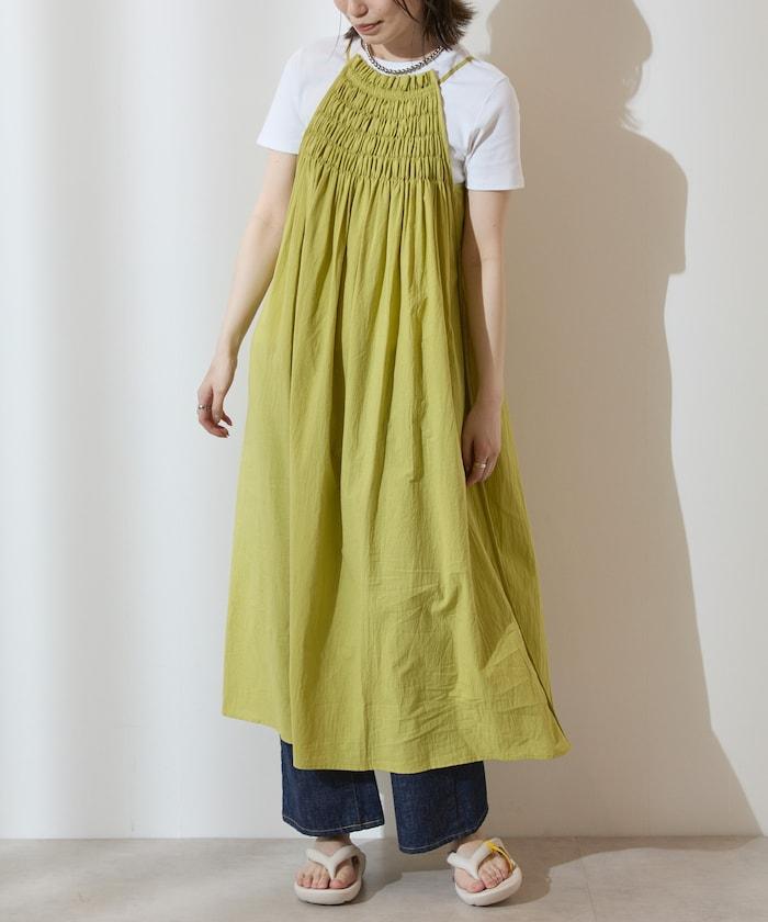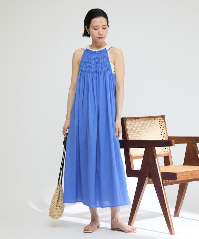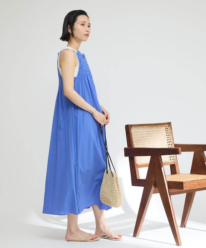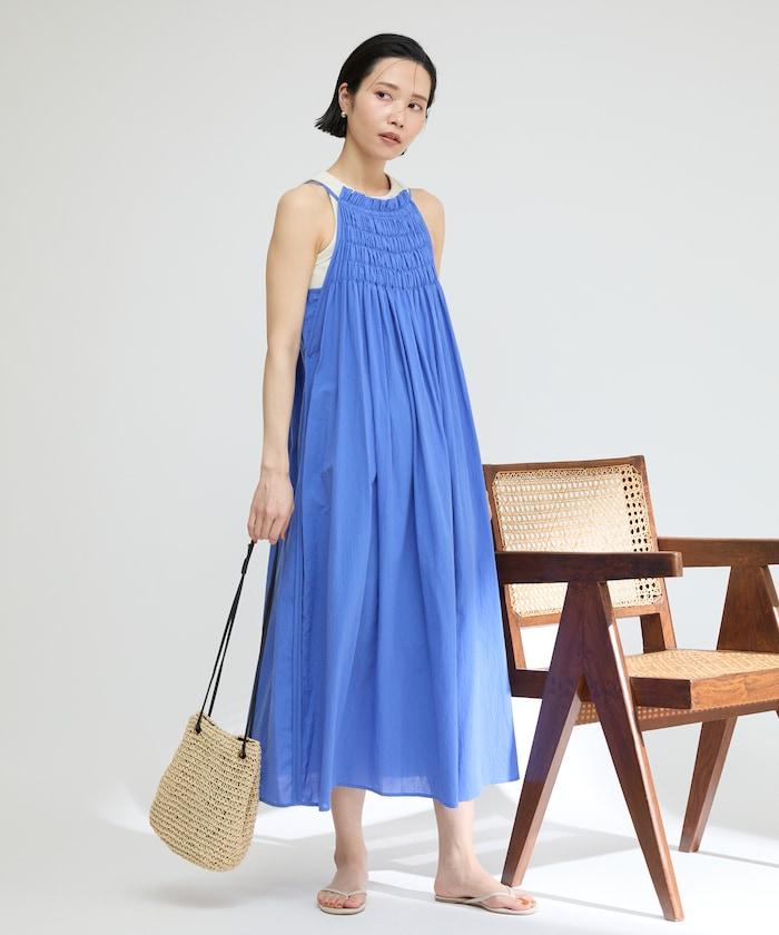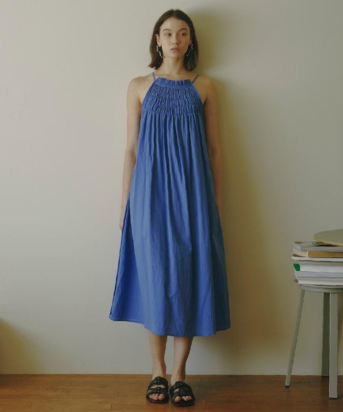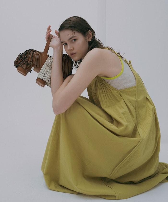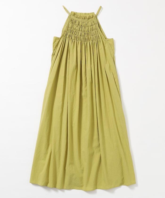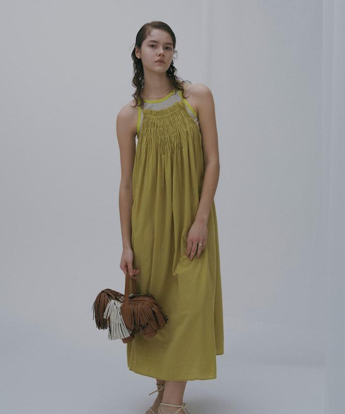 這款連衣裙由輕薄的棉質薄紗製成,胸前的流水線褶皺設計讓人眼前一亮。