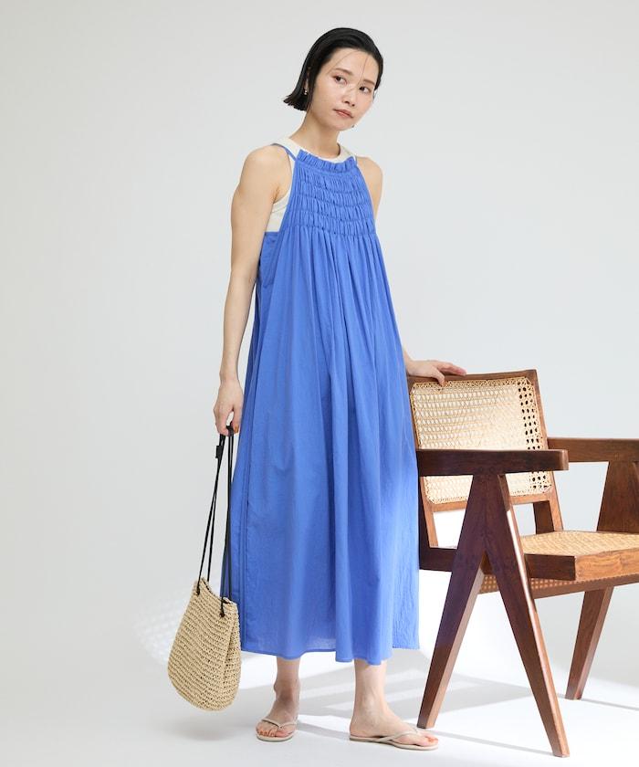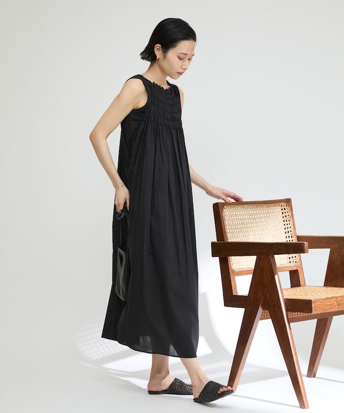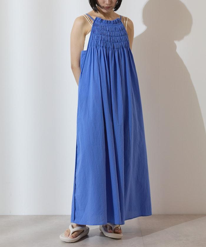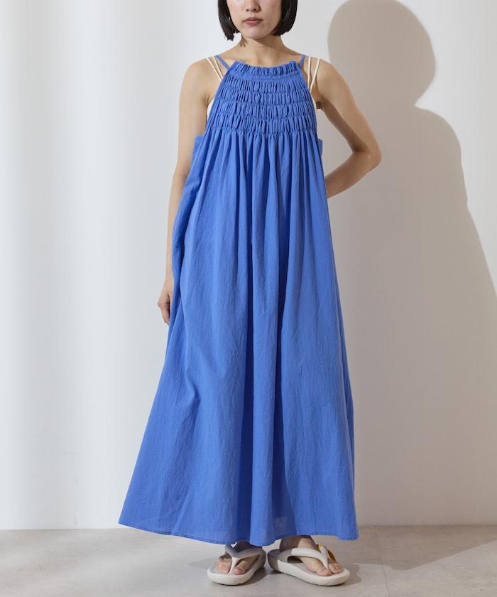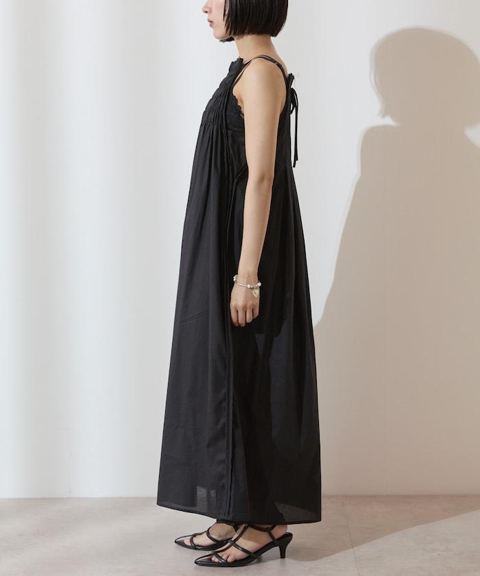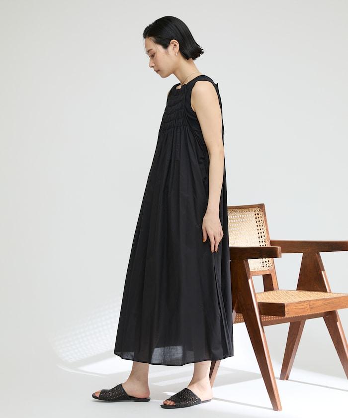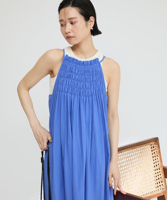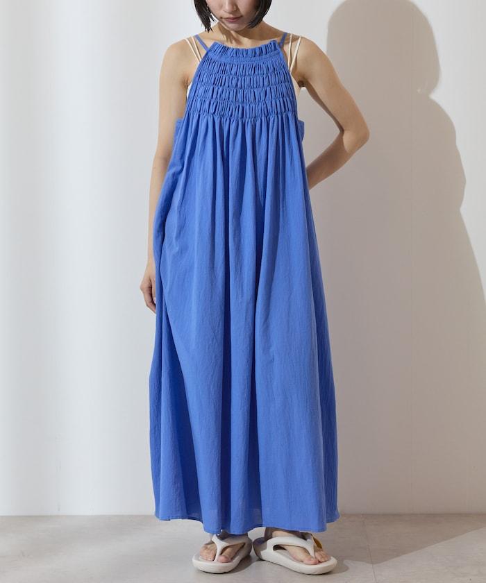 這款連衣裙由輕薄的棉質薄紗製成,胸前的流水線褶皺設計讓人眼前一亮。