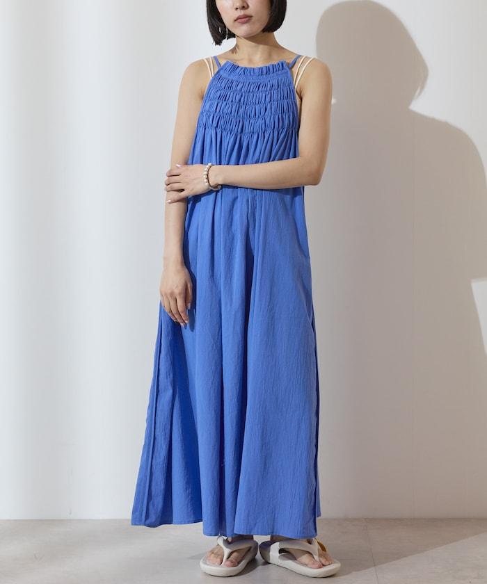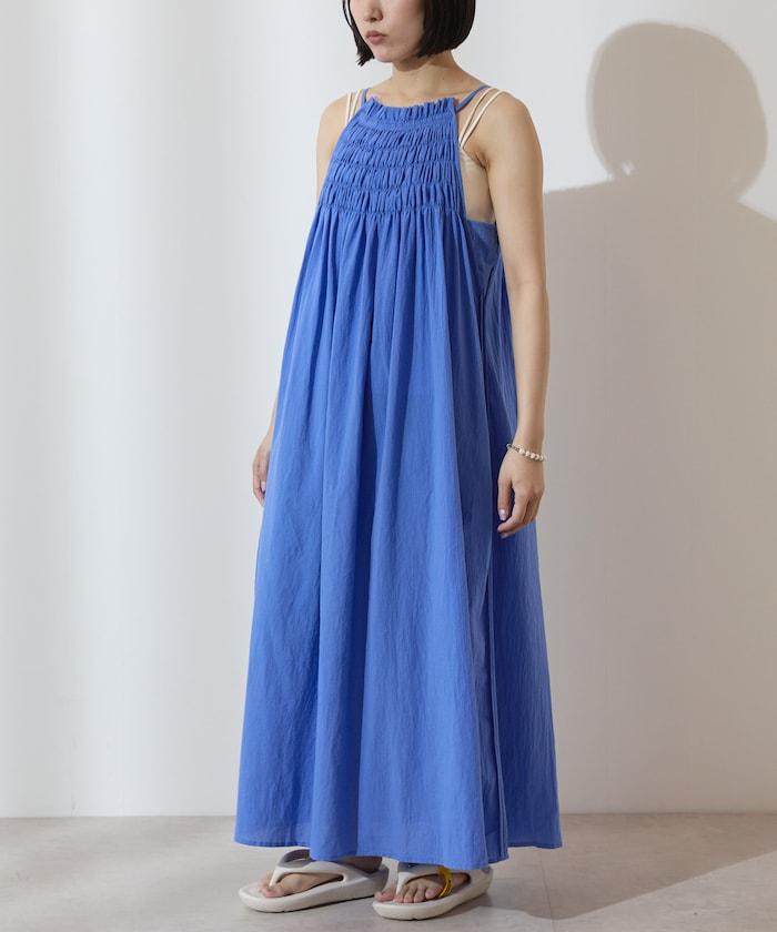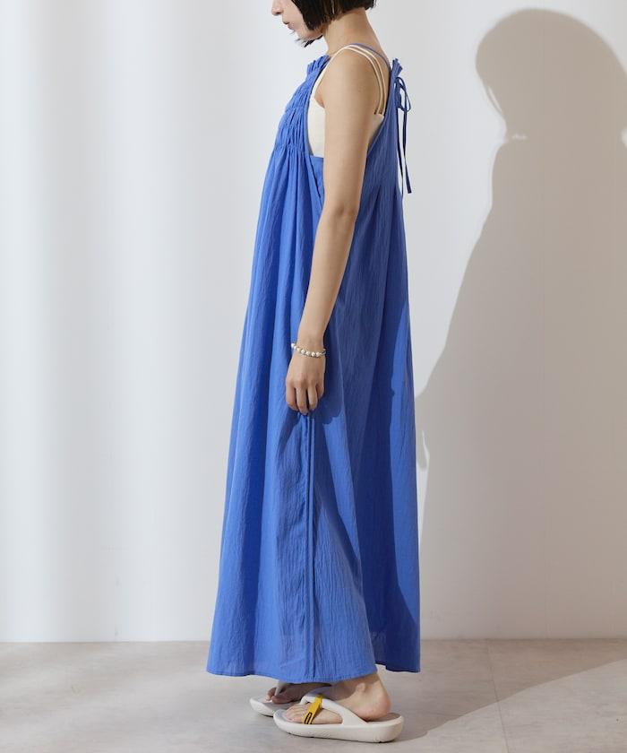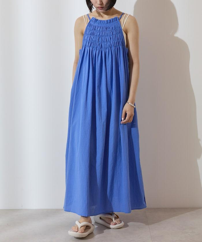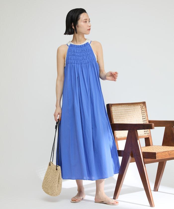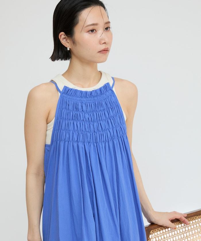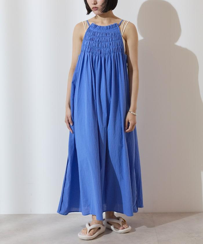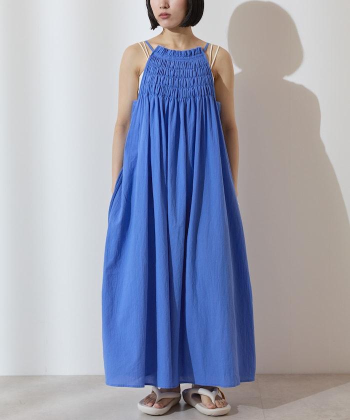 這款連衣裙由輕薄的棉質薄紗製成,胸前的流水線褶皺設計讓人眼前一亮。