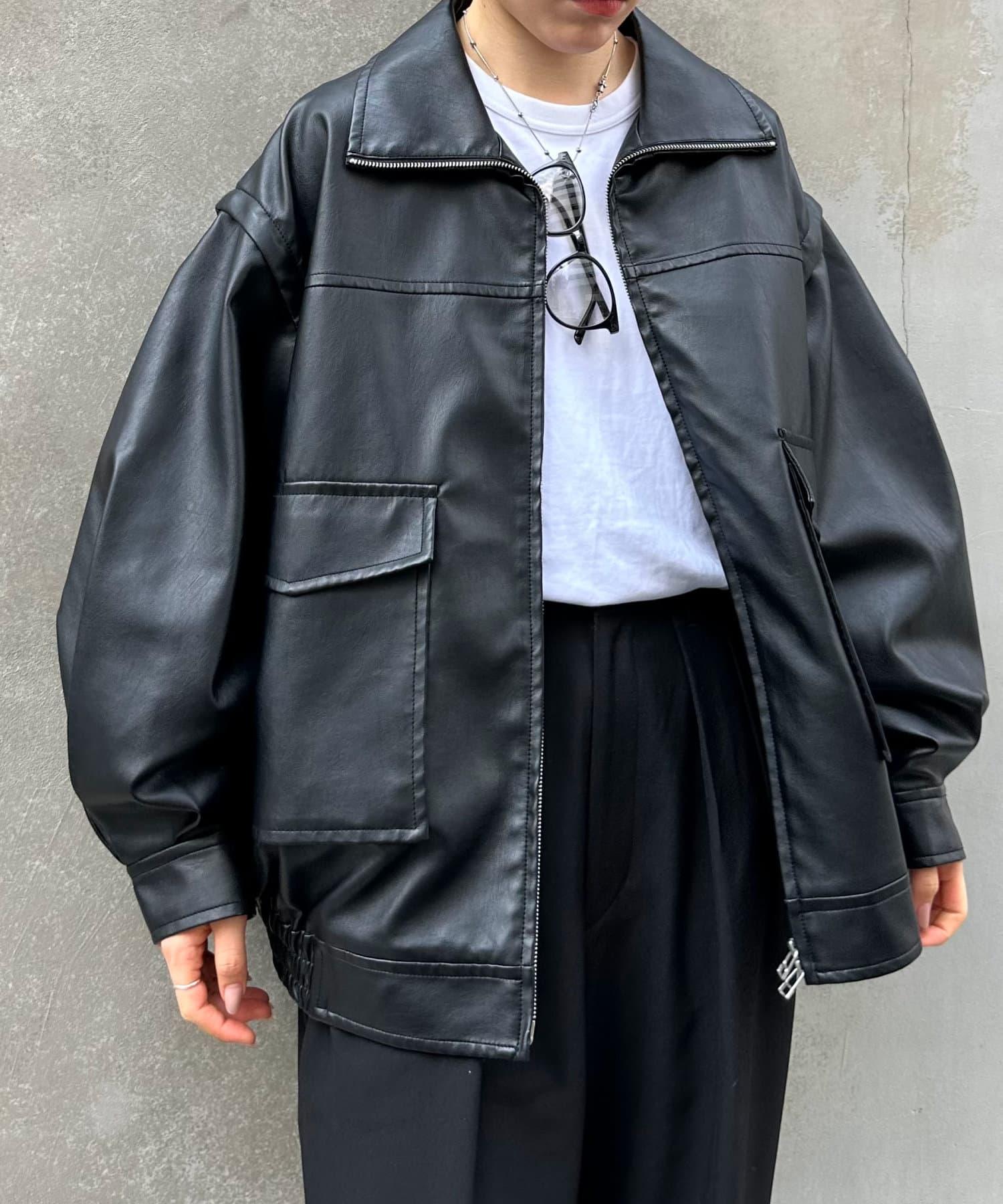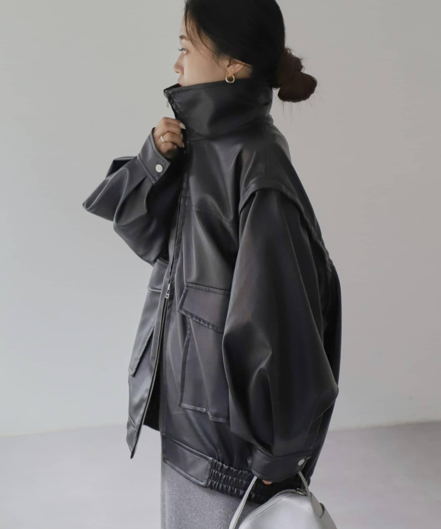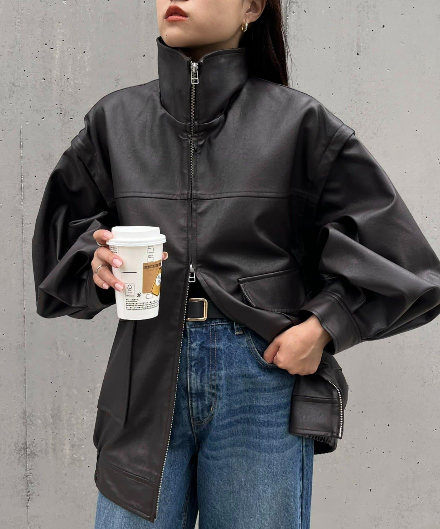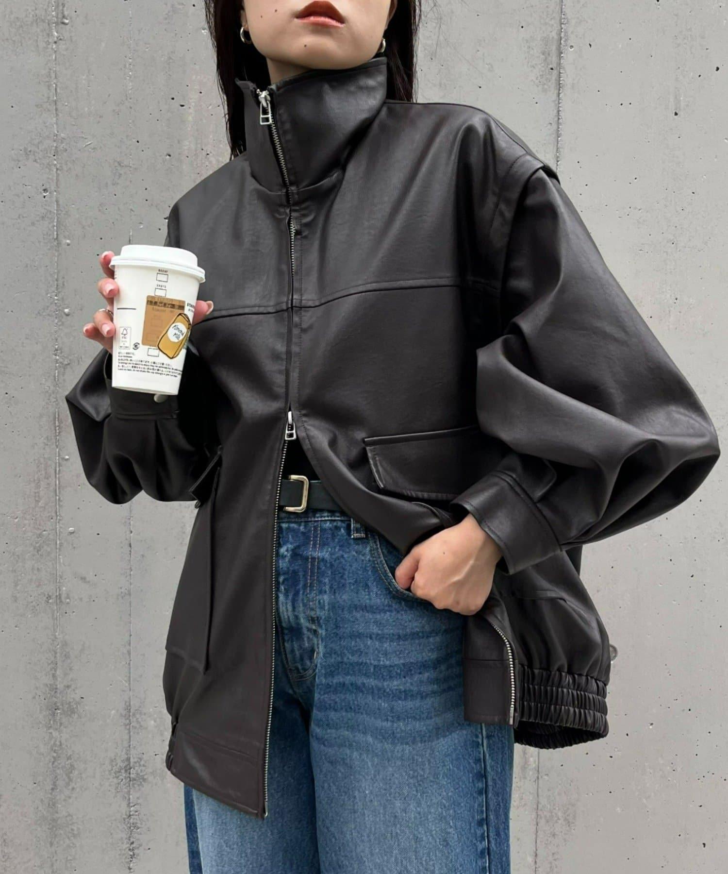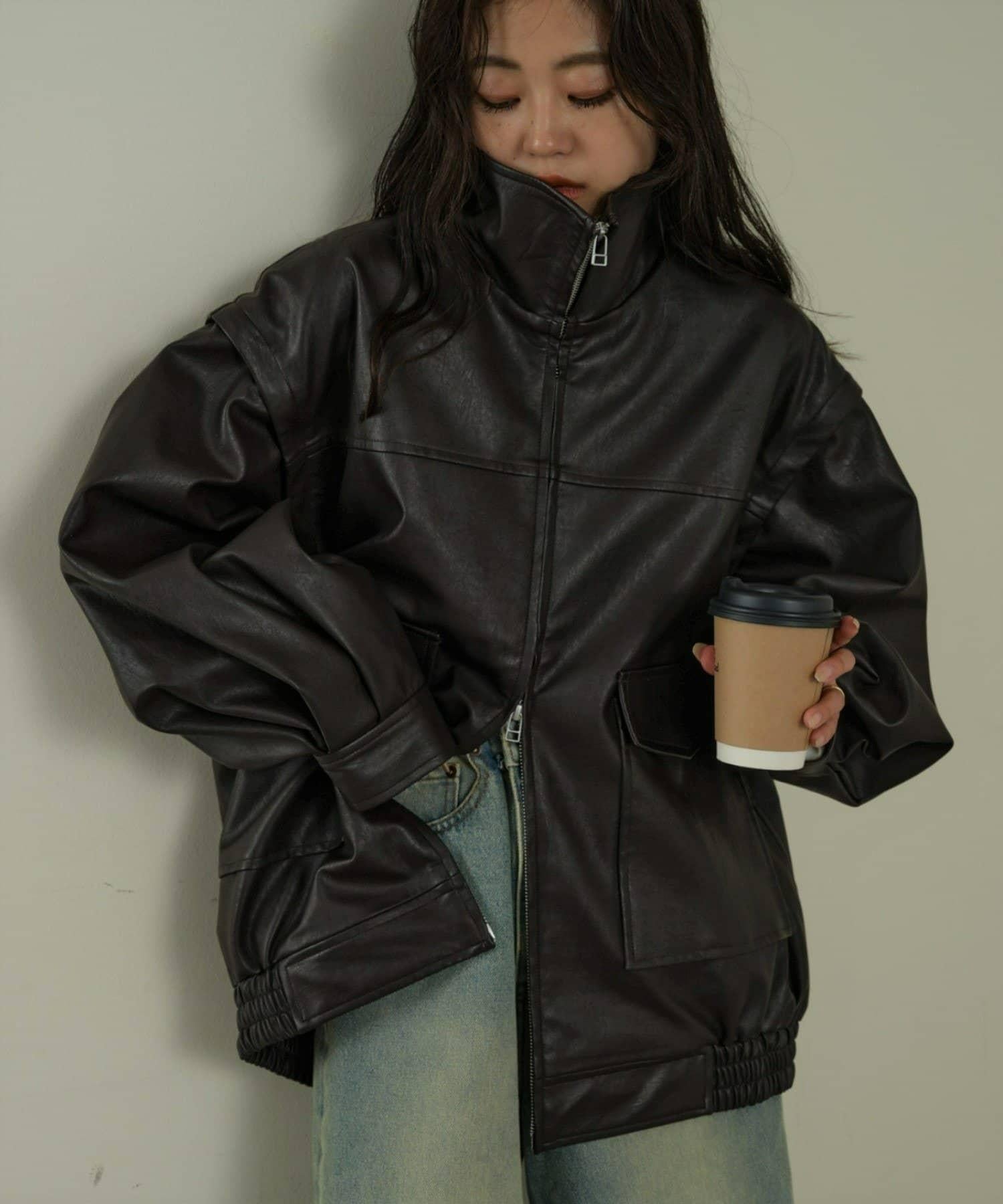 【身高別/詳細視頻有】【男女通用】仿皮2WAY立領夾克