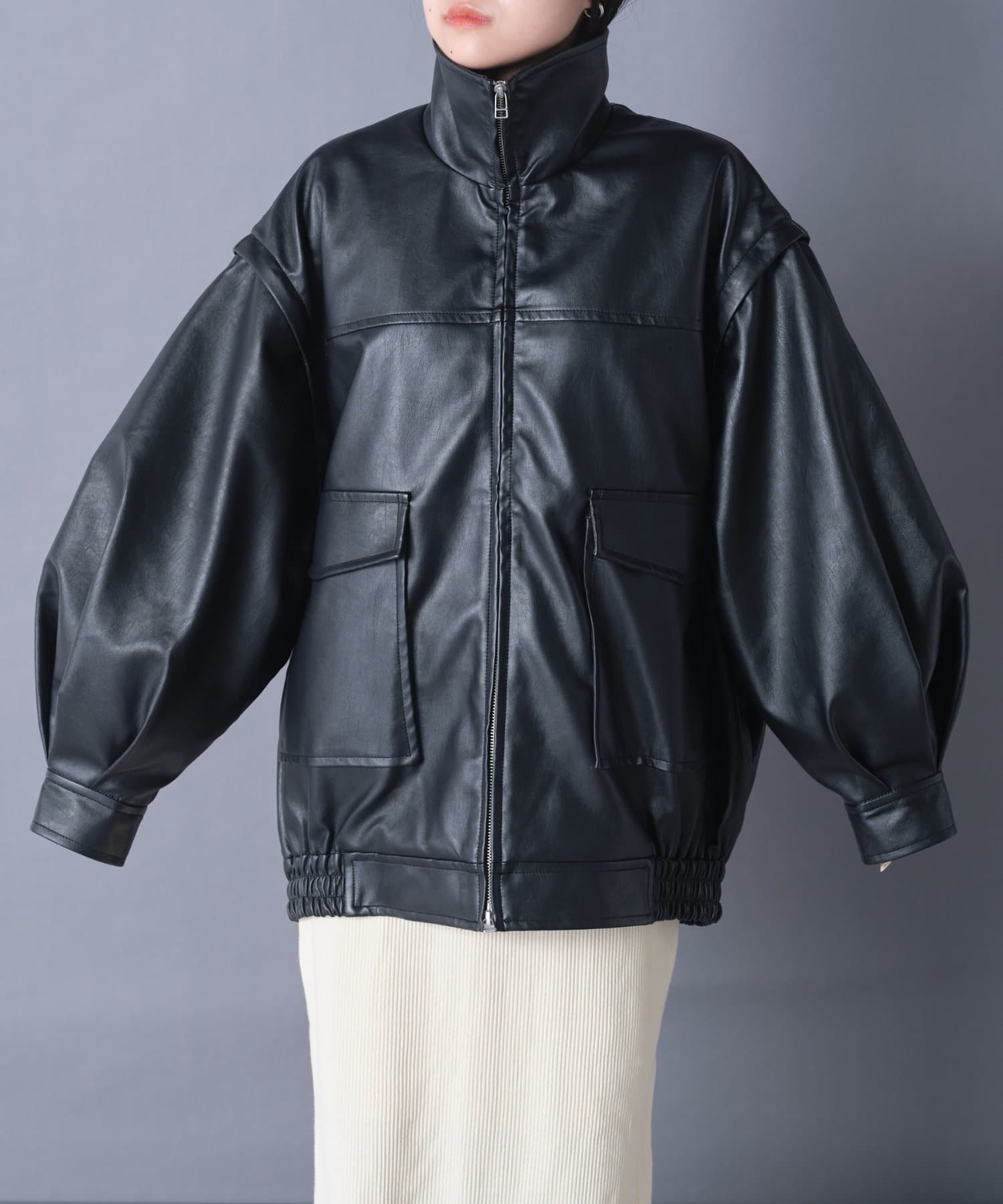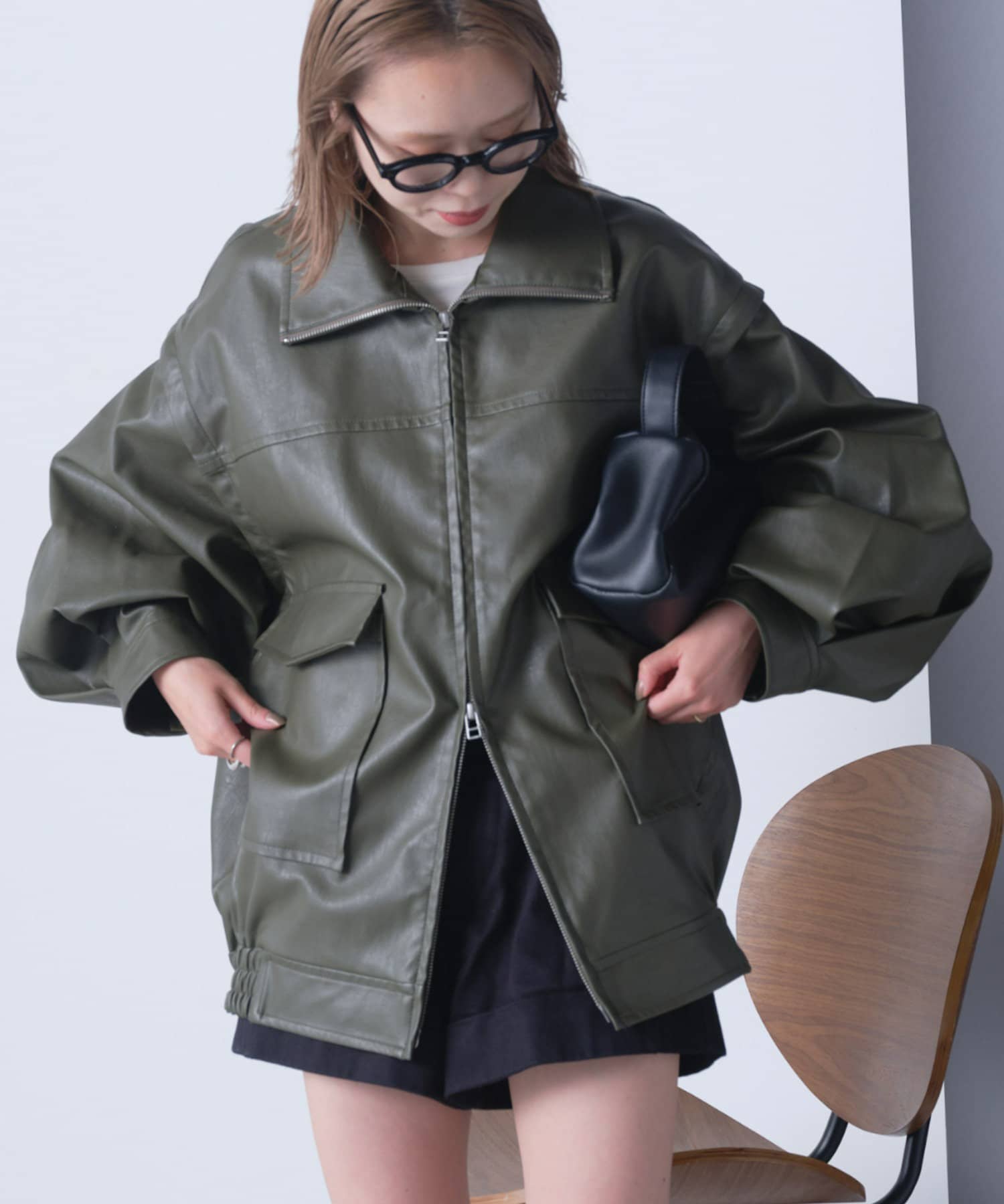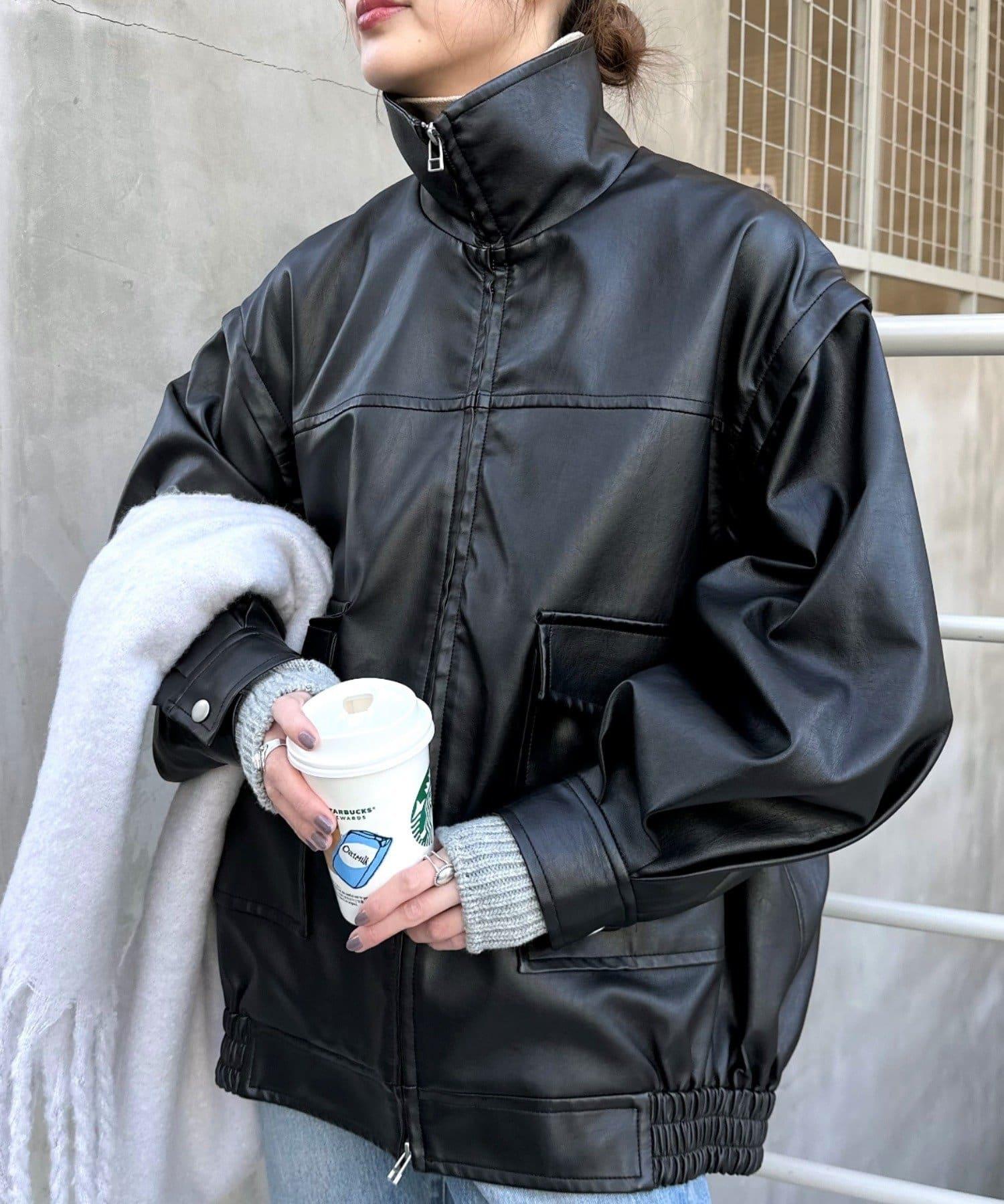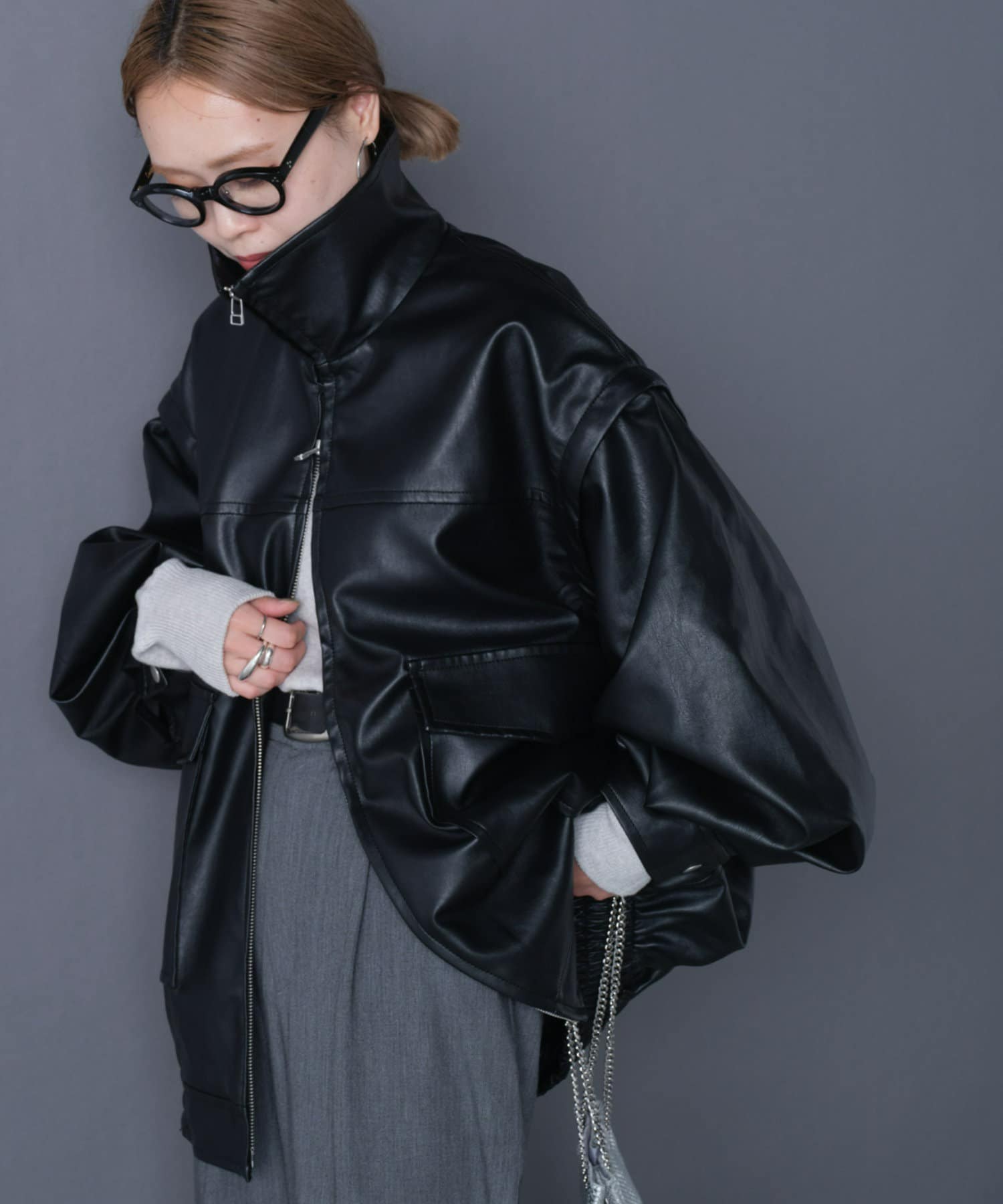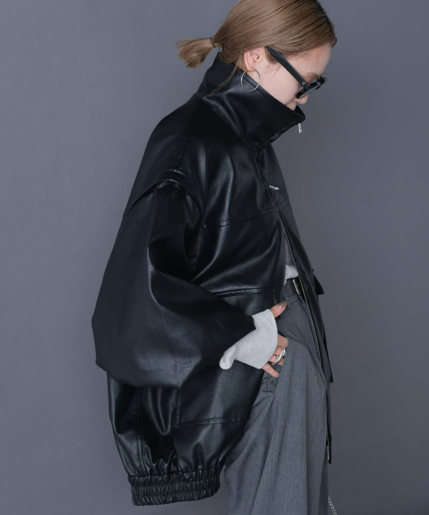【身高別/詳細視頻有】【男女通用】仿皮2WAY立領夾克