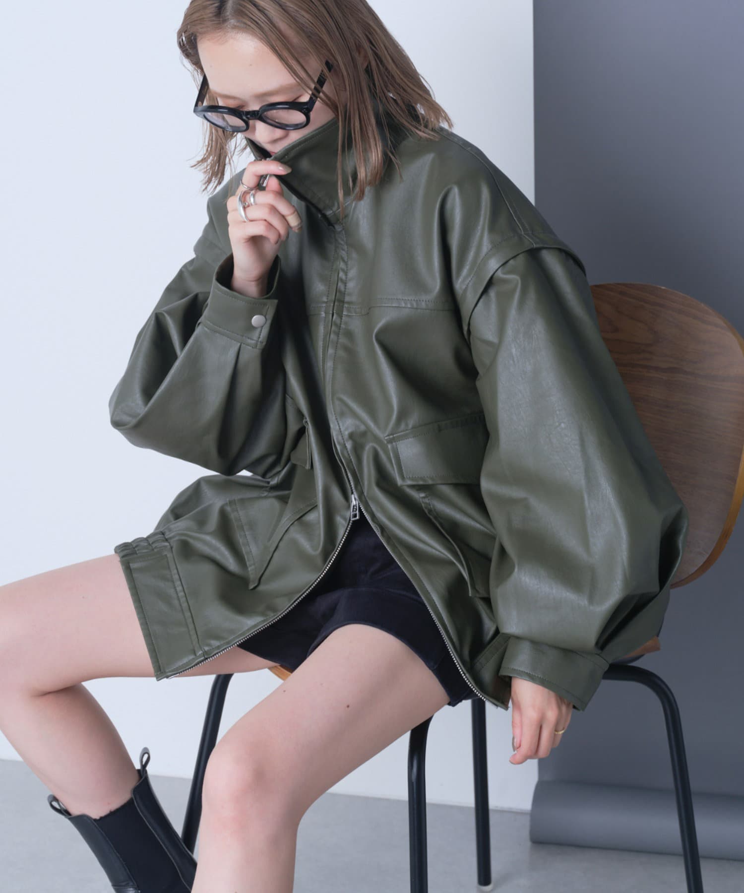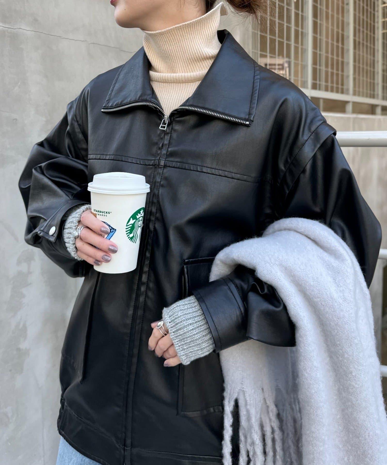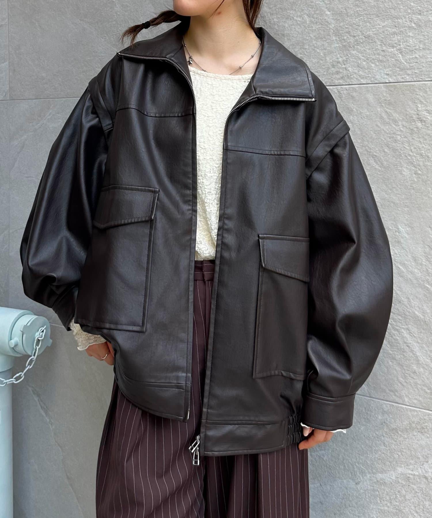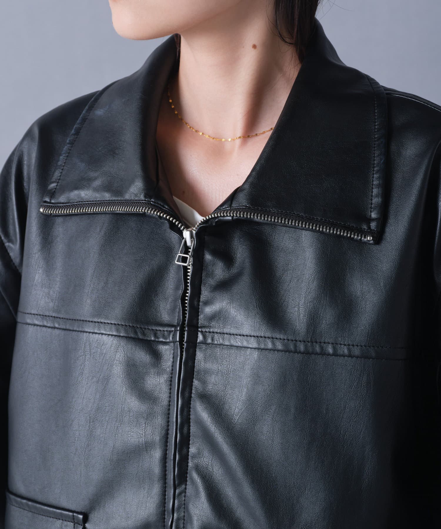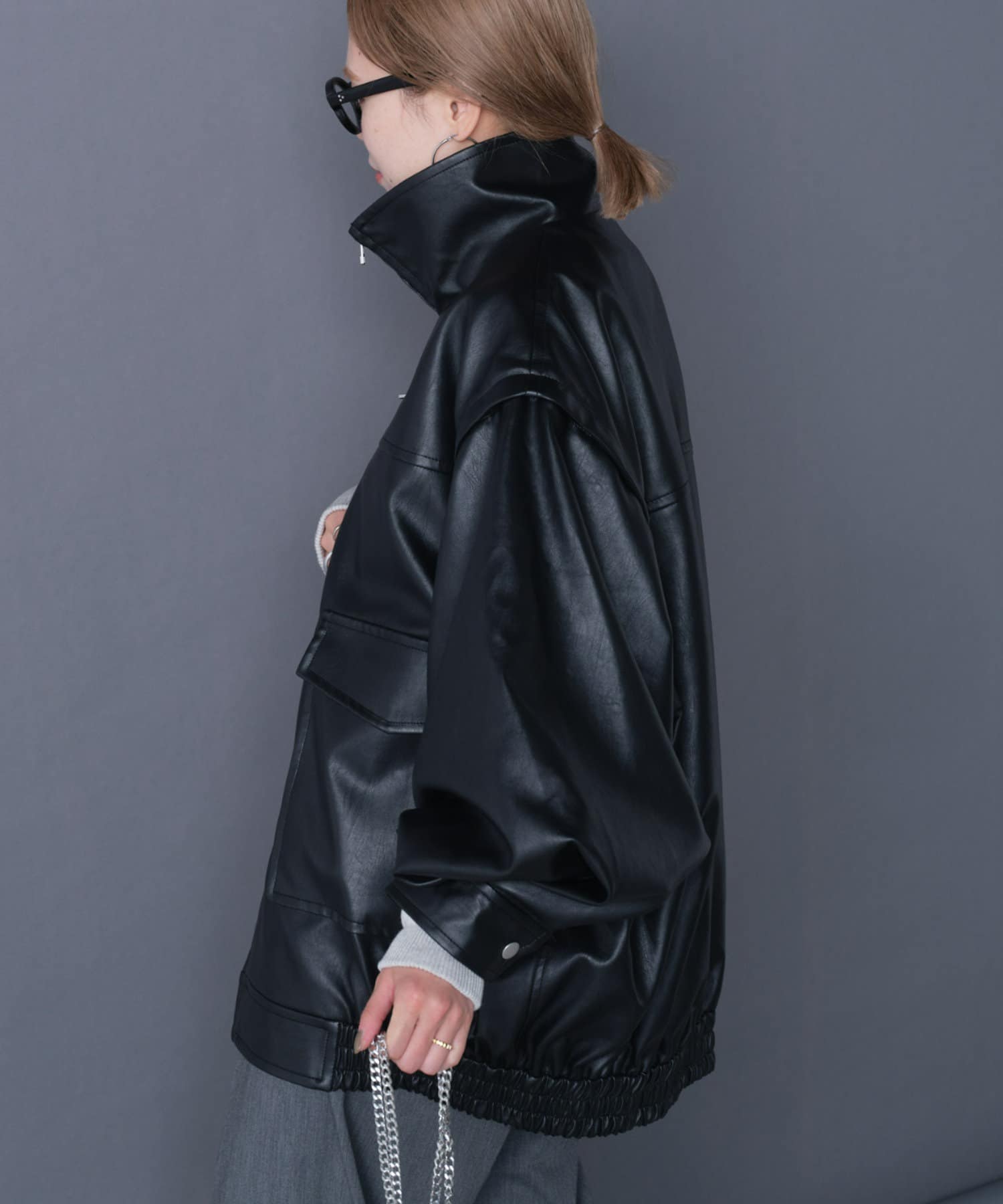 【身高別/詳細視頻有】【男女通用】仿皮2WAY立領夾克