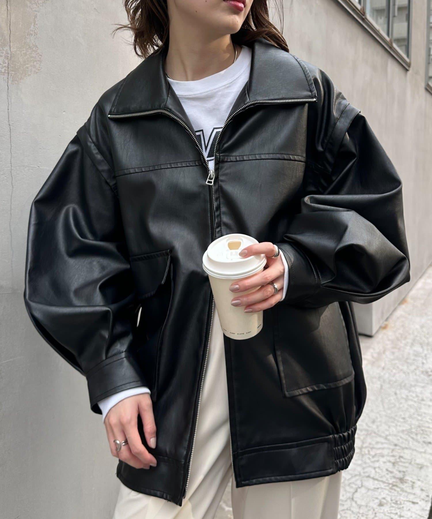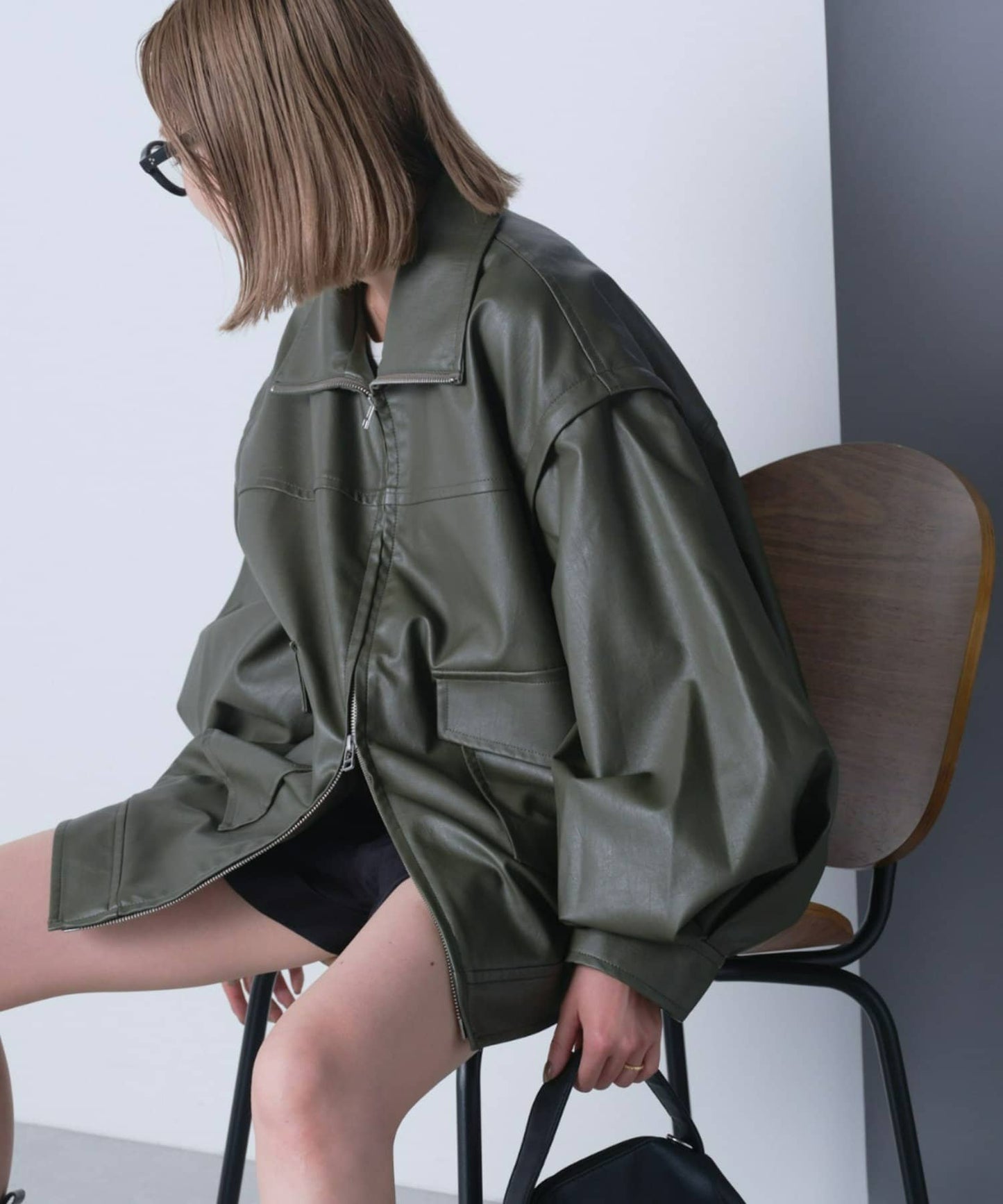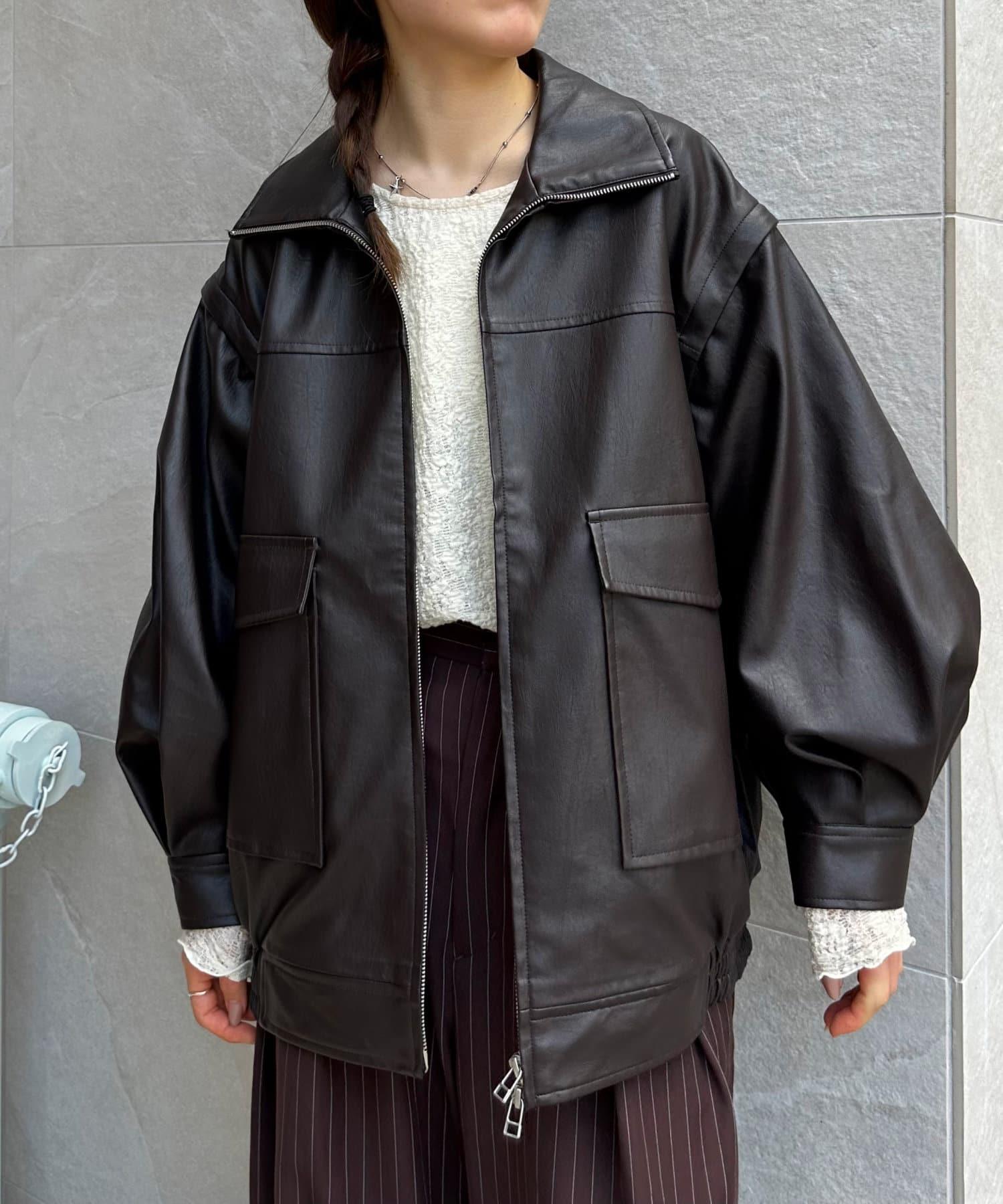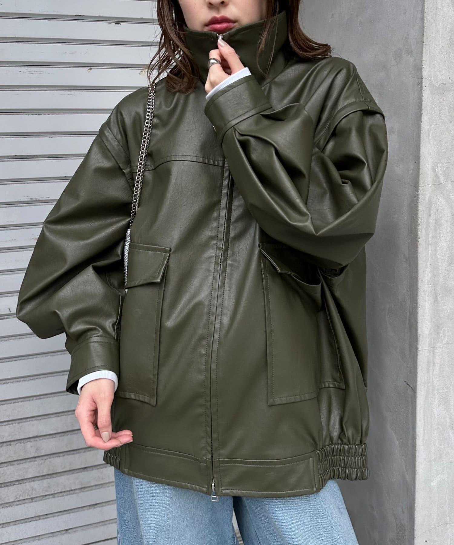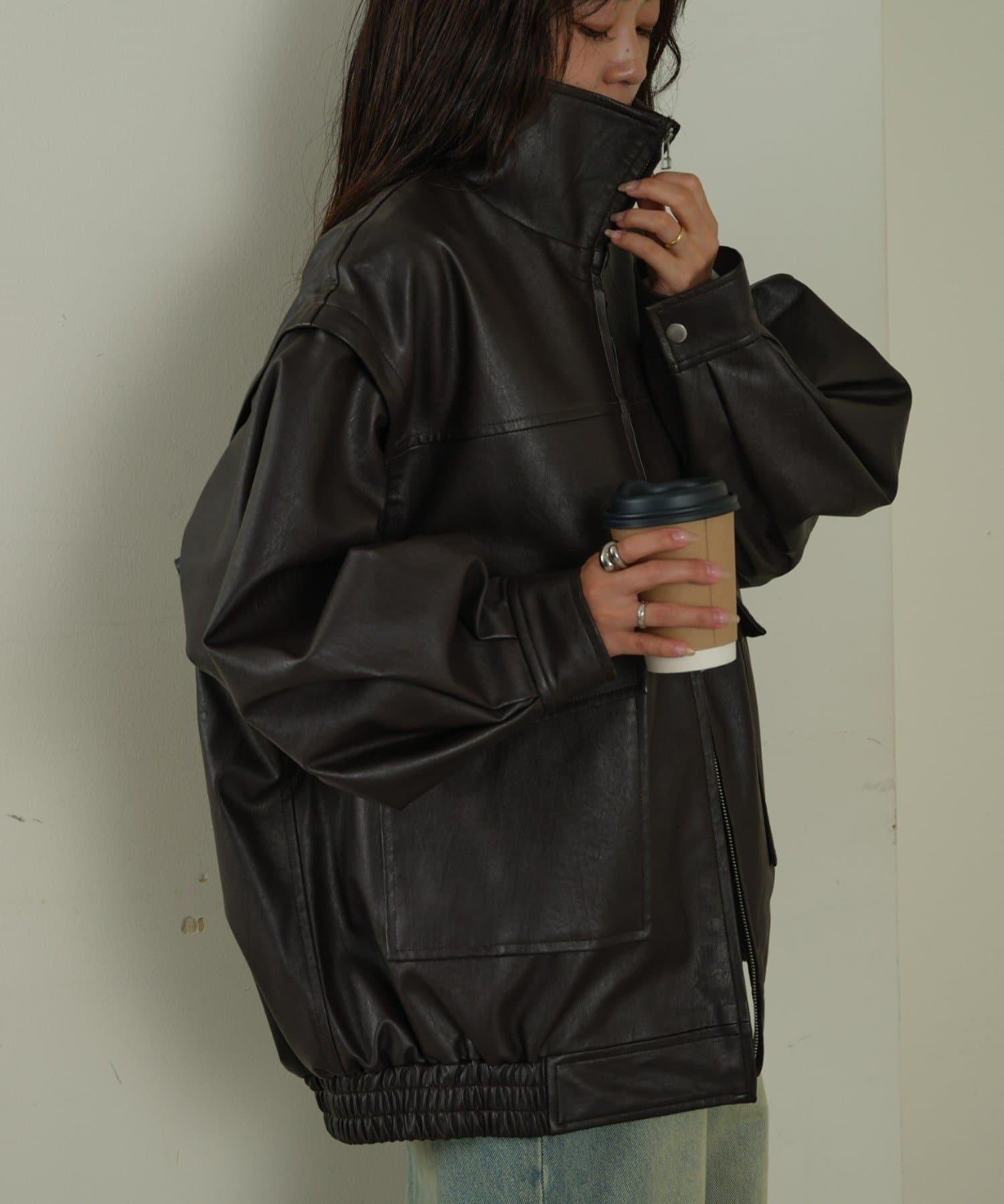 【身高別/詳細視頻有】【男女通用】仿皮2WAY立領夾克