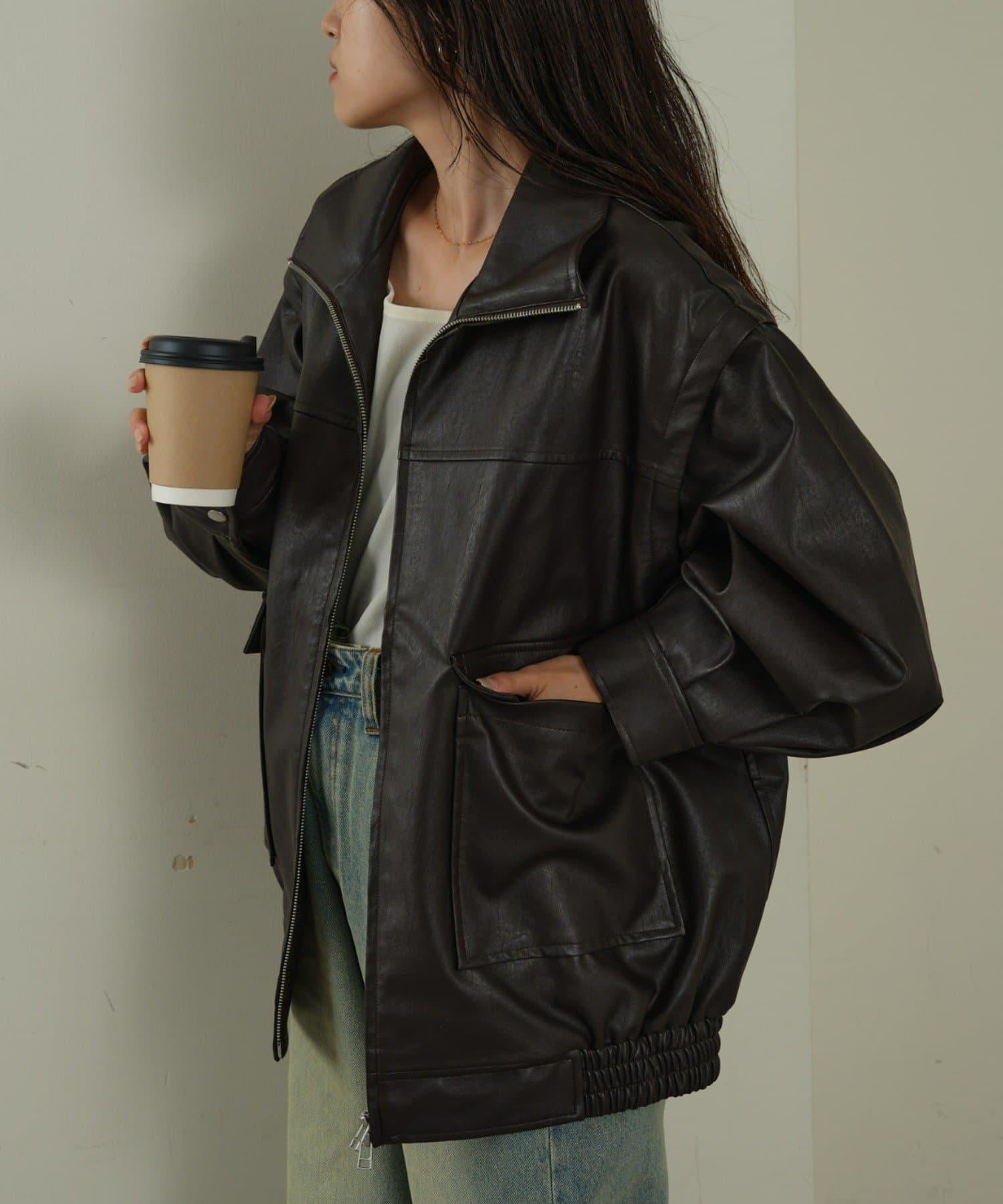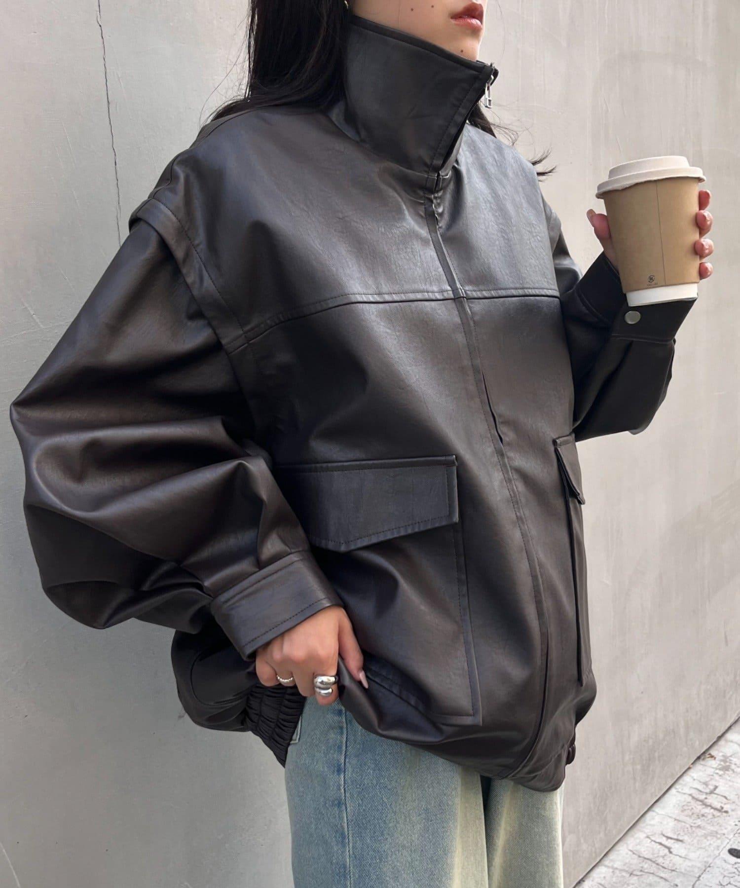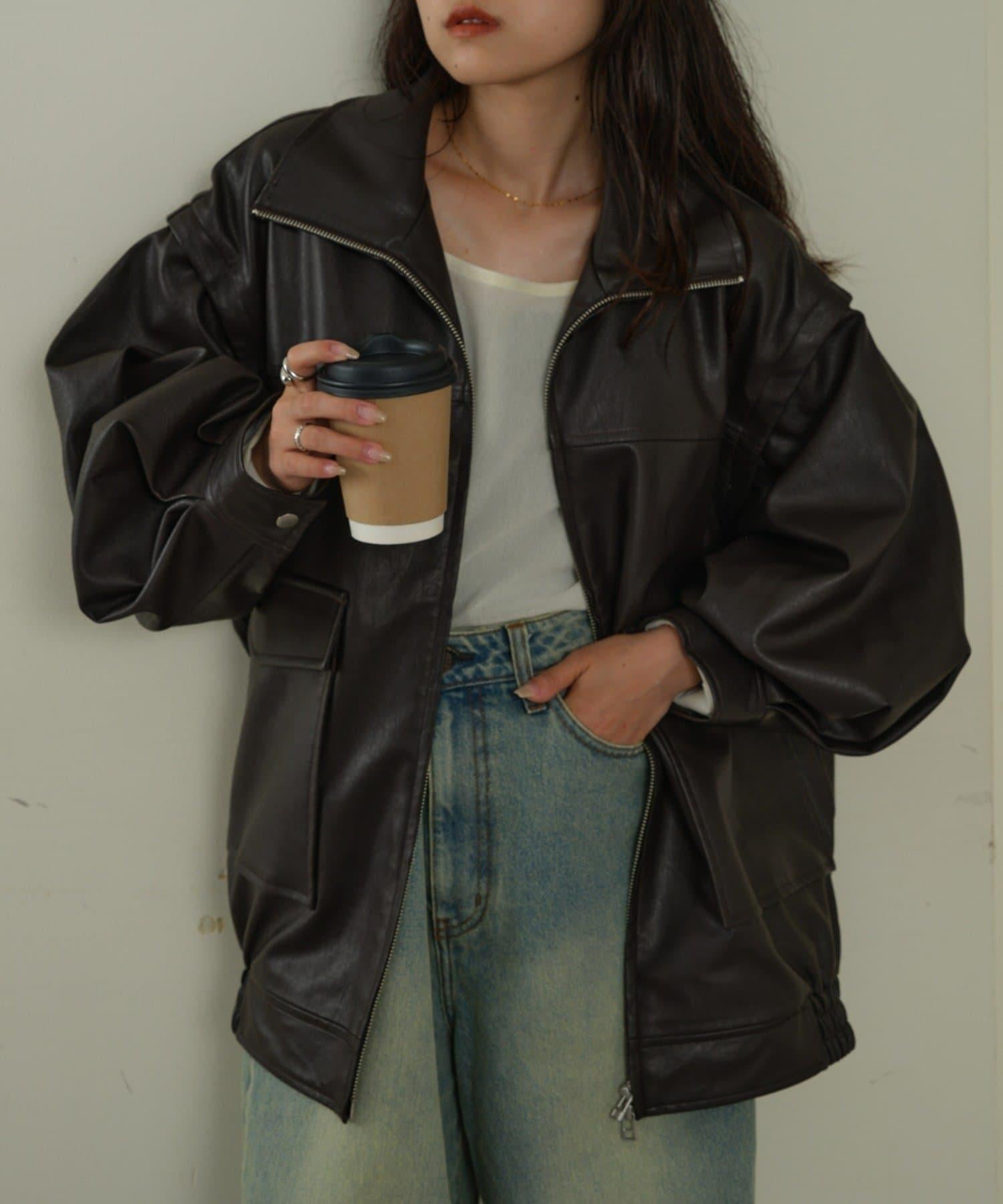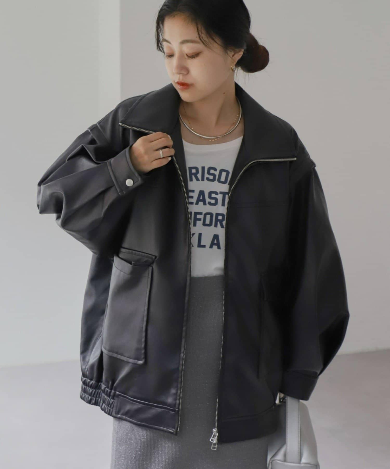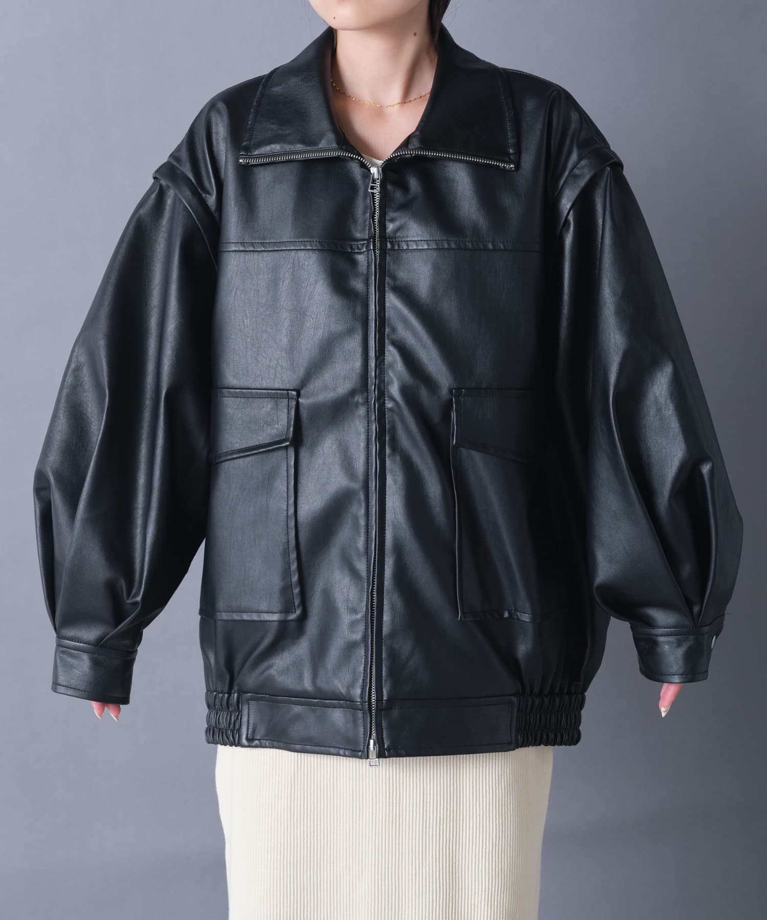 【身高別/詳細視頻有】【男女通用】仿皮2WAY立領夾克