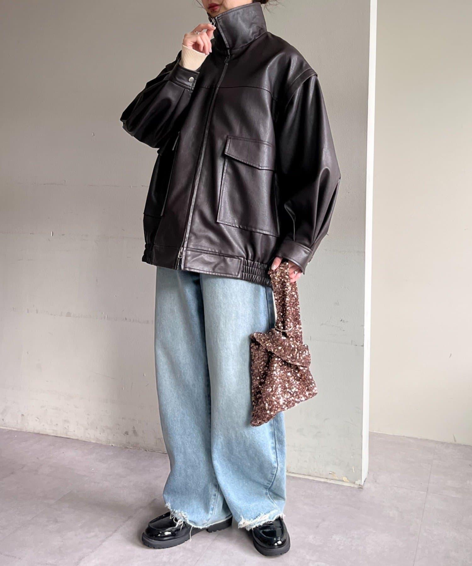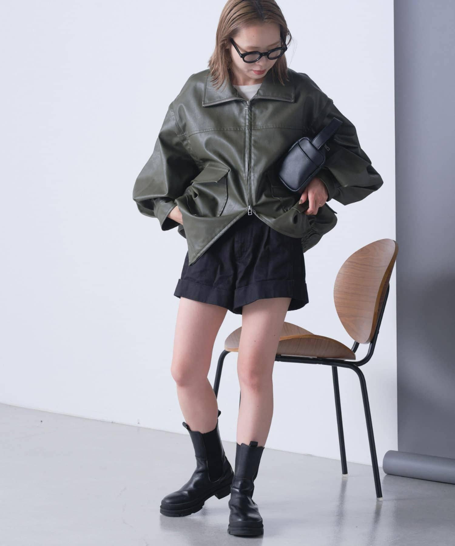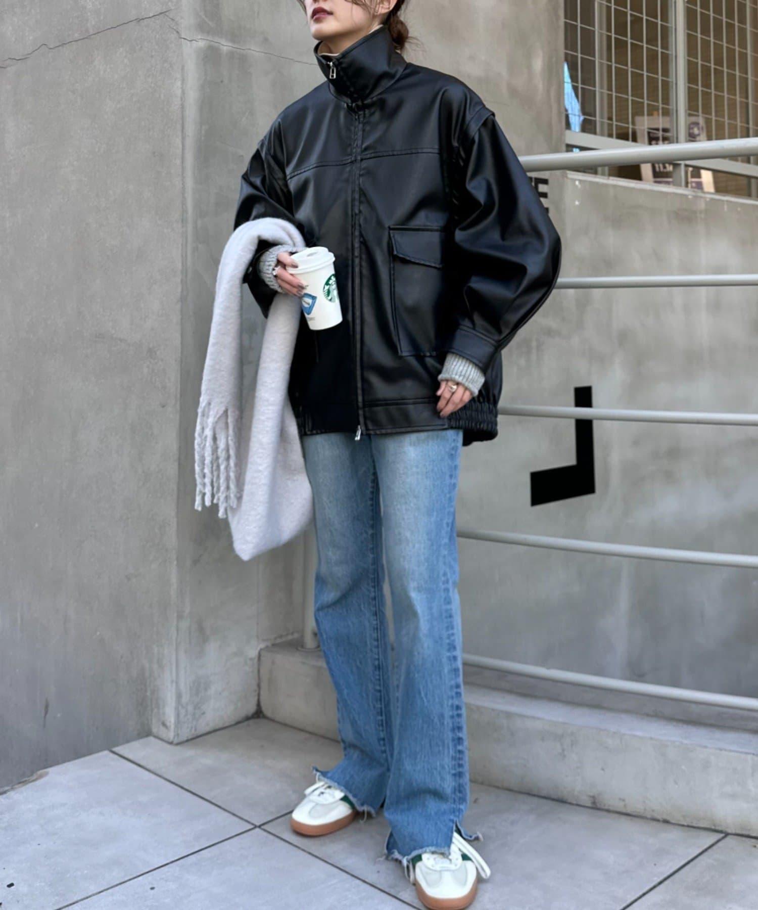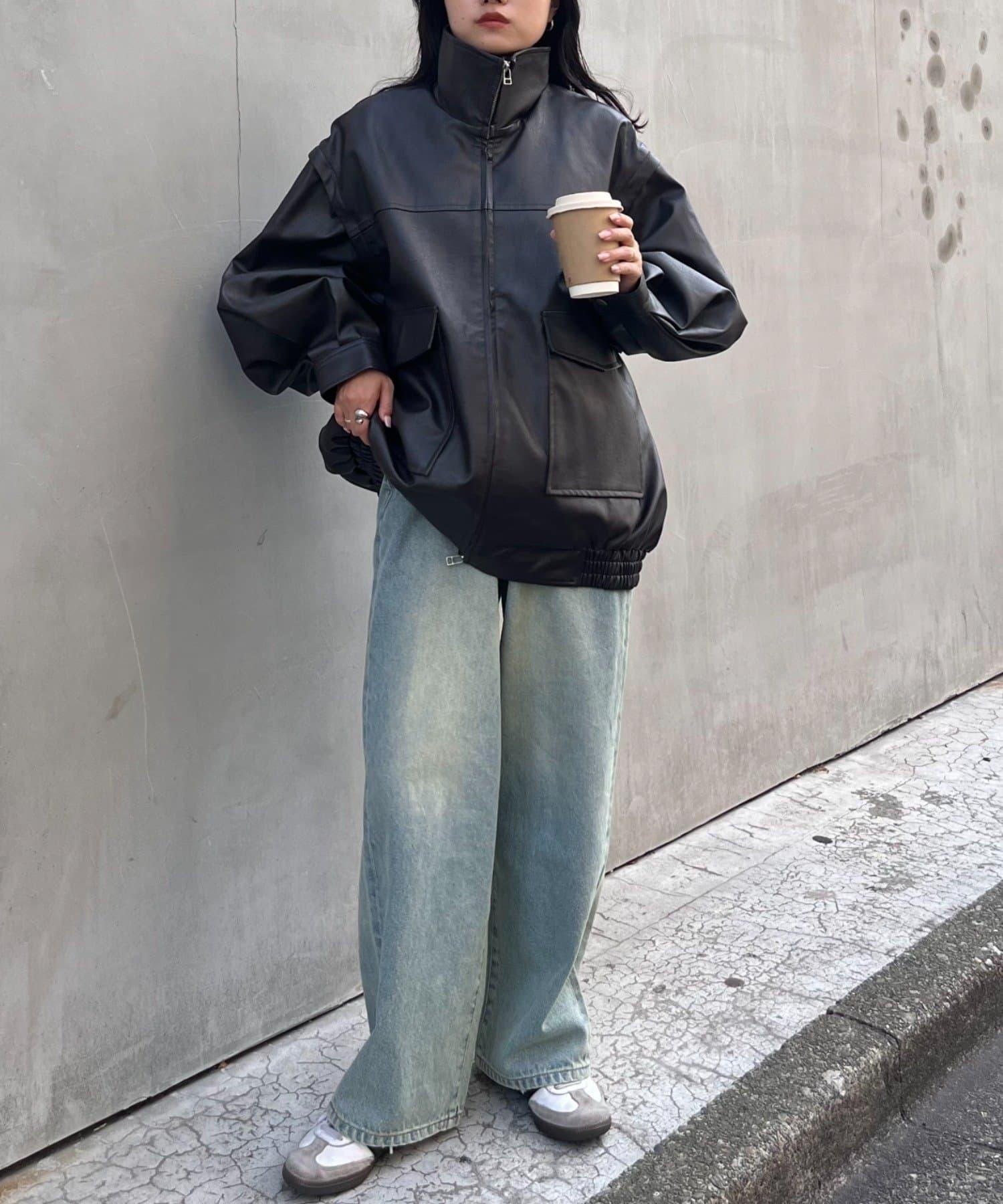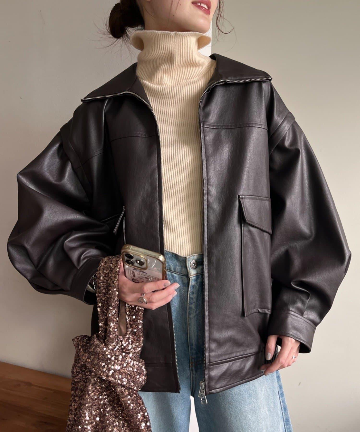 【身高別/詳細視頻有】【男女通用】仿皮2WAY立領夾克
