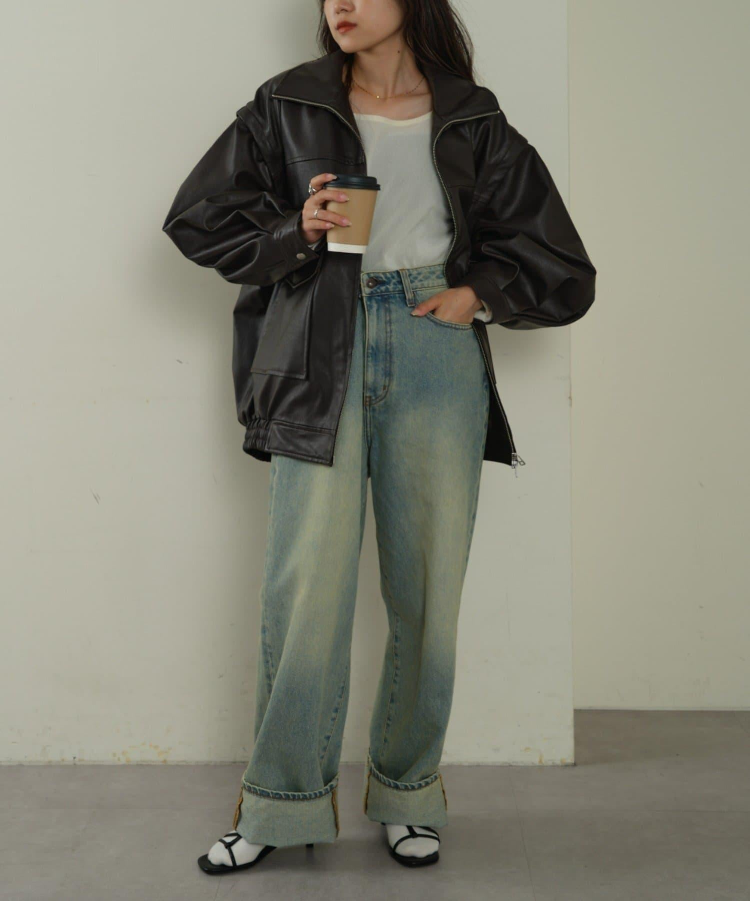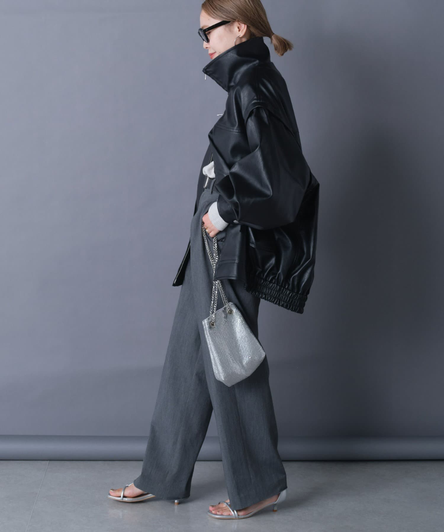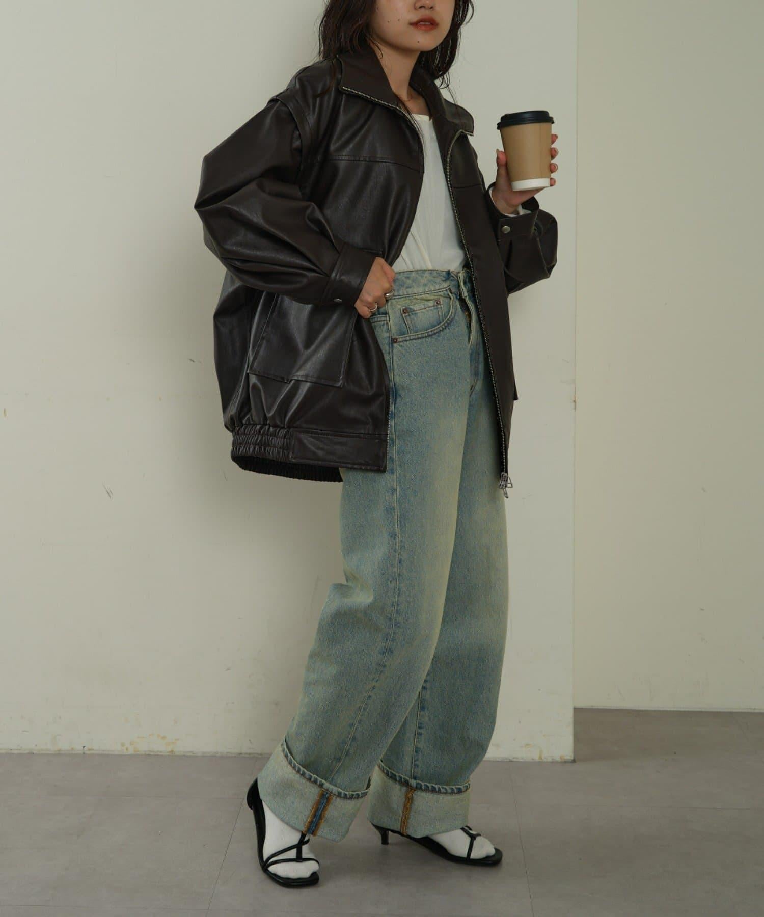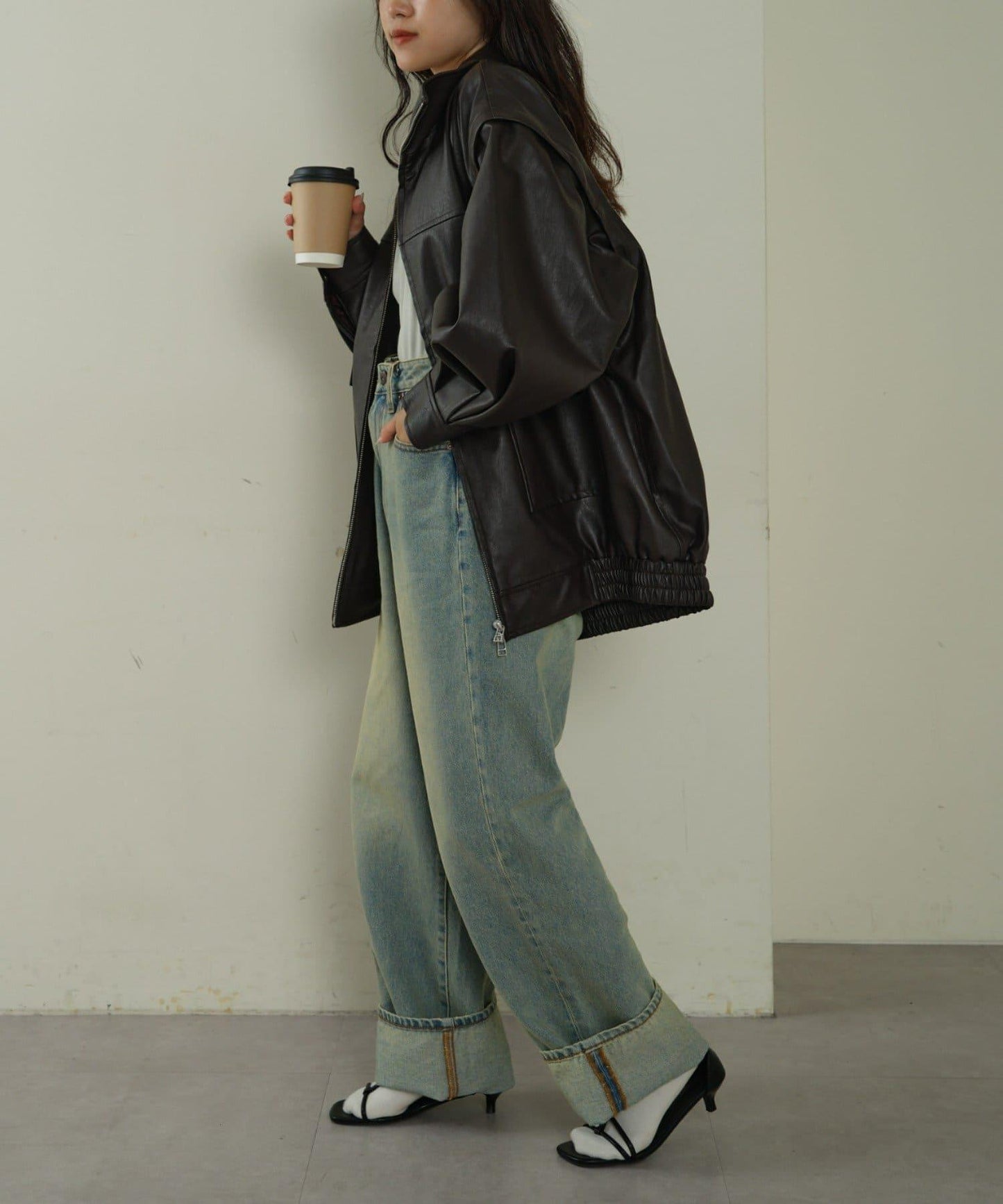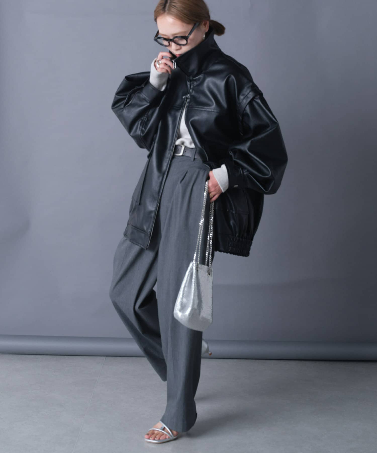 【身高別/詳細視頻有】【男女通用】仿皮2WAY立領夾克