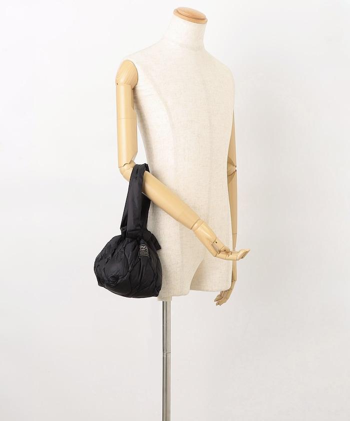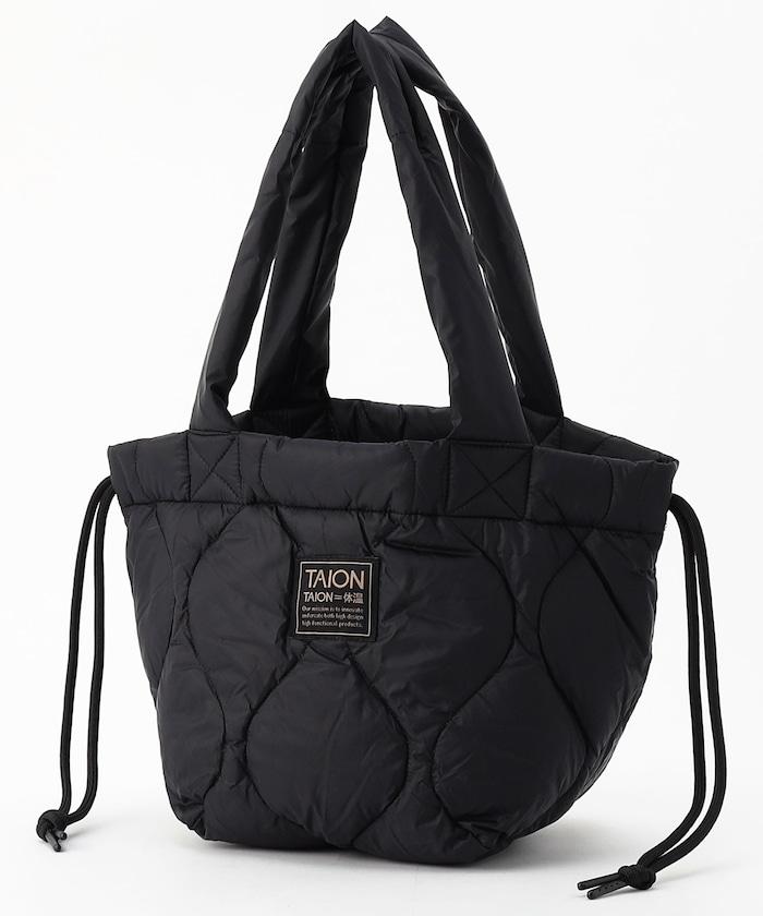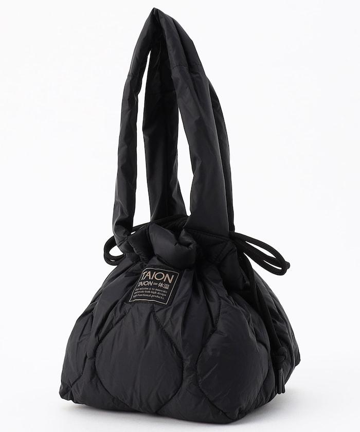雙向拉繩手提包由輕質羽絨材料製成。