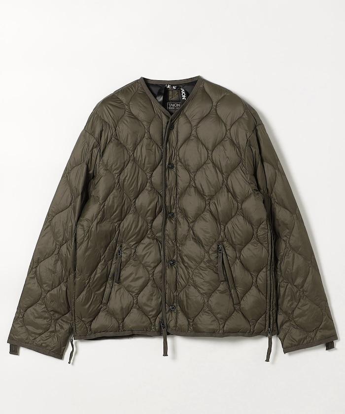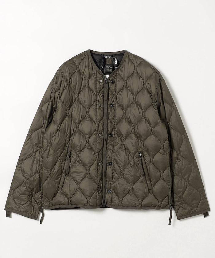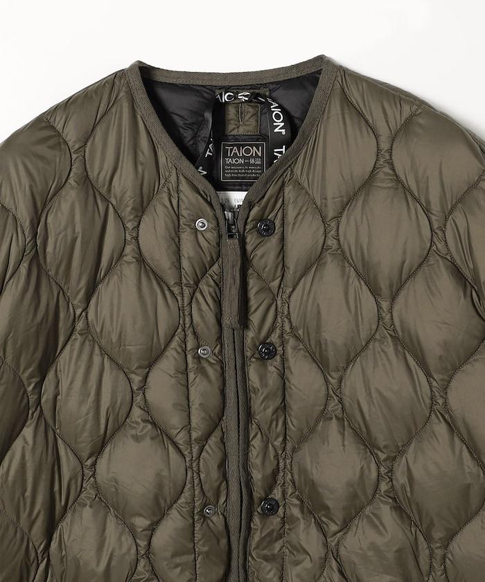 絲瓜絎縫羽絨拼接的軍裝風格。
