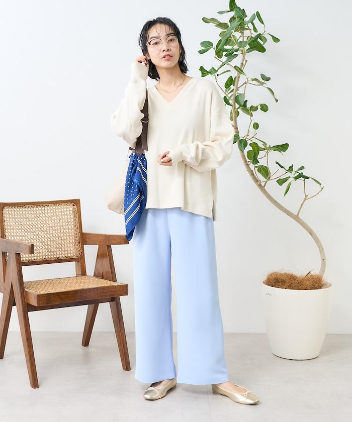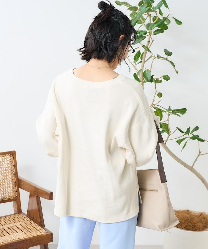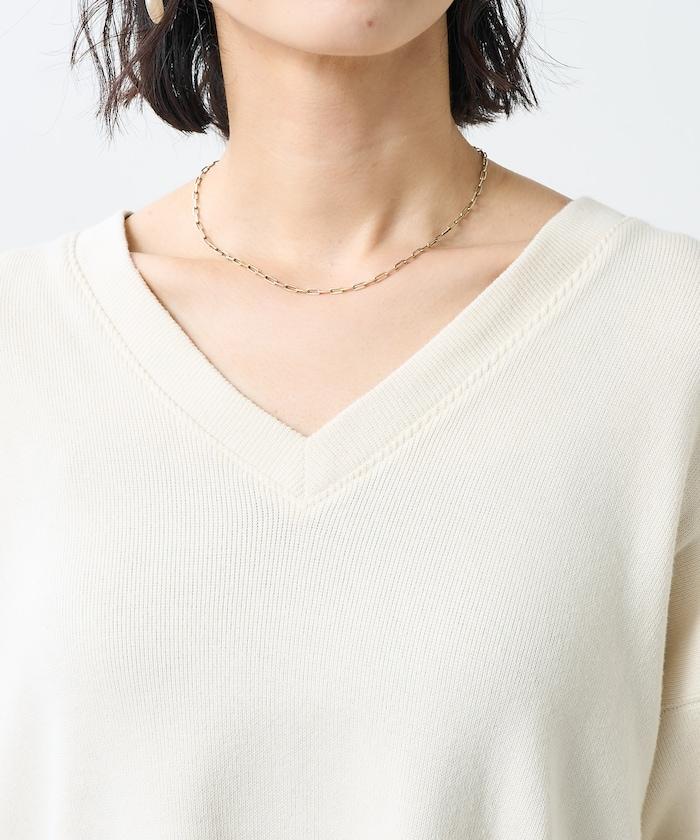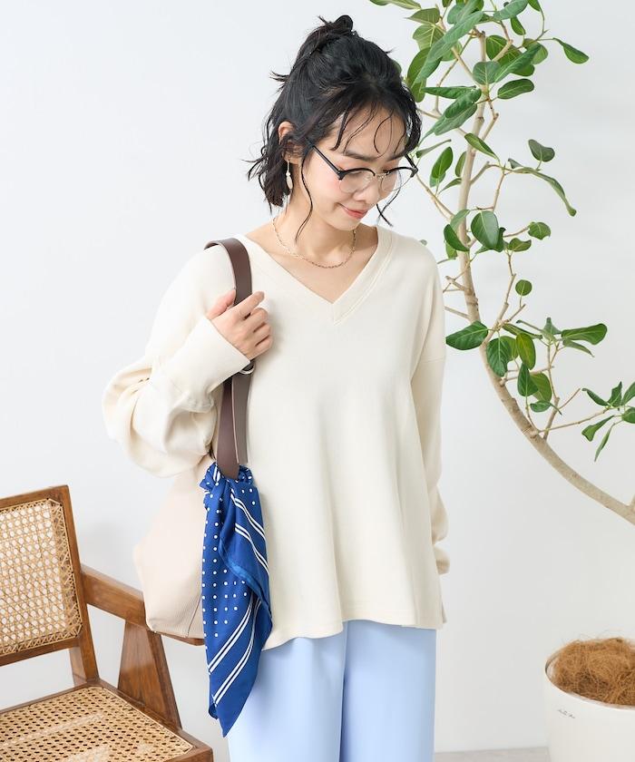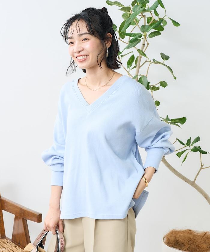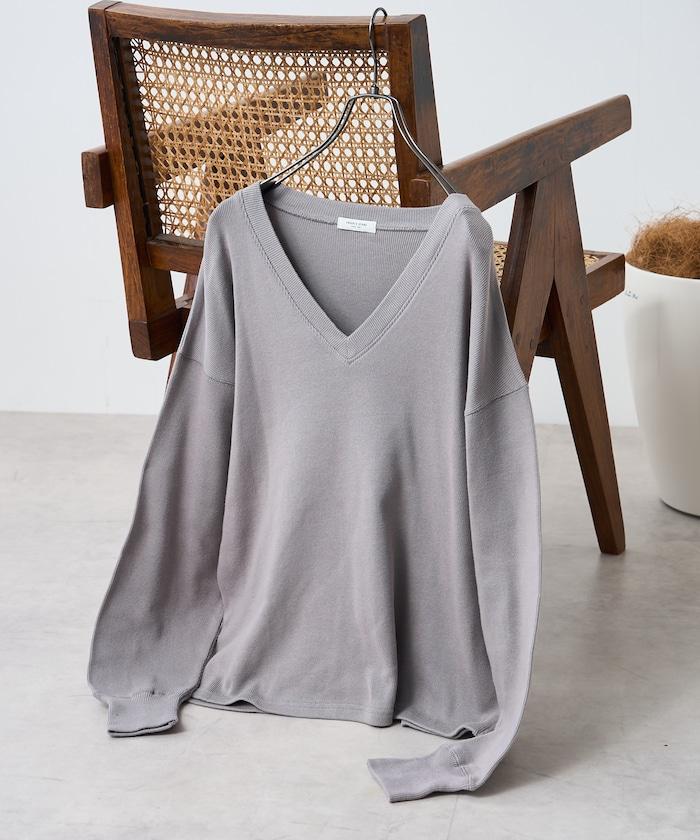 與圓領相比,這款 V 領剪裁縫製的服裝更顯寬鬆和成熟。