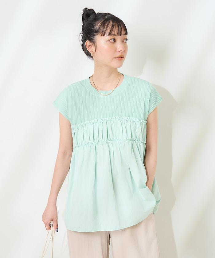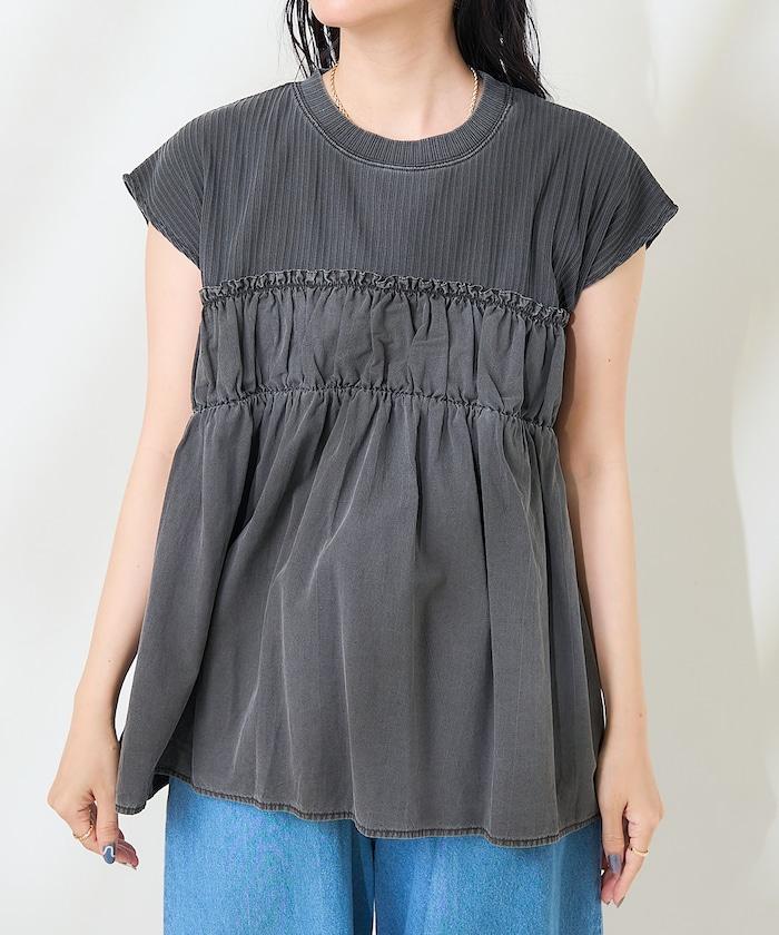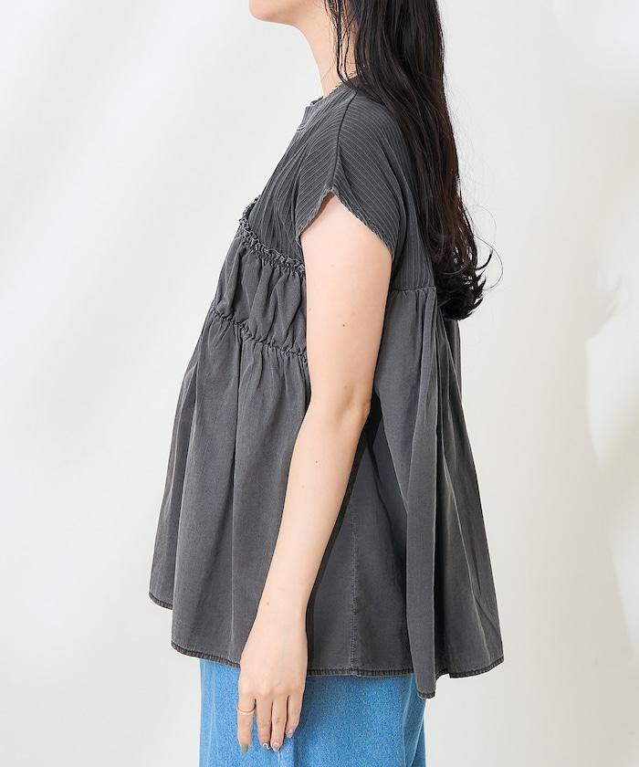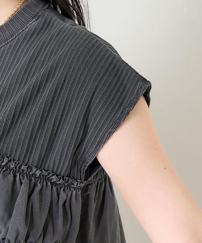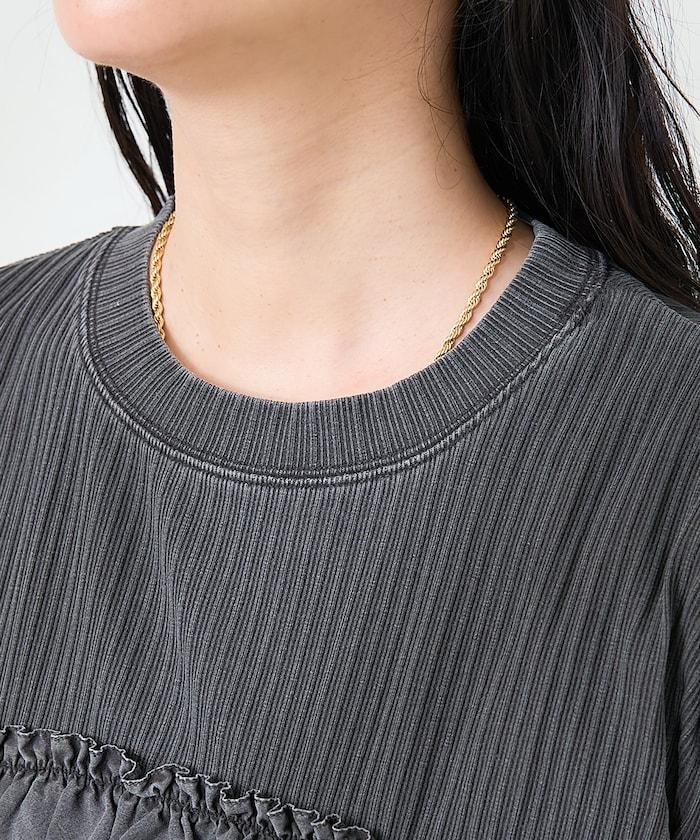 軍裝風肋紋混色法式短袖T恤