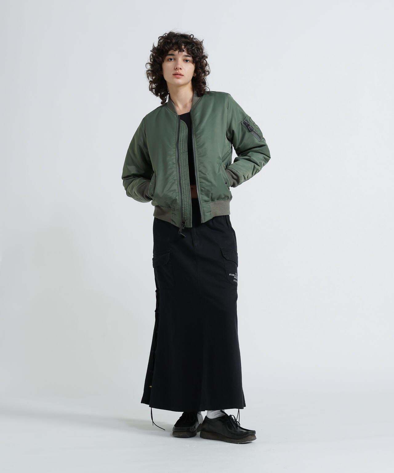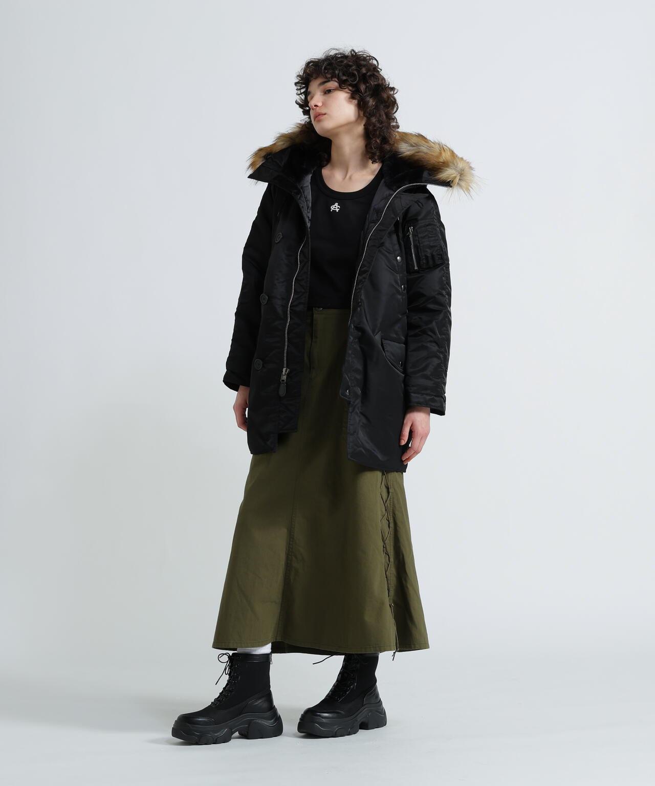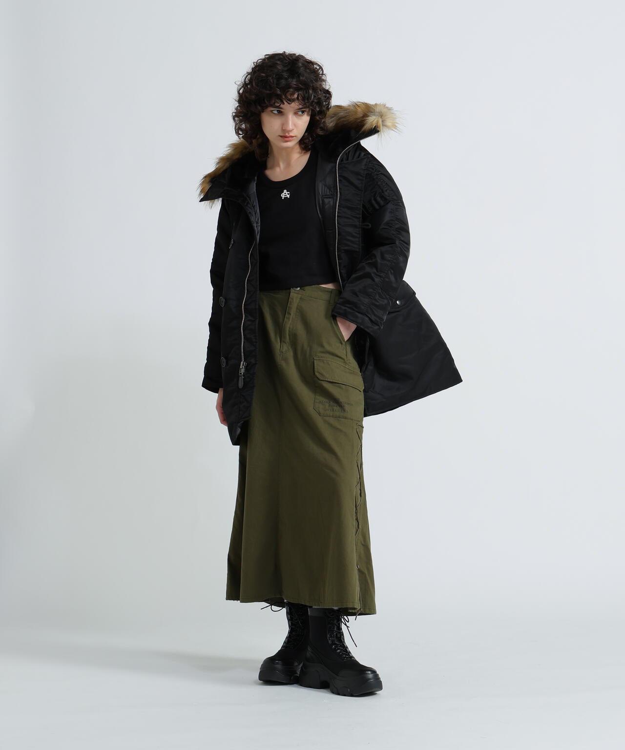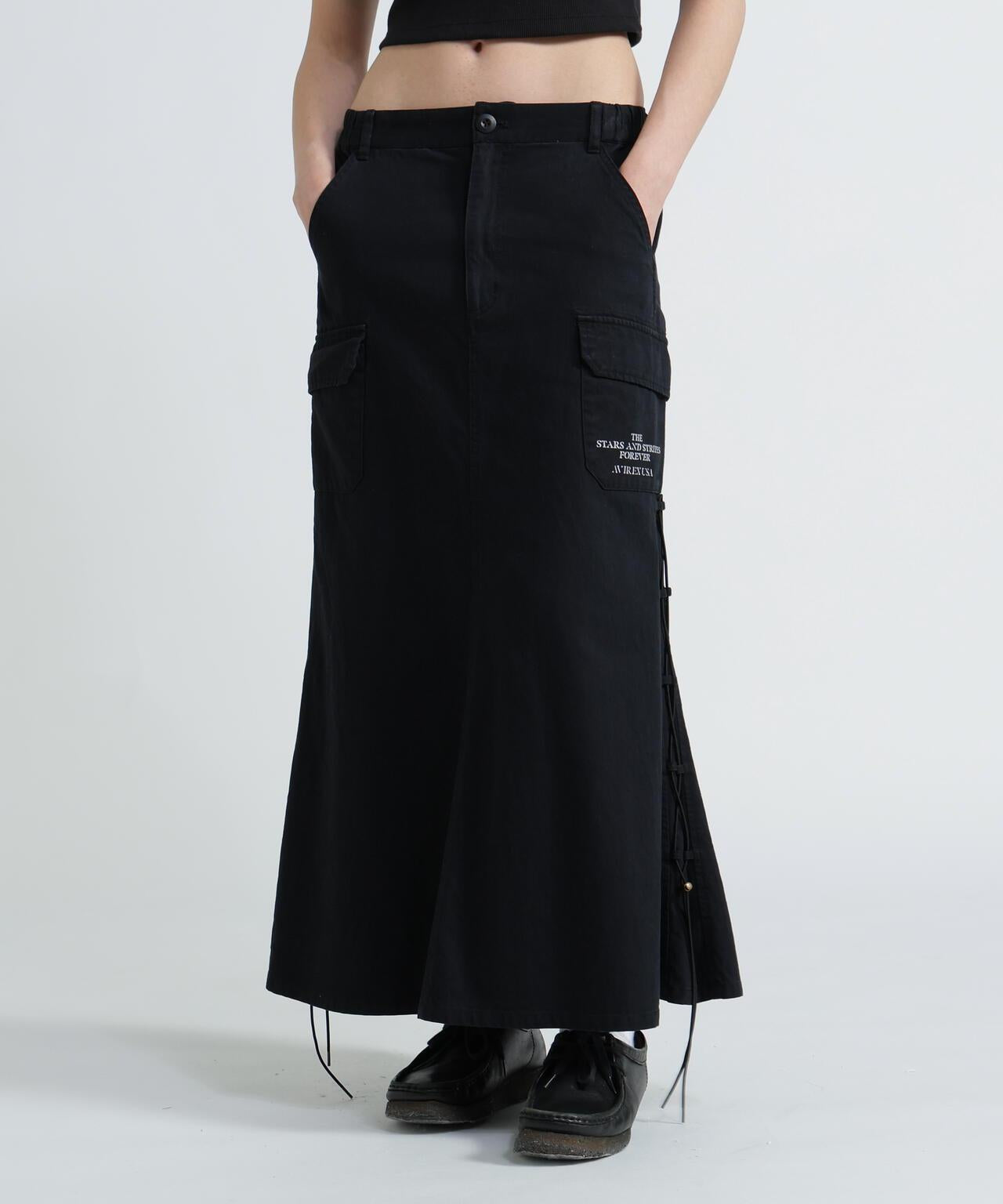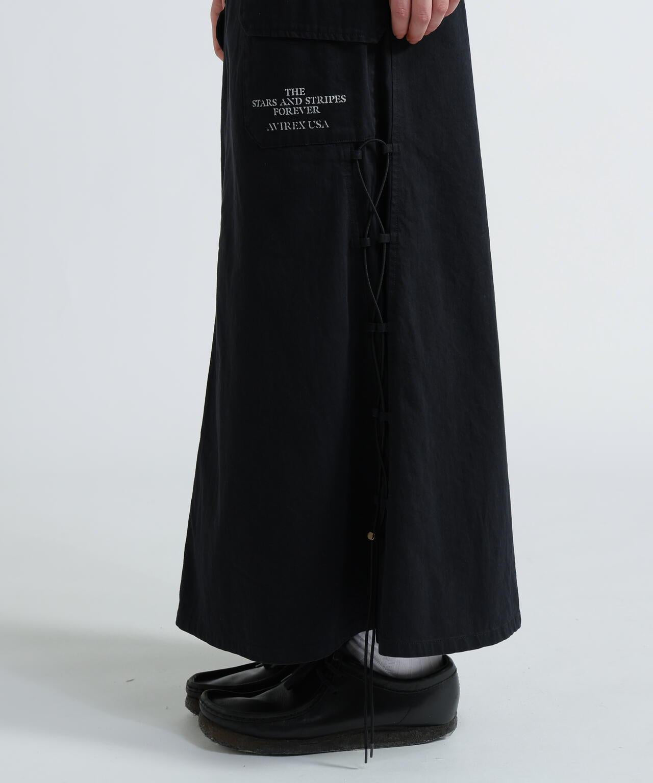 軍風側邊繫帶半身裙