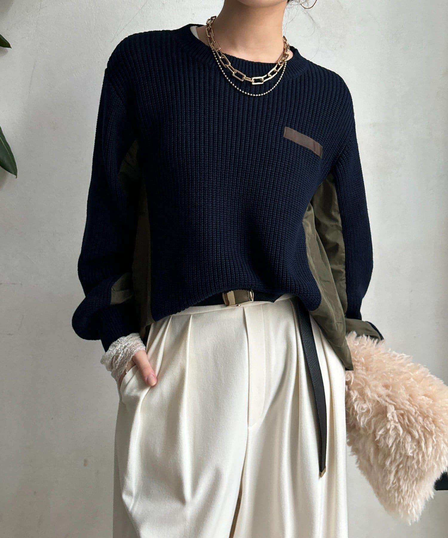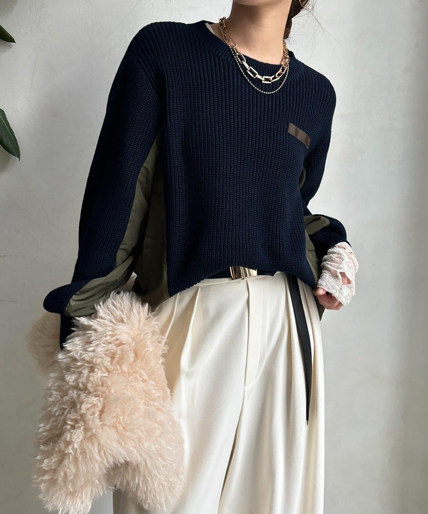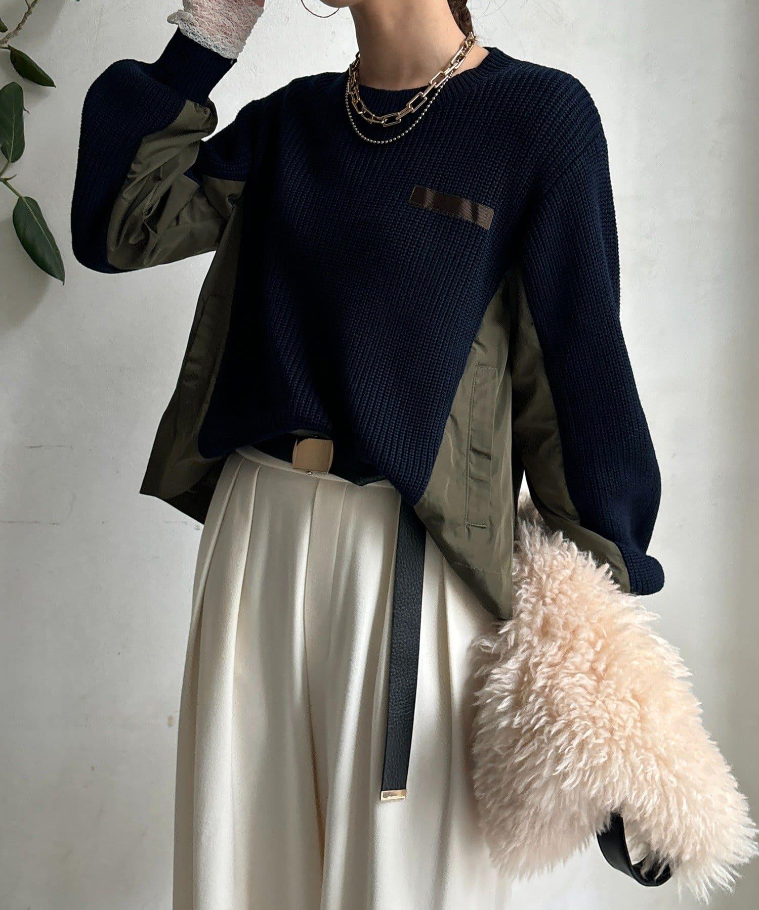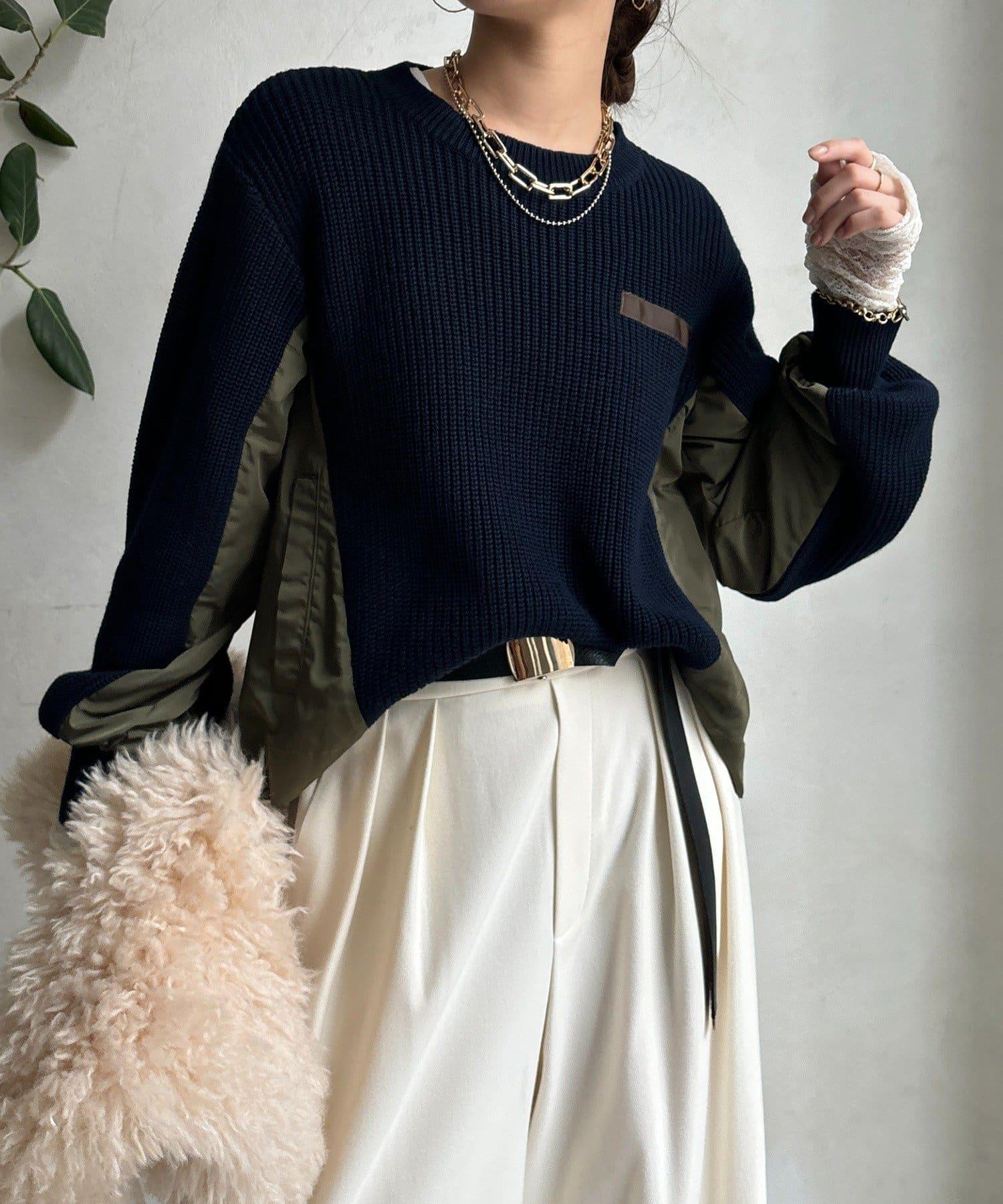 將針織衫與軍裝風格的不同材質進行對接,設計感極強的單品。