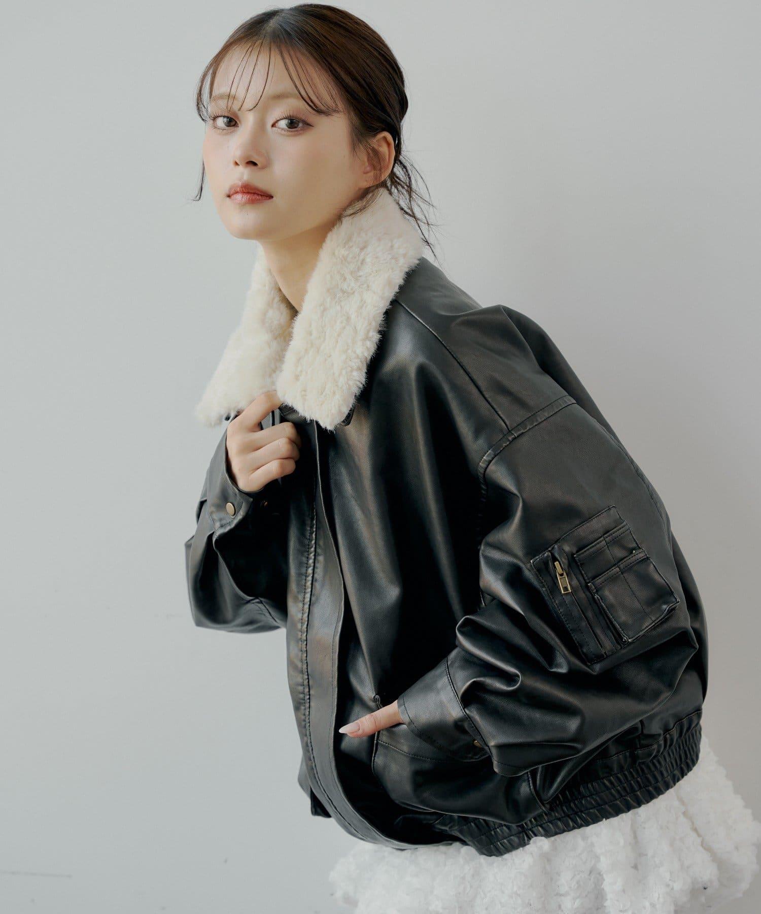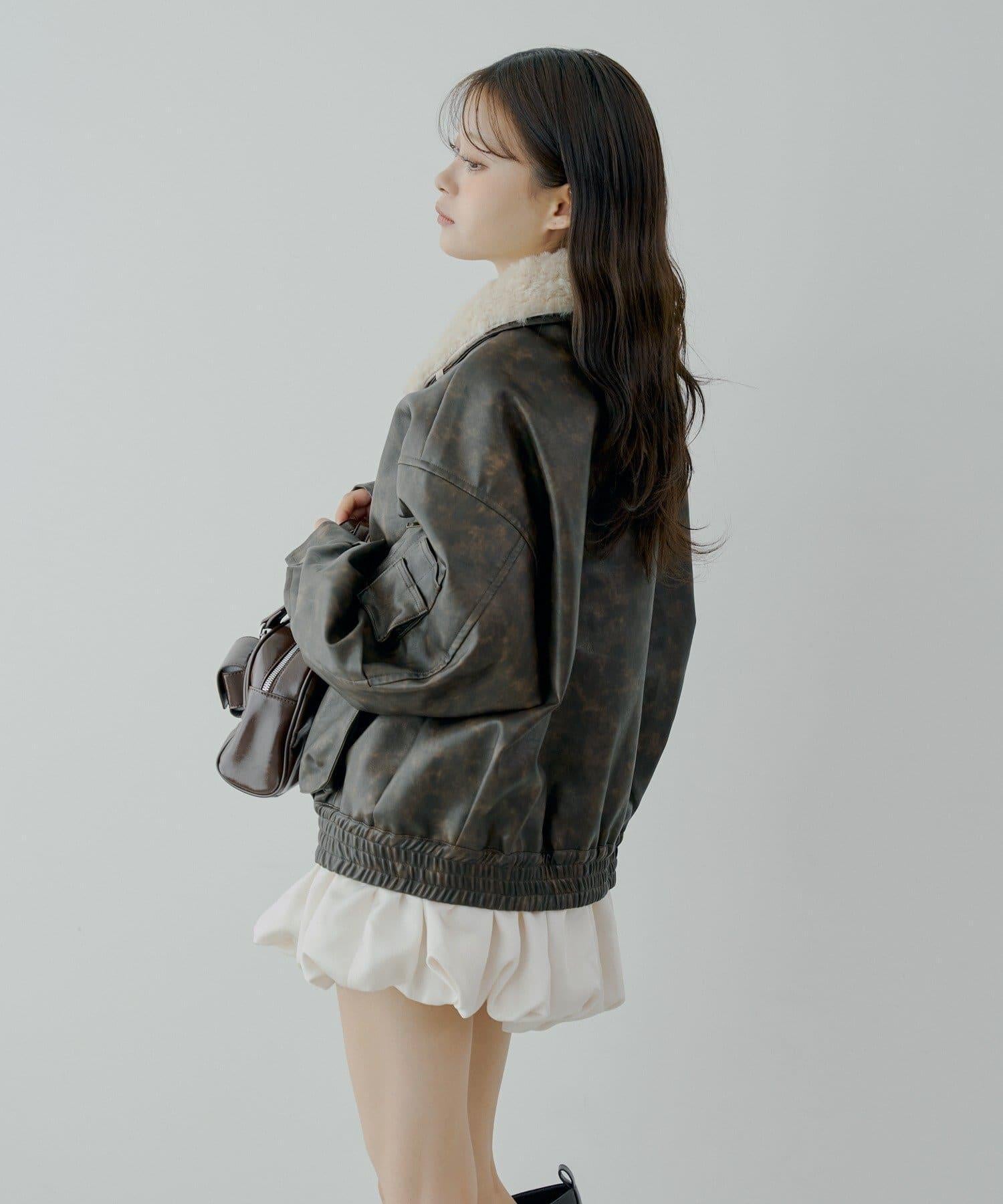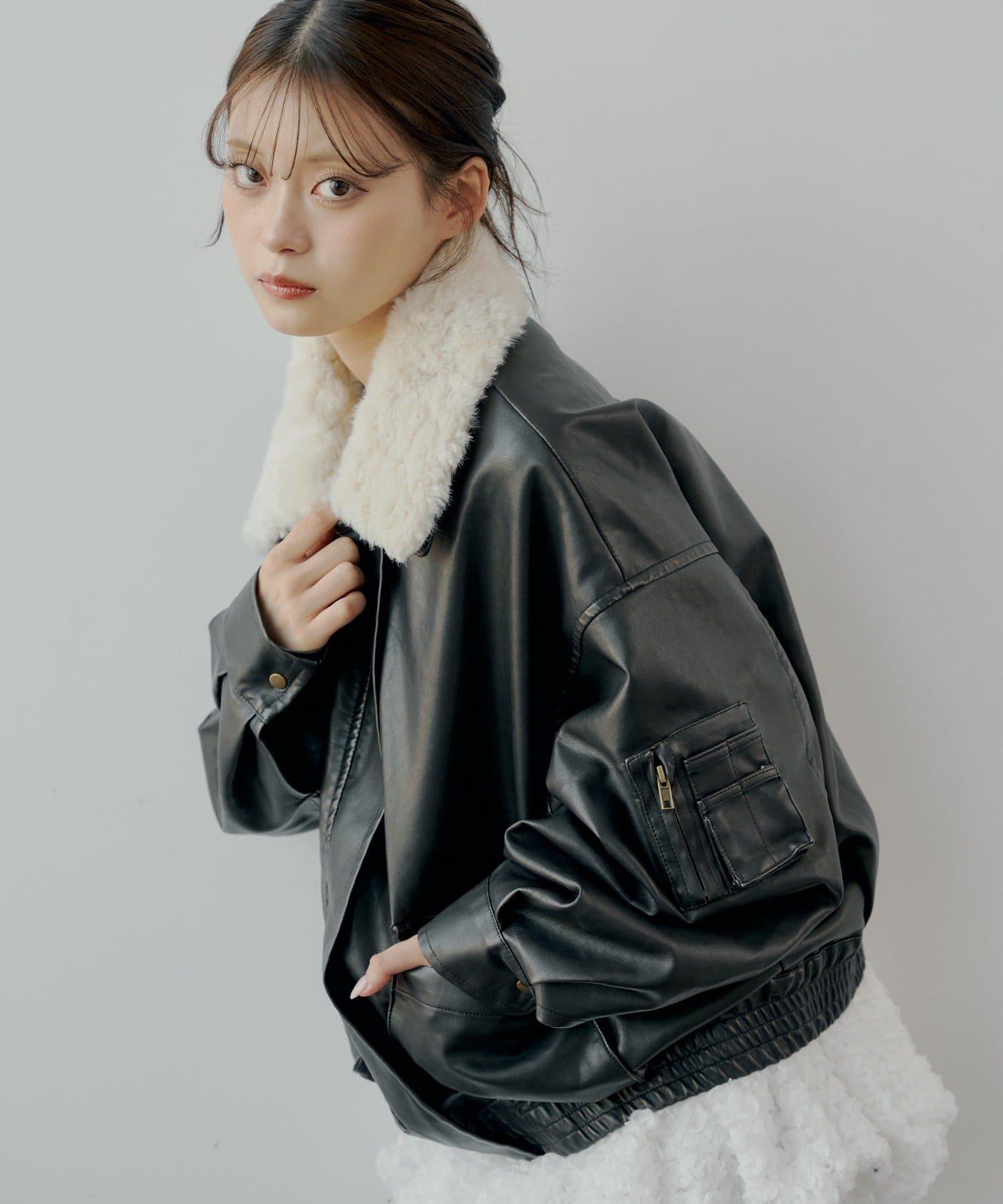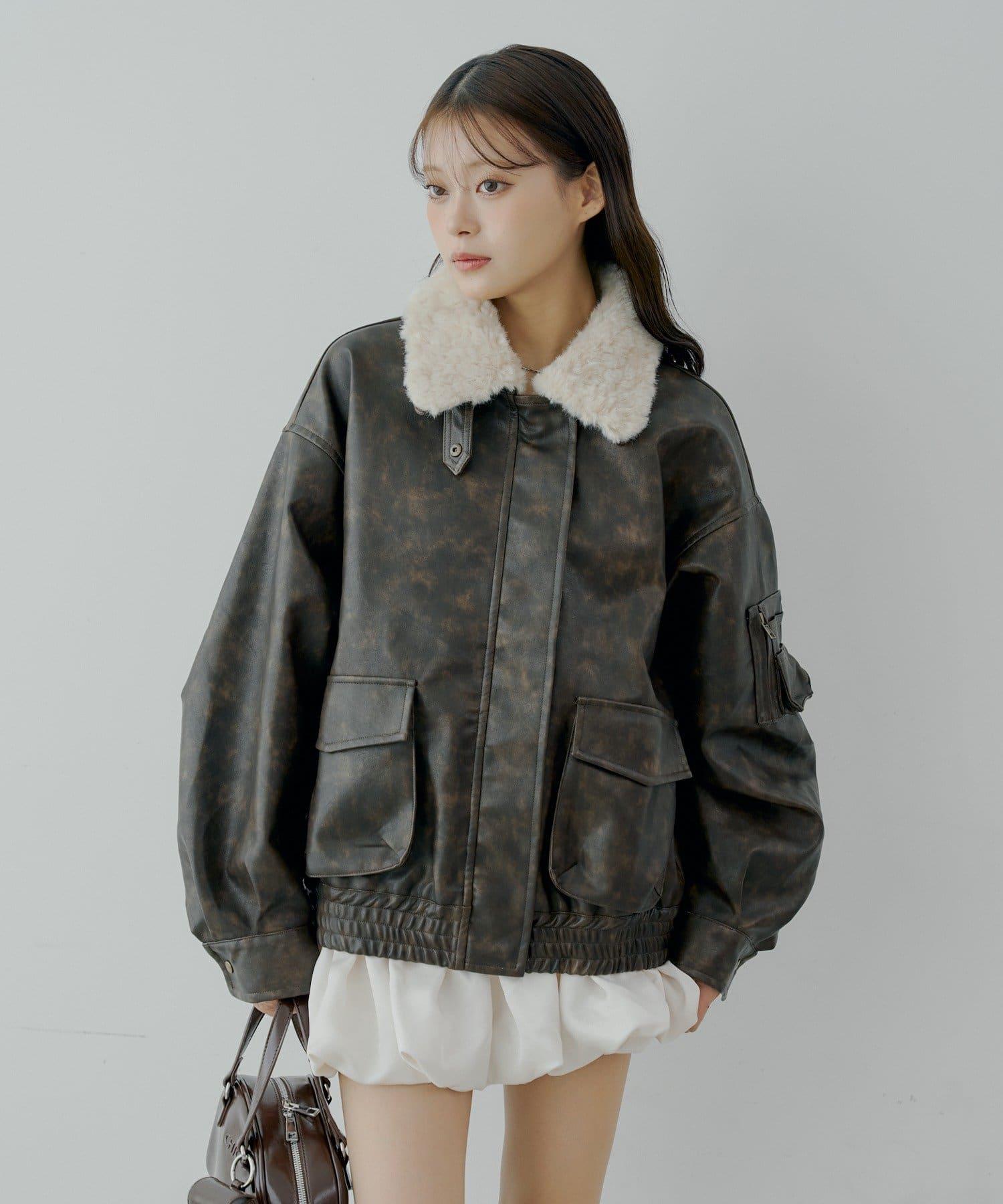領口處的蓬鬆皮草是可拆卸的,因此您也可以根據心情或場合將其作為無領皮夾克穿著。