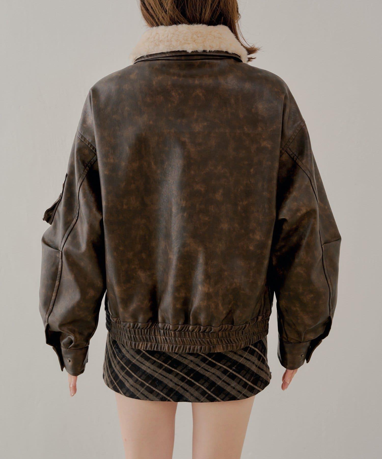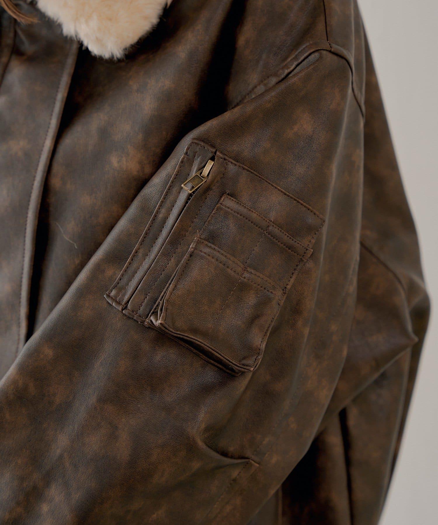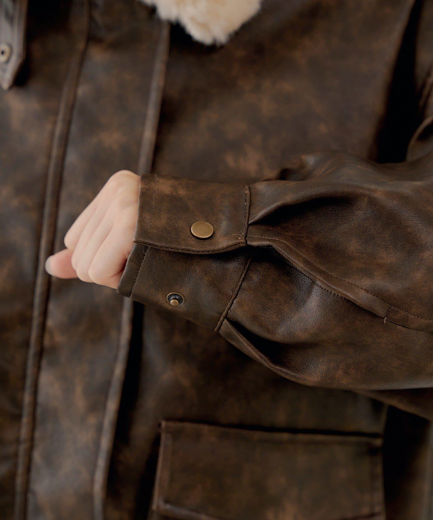 軍風皮夾克/可拆卸毛領