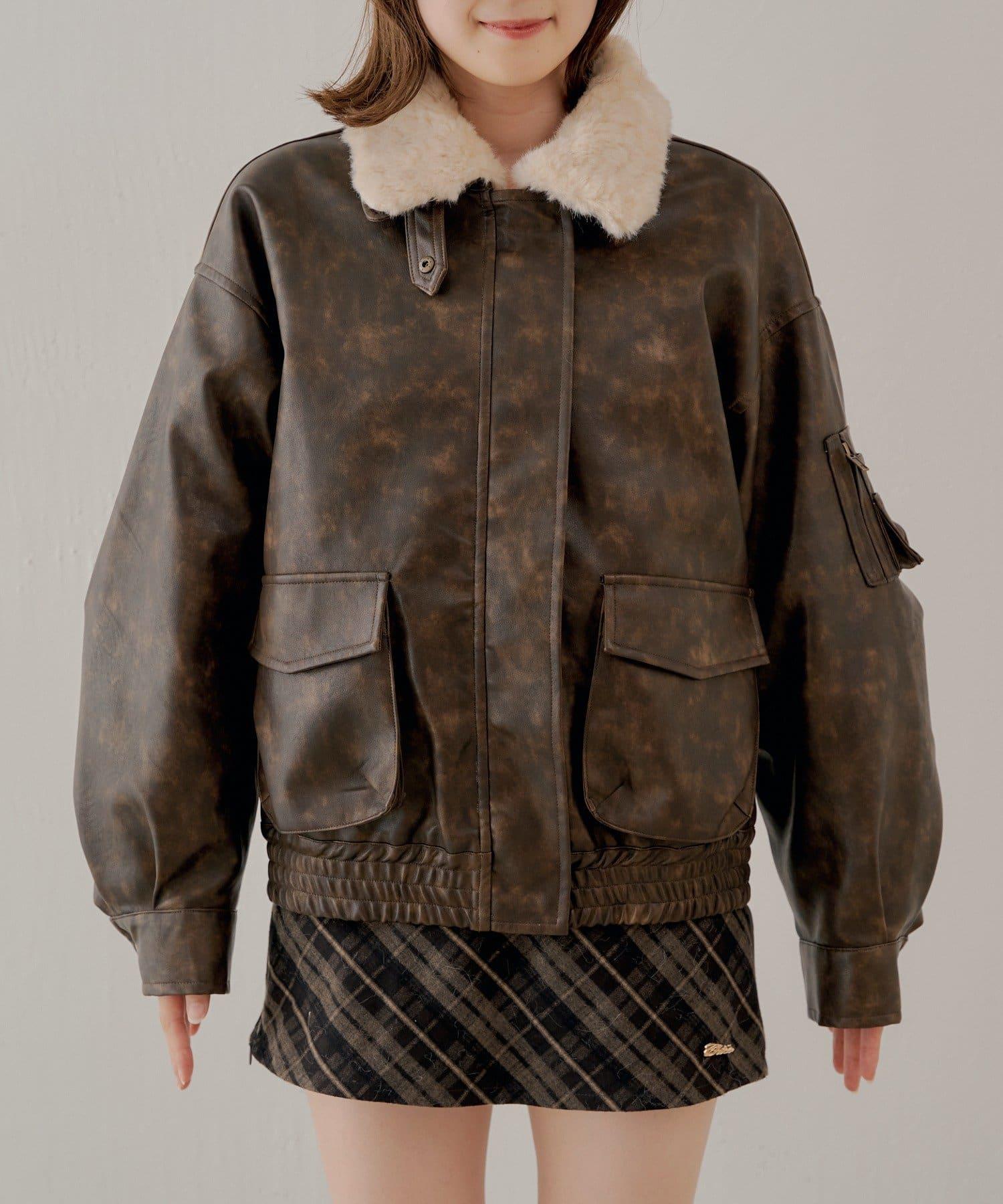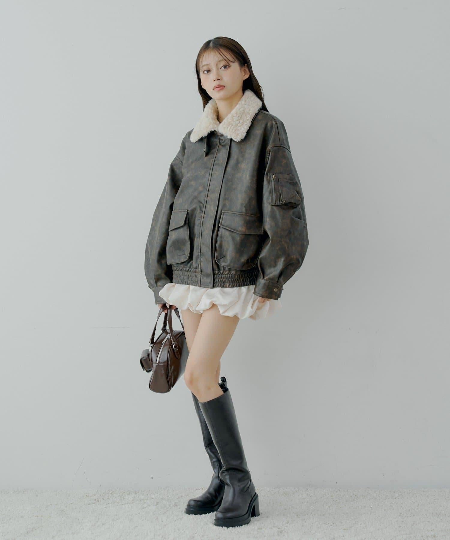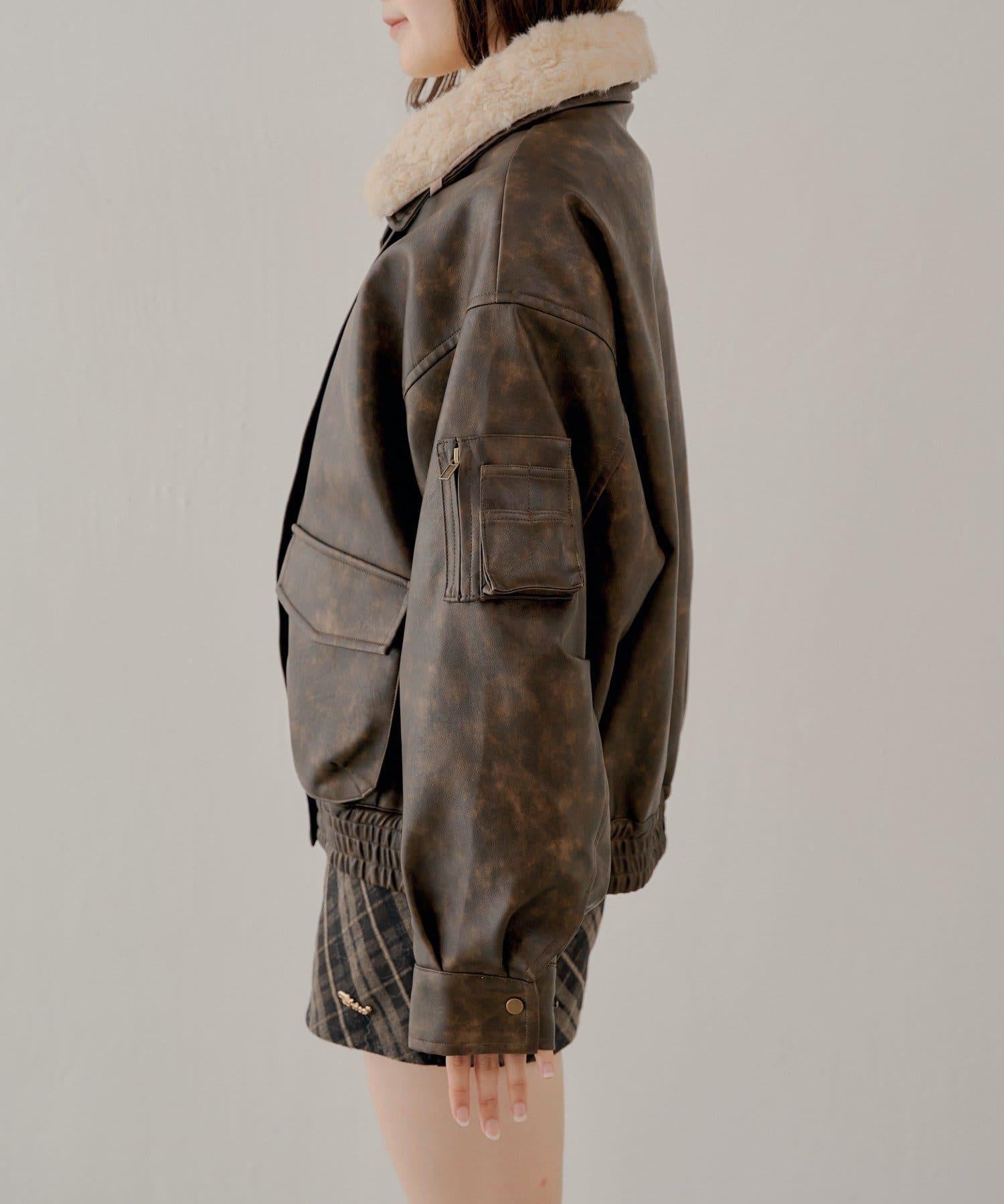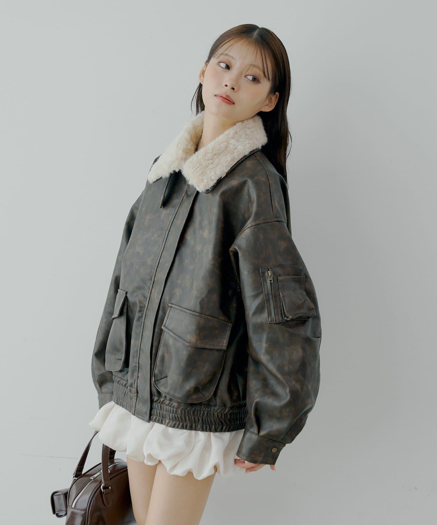 軍風皮夾克/可拆卸毛領