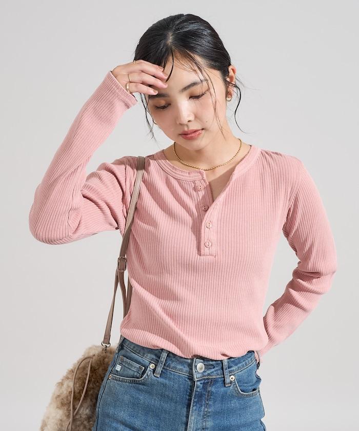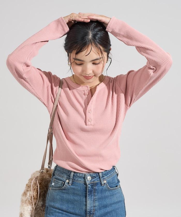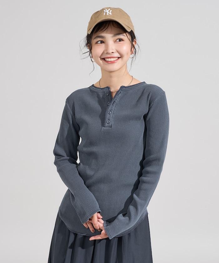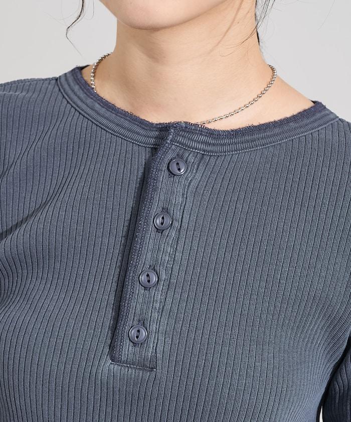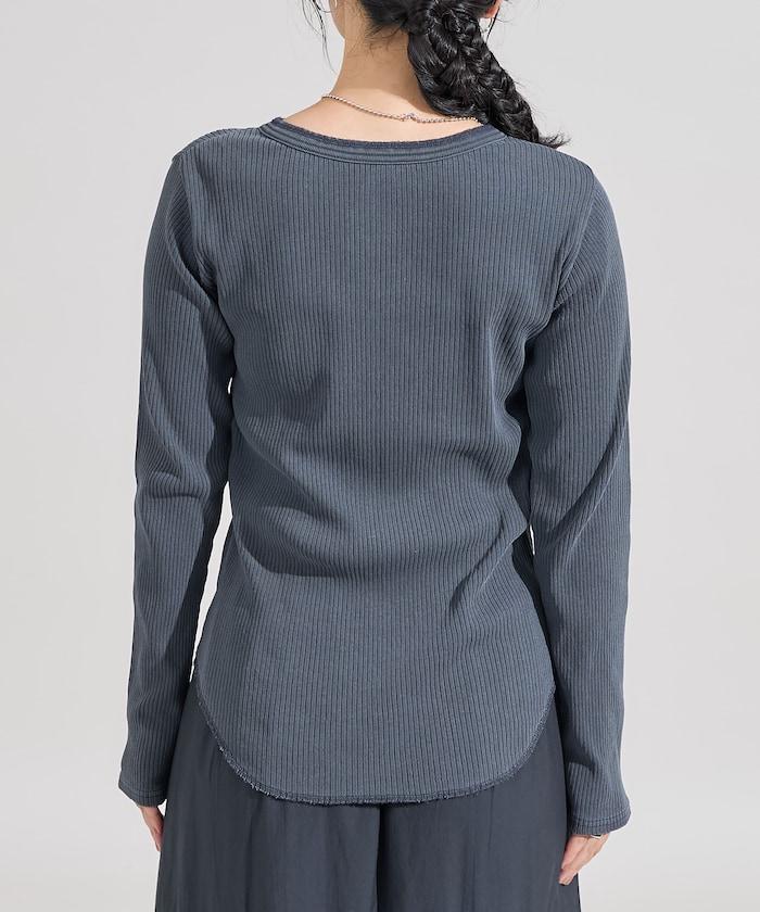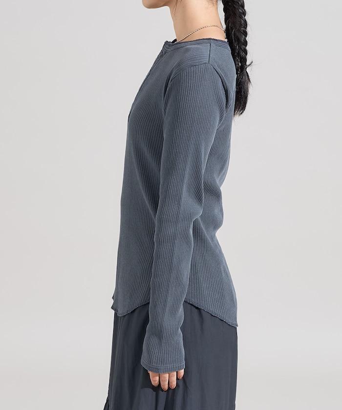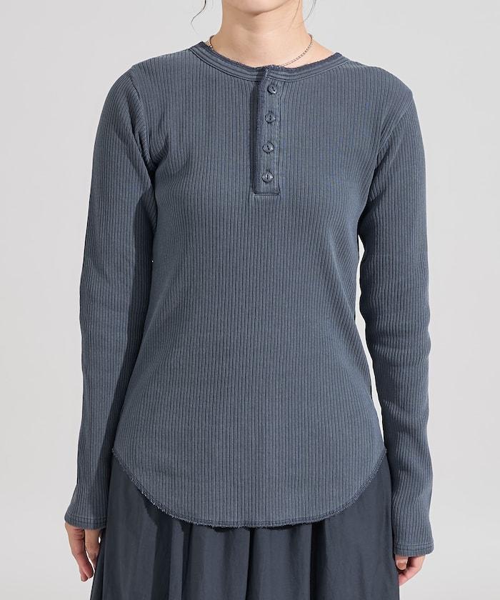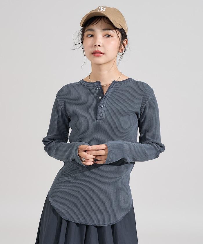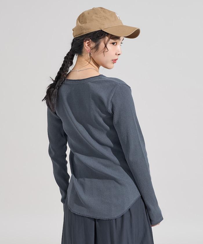 軍風羅紋亨利領長袖T恤