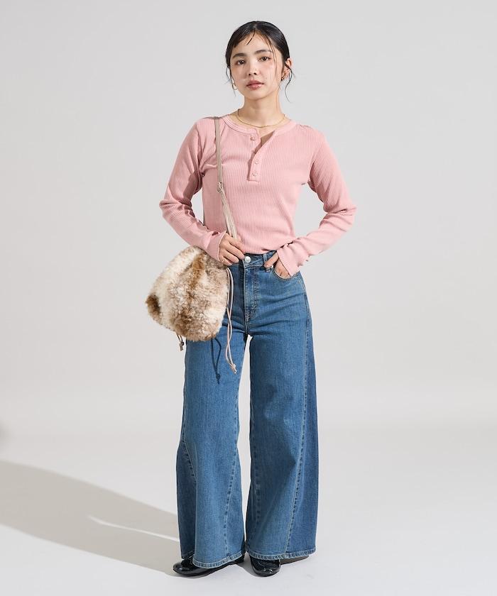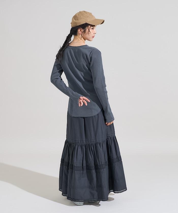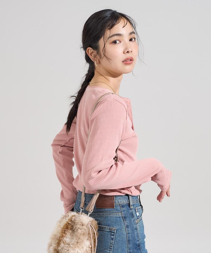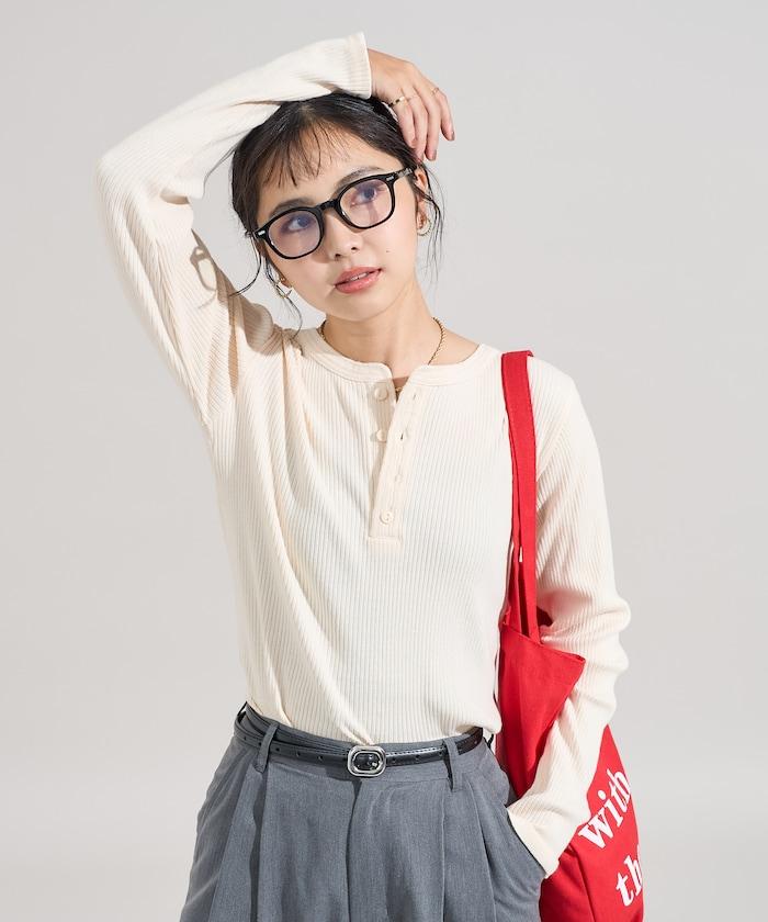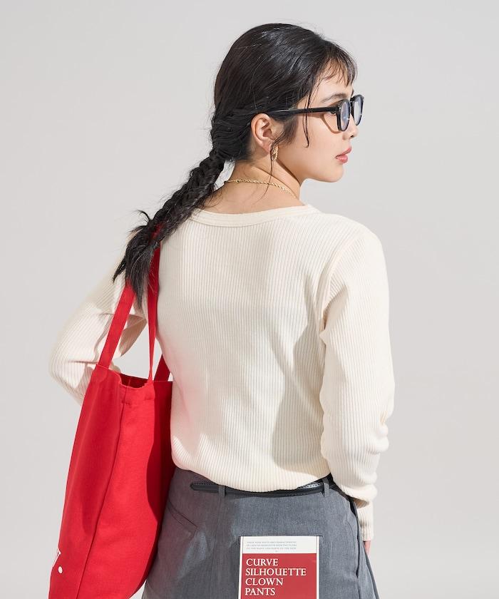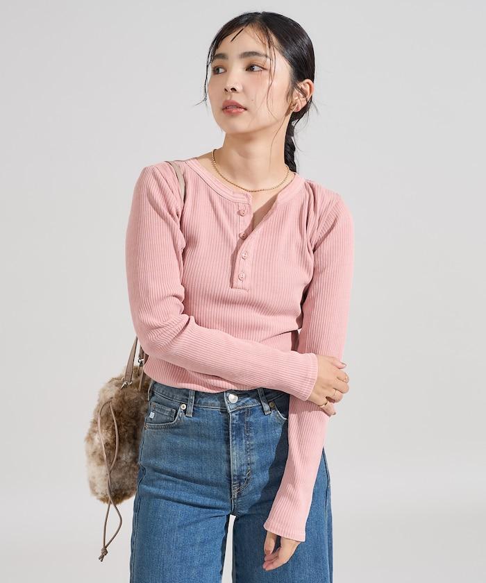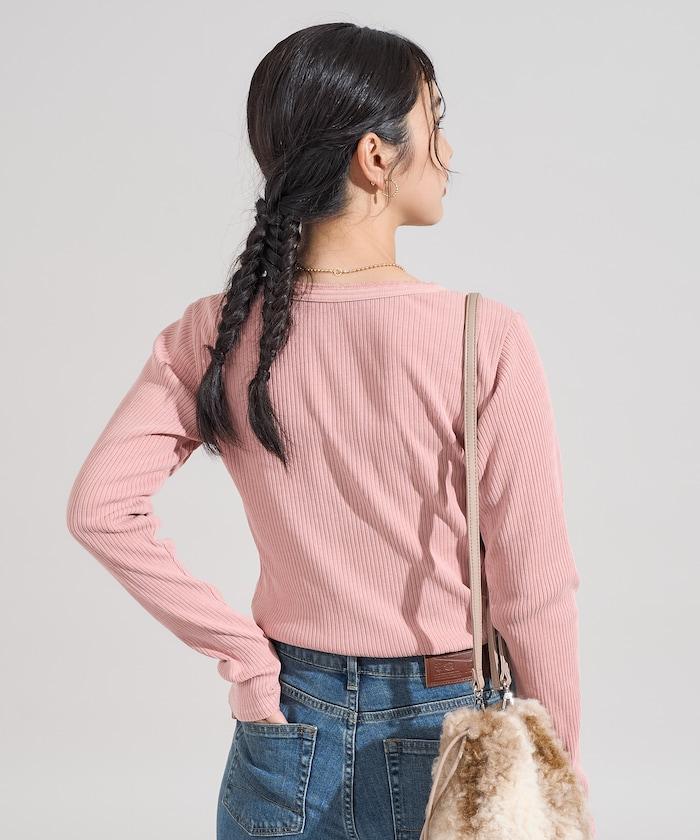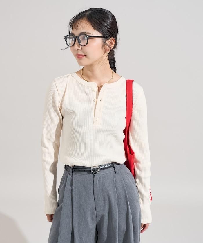 軍風羅紋亨利領長袖T恤