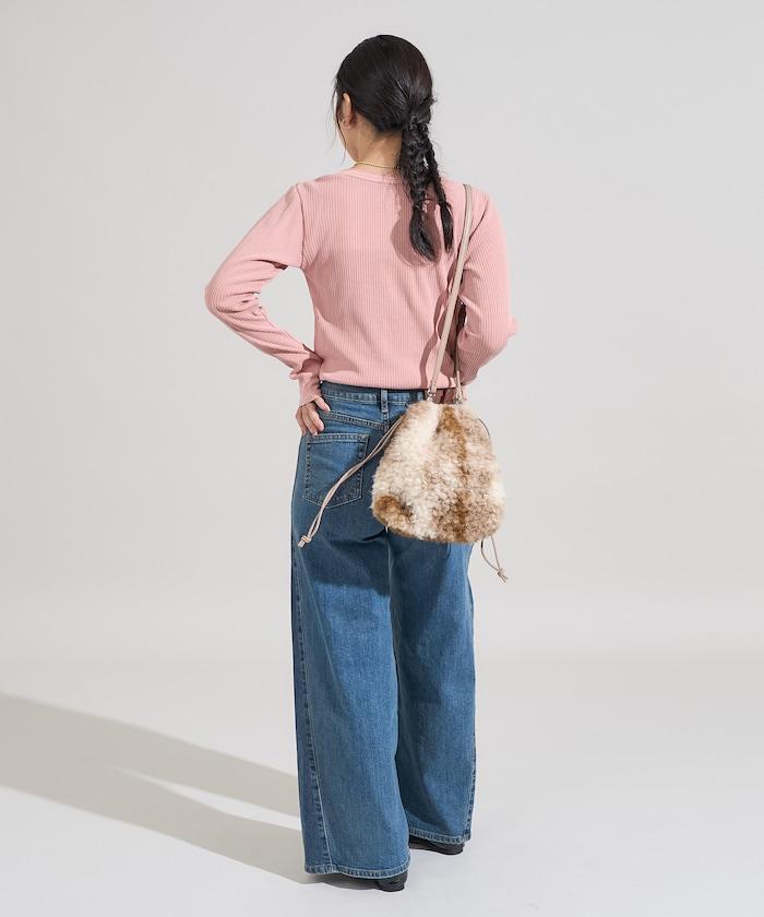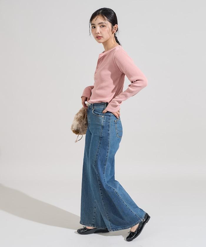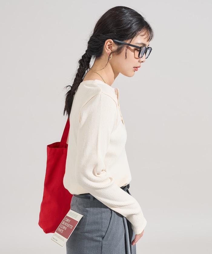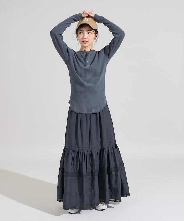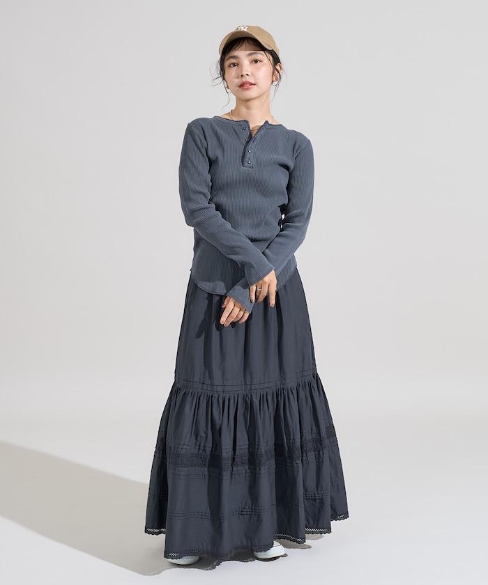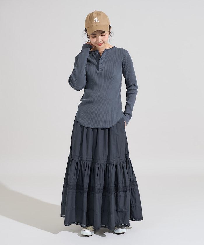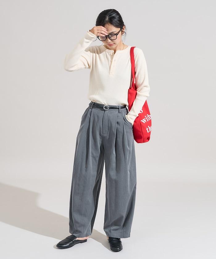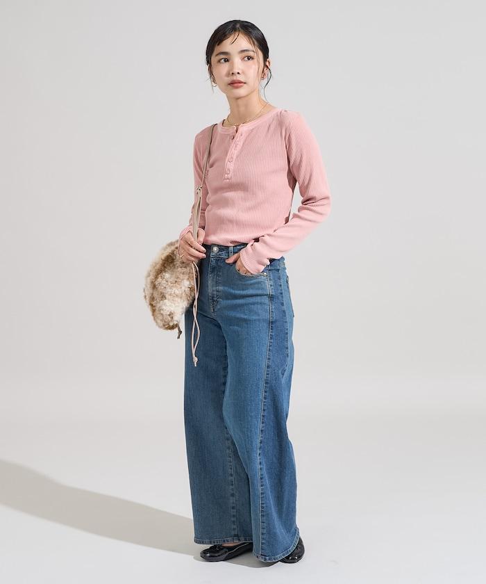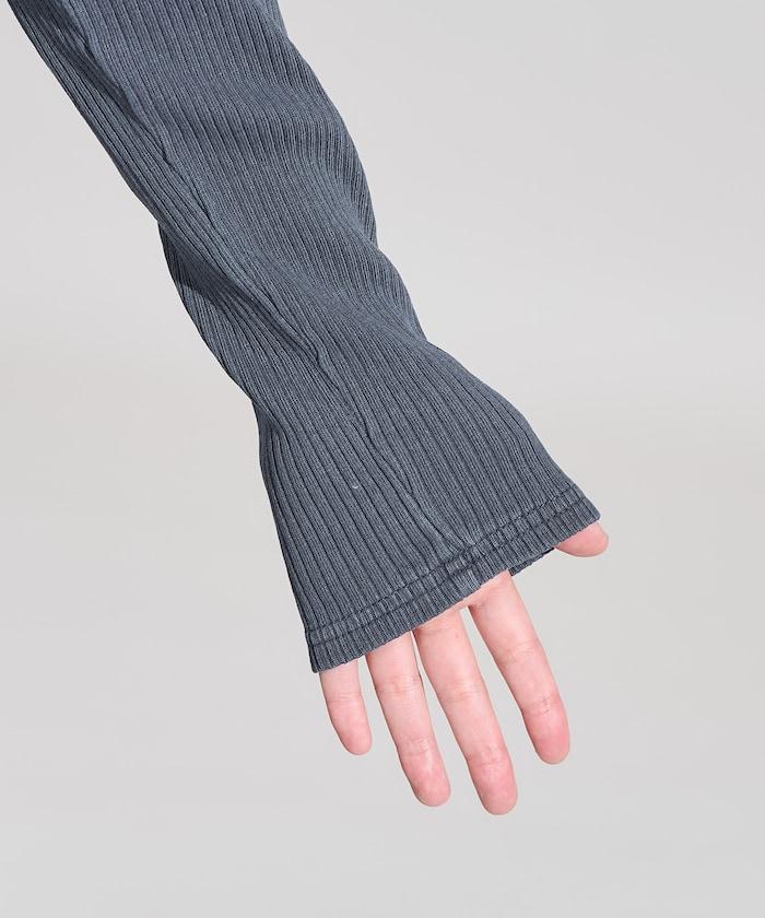 軍風羅紋亨利領長袖T恤