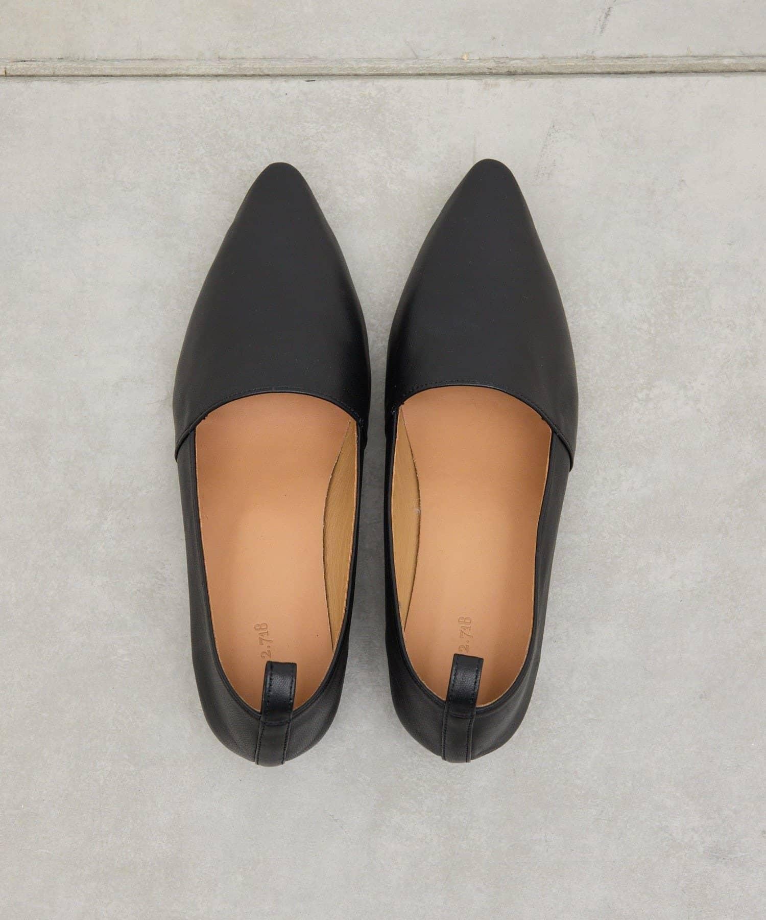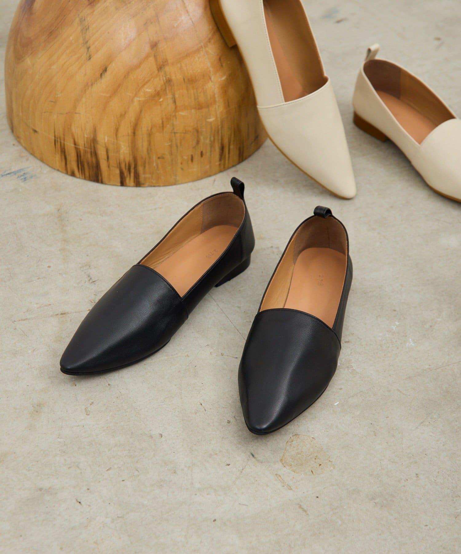 儘管是平底鞋,尖頭設計卻給人乾淨利落的印象。