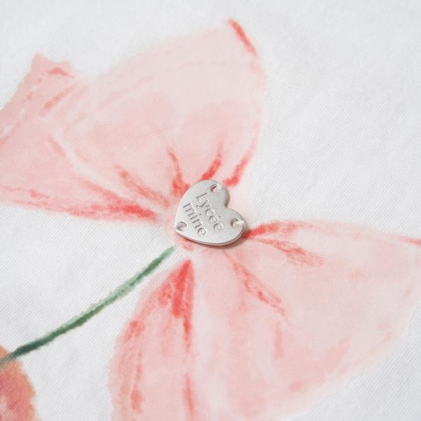 精緻的轉印圖案和獨創的 Lisemine 心形銀色吊飾是這款 T 恤的亮點。