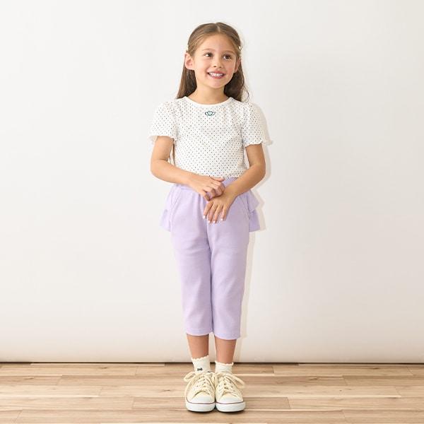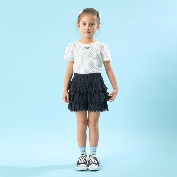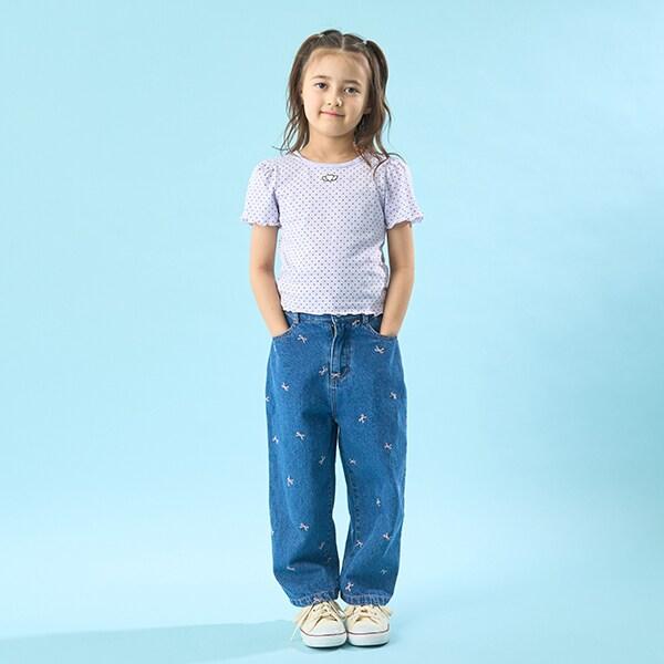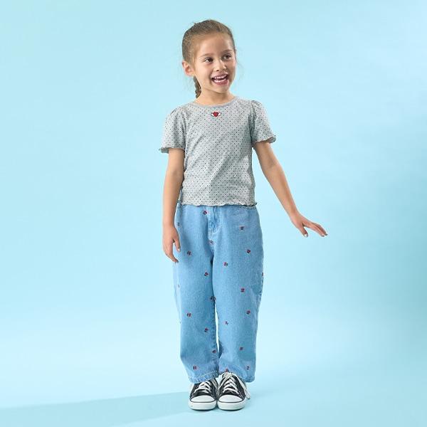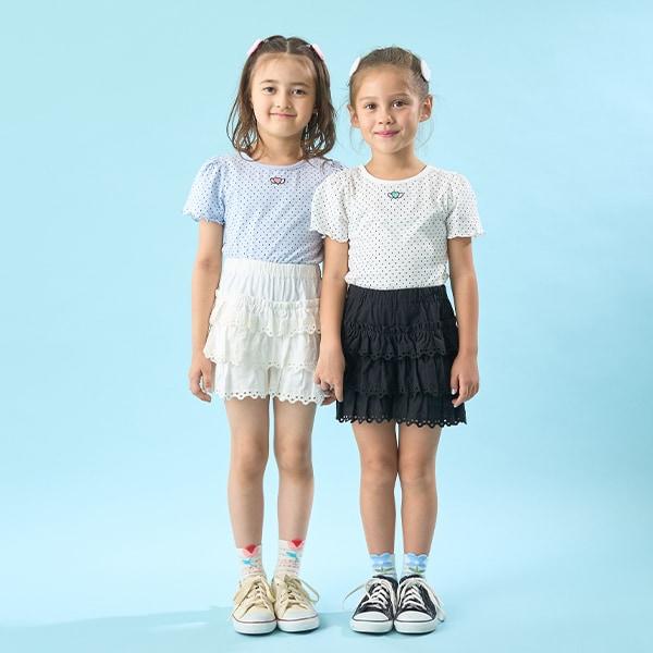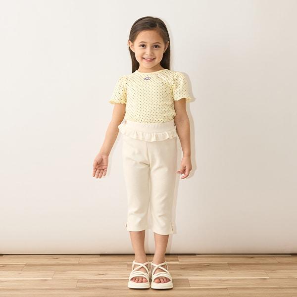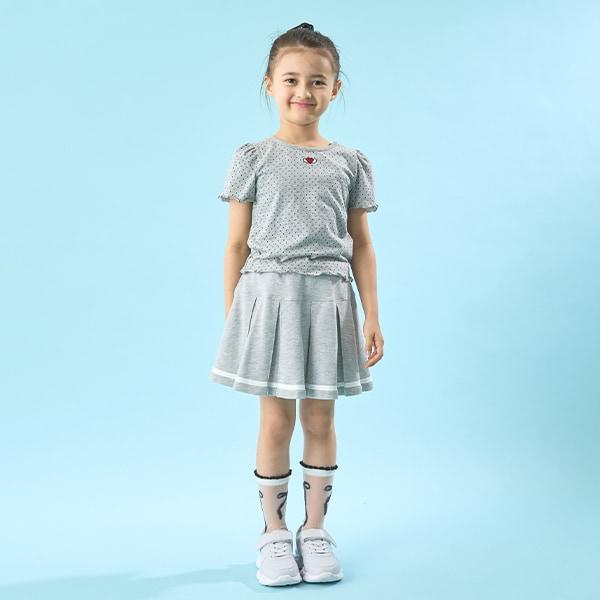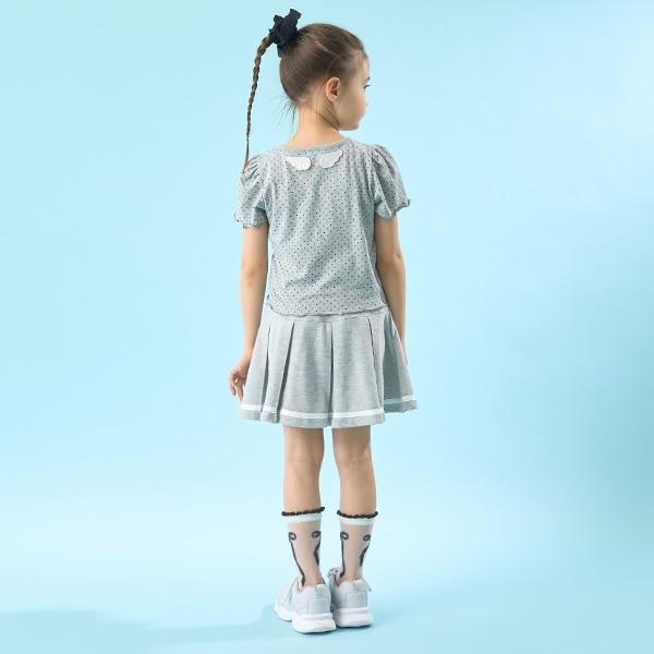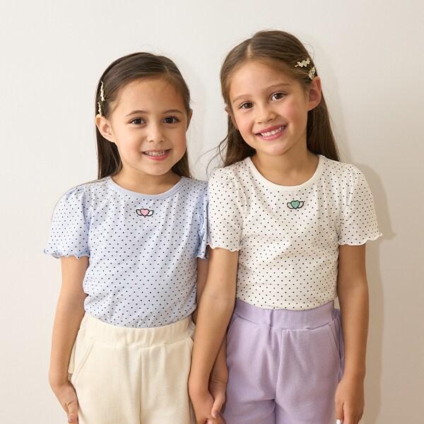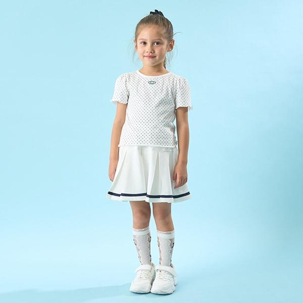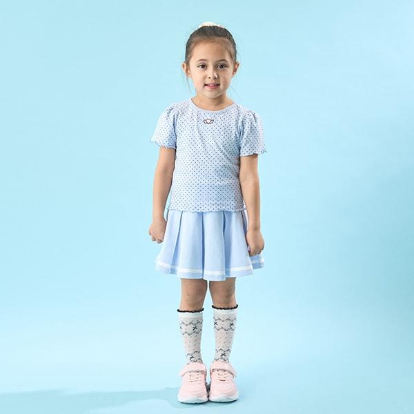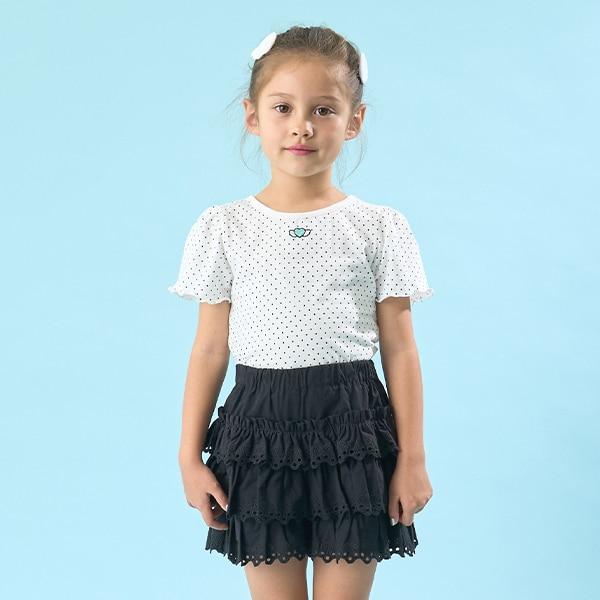 短袖 T 恤,帶有可愛的小圓點圖案,長度緊湊。