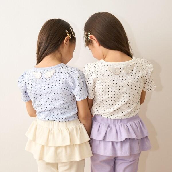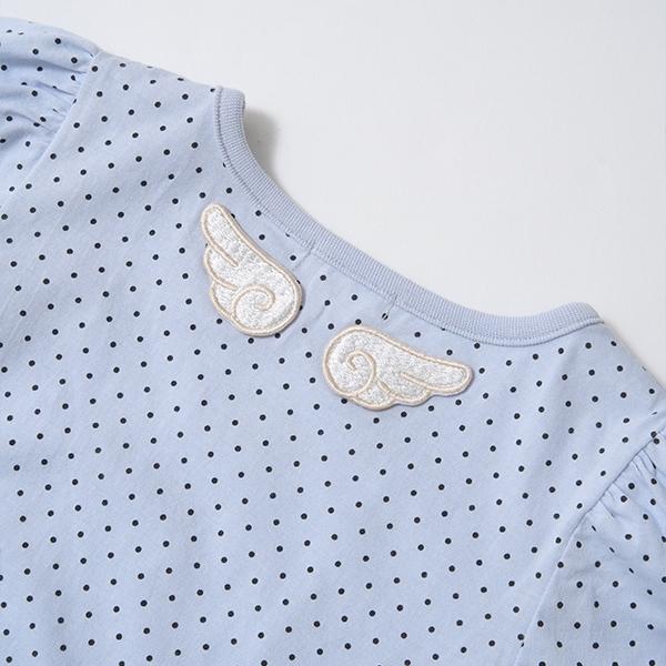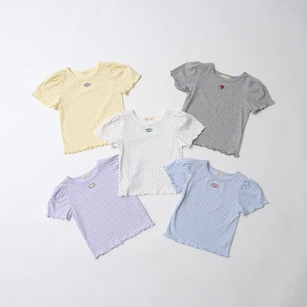 【軟棉】波點印花迷你泡泡袖短袖T恤