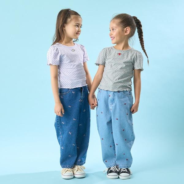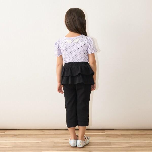 正面繡有帶翅膀的心形圖案,背面飾有羽毛徽章,給人一種可愛的背影風格。