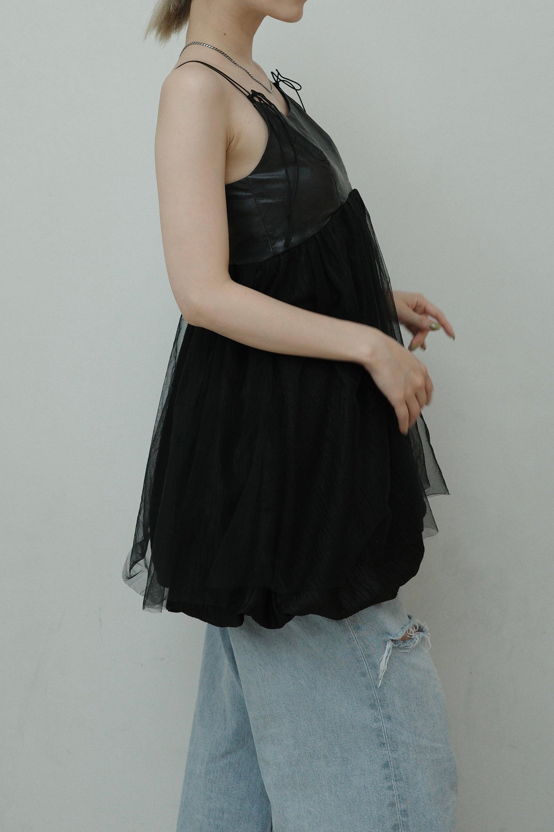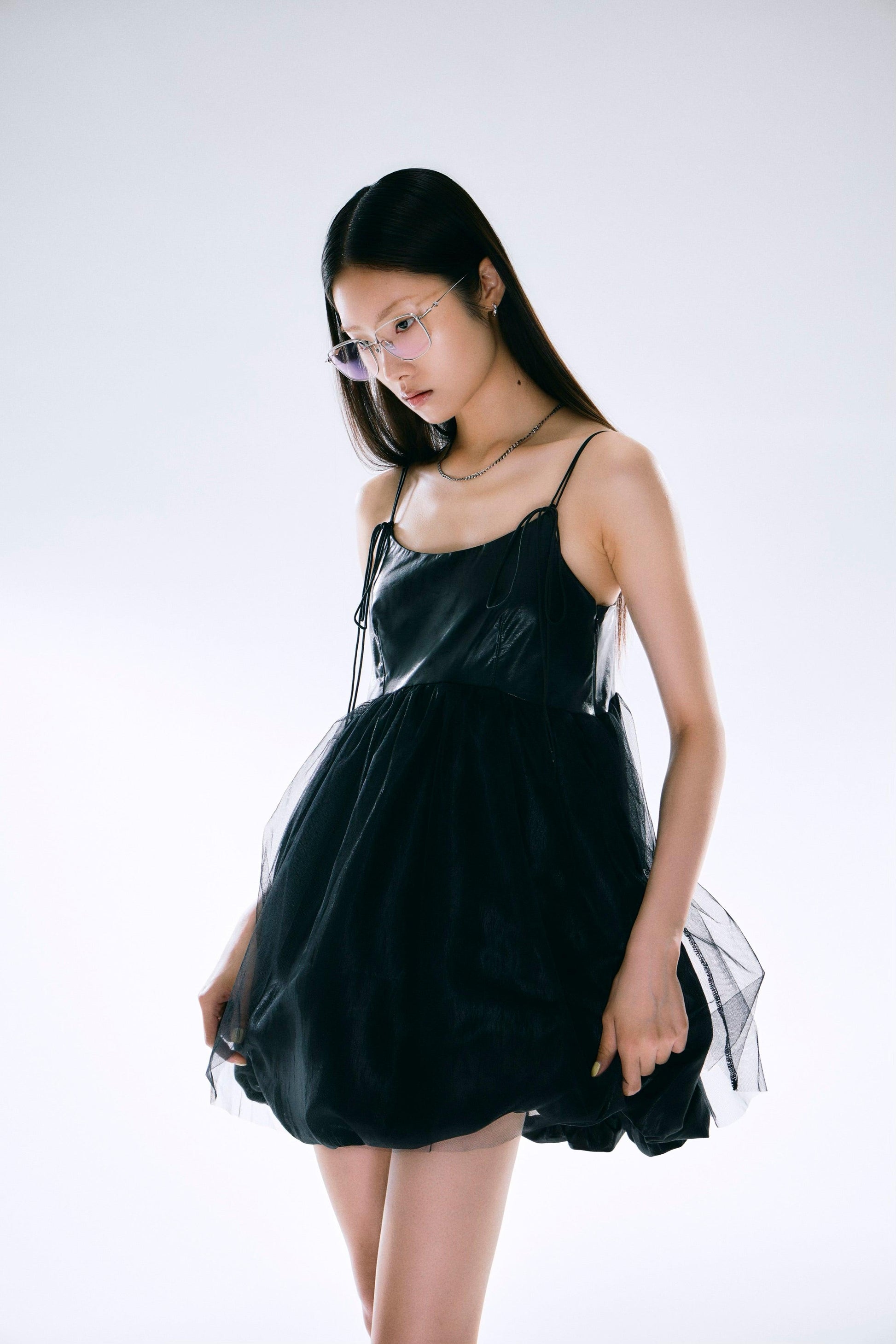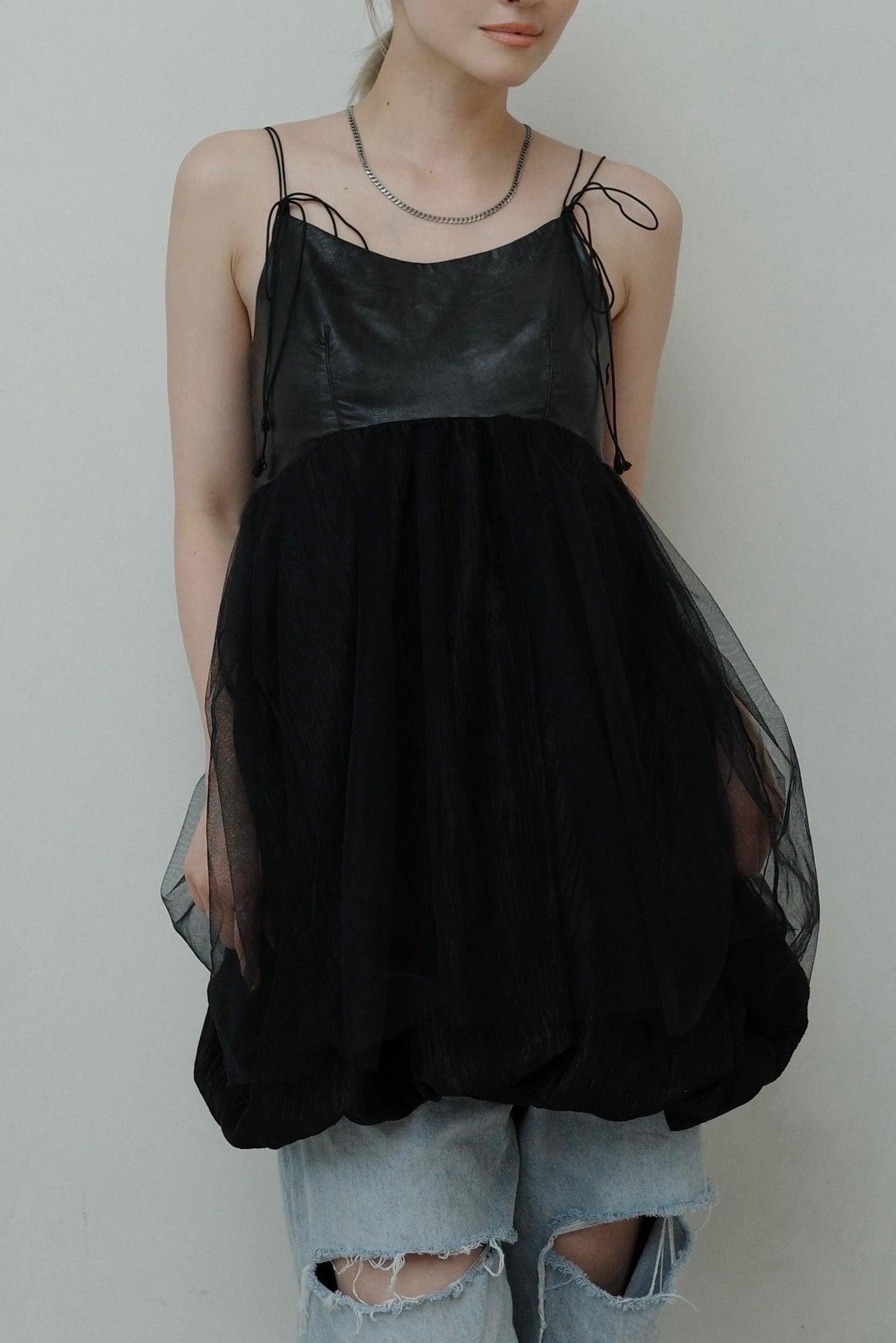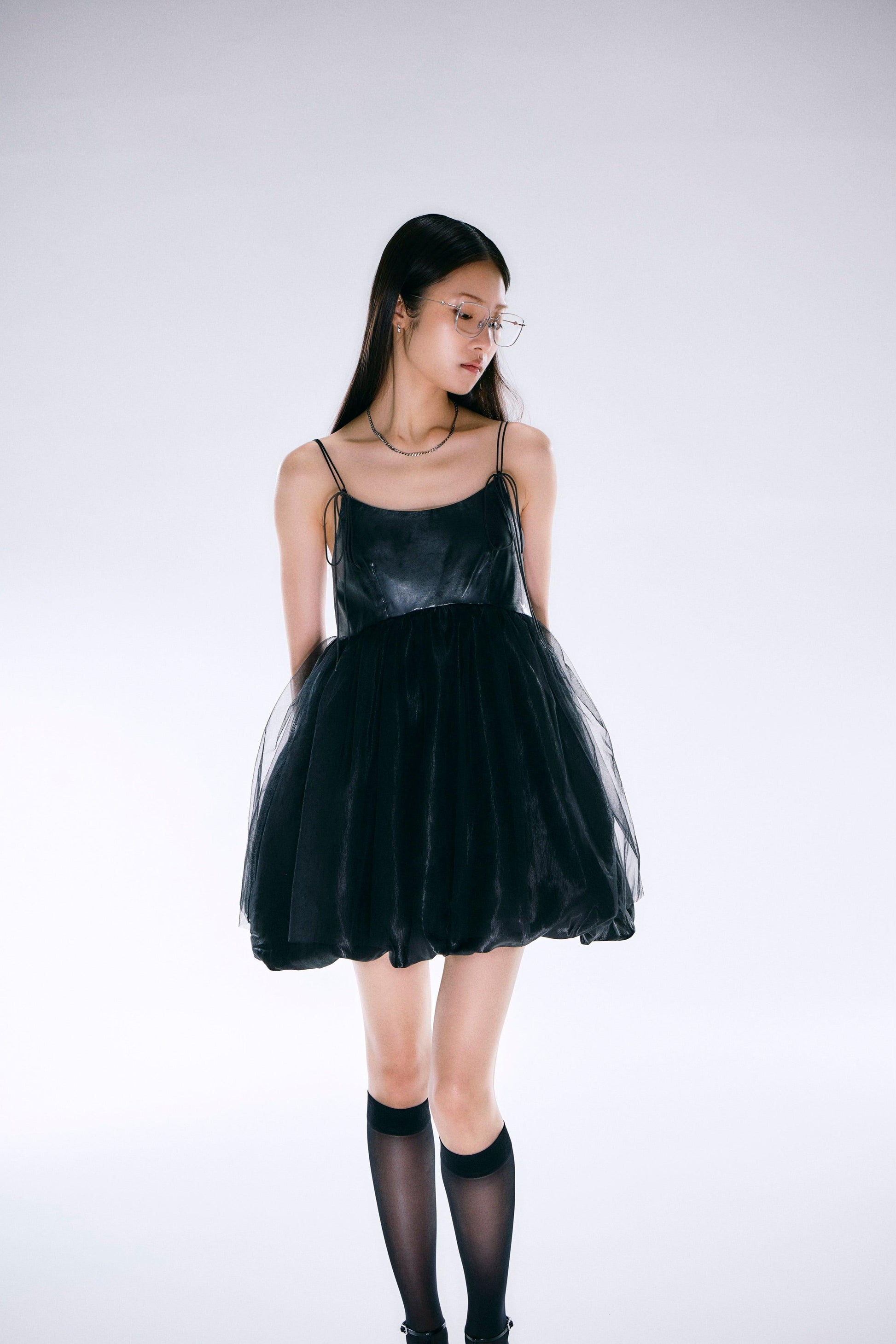 精緻的薄紗留下了女性化的餘韻,而胸前的皮革則增加了設計的深度,吸引了人們的目光。