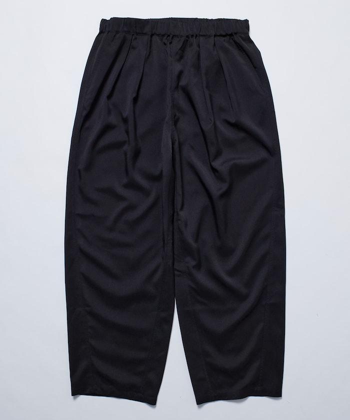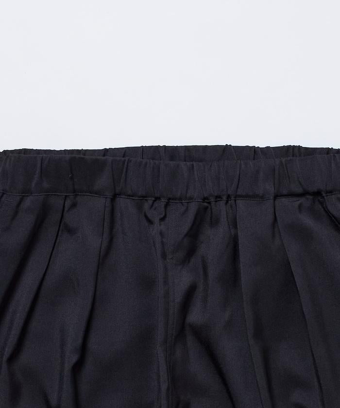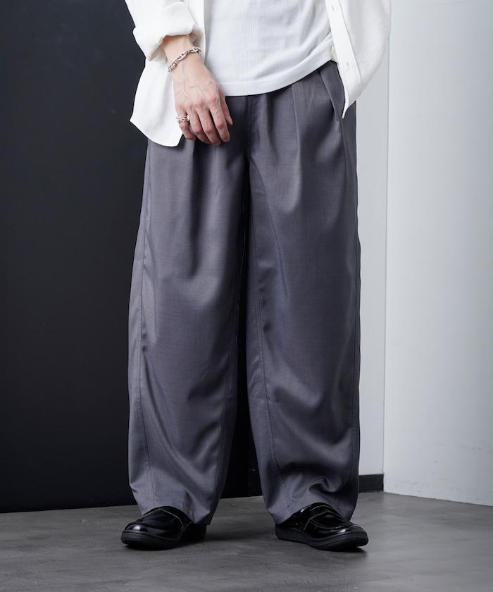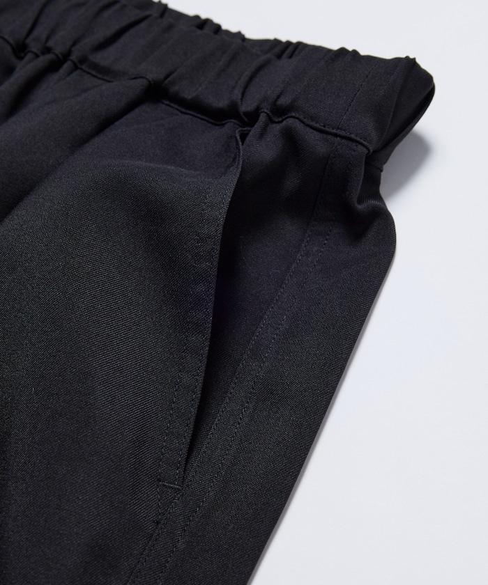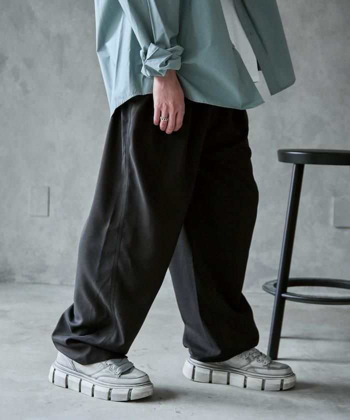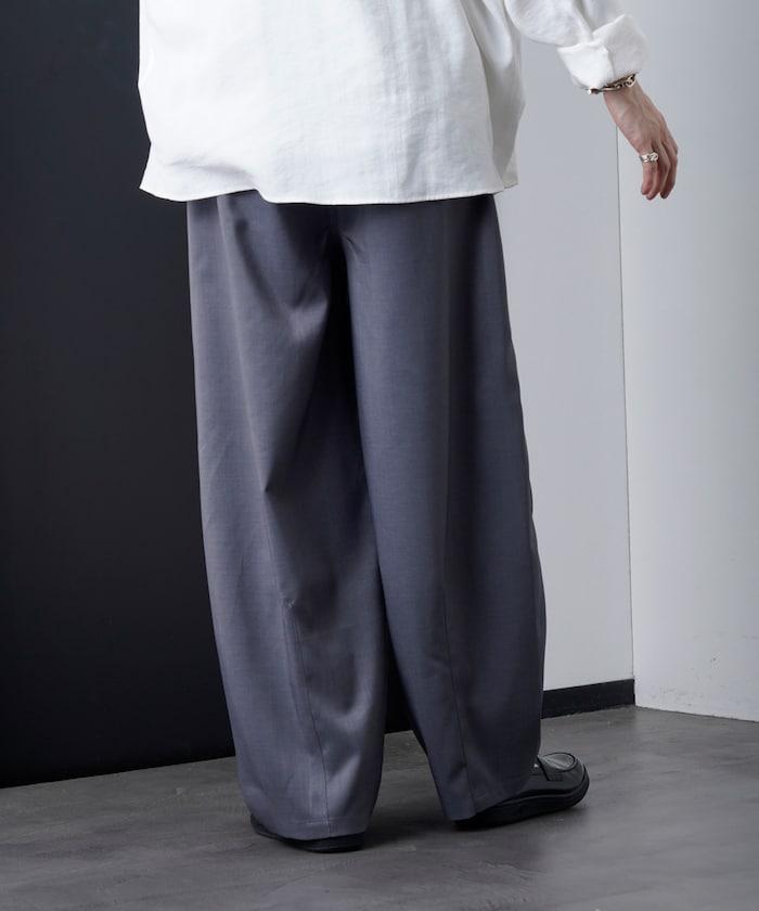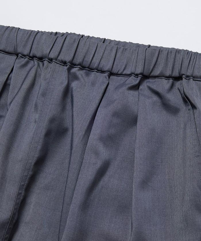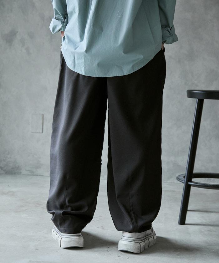 雙襉廓形從腰部開始延伸,向下擺微微收攏,呈桶狀廓形。