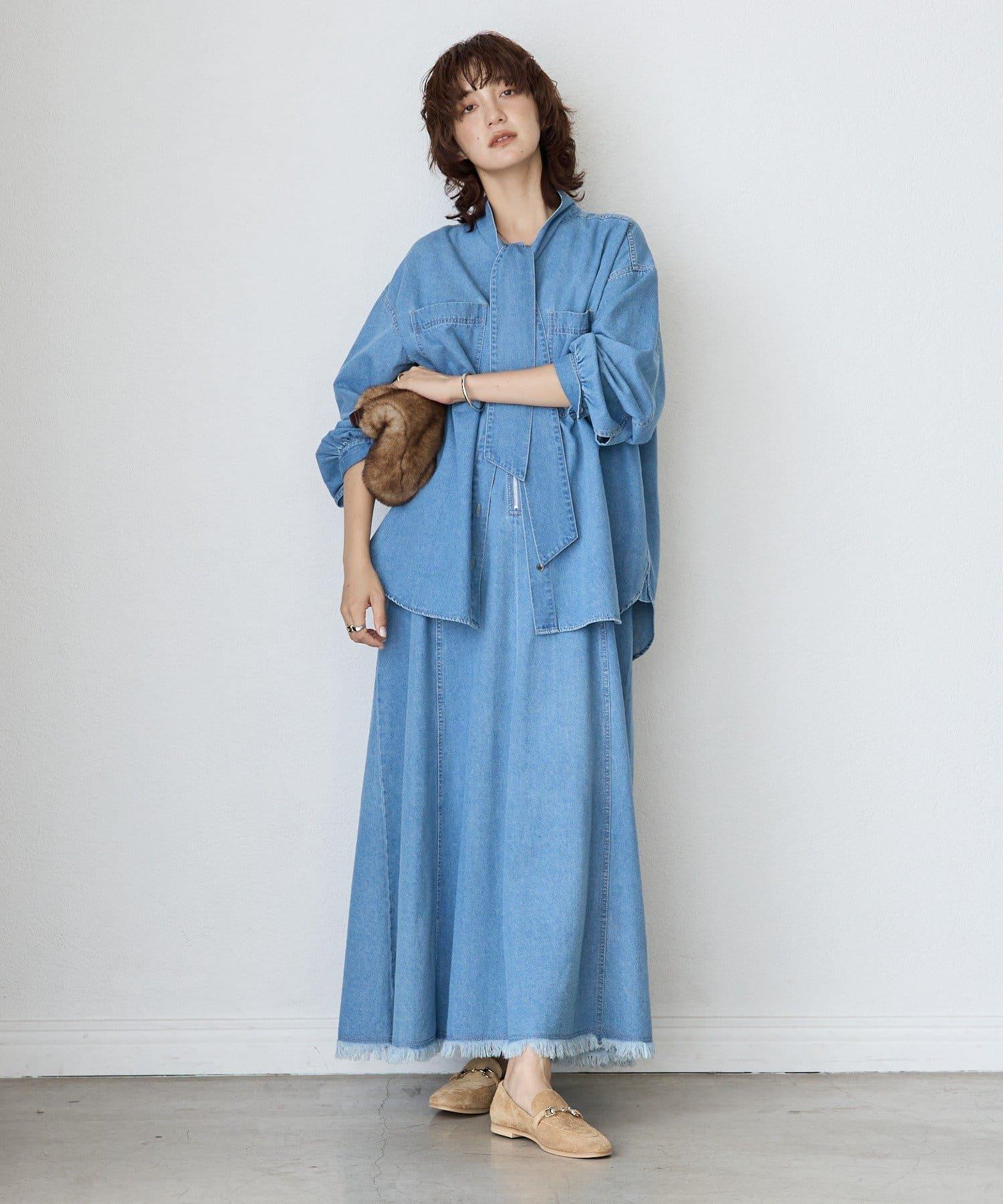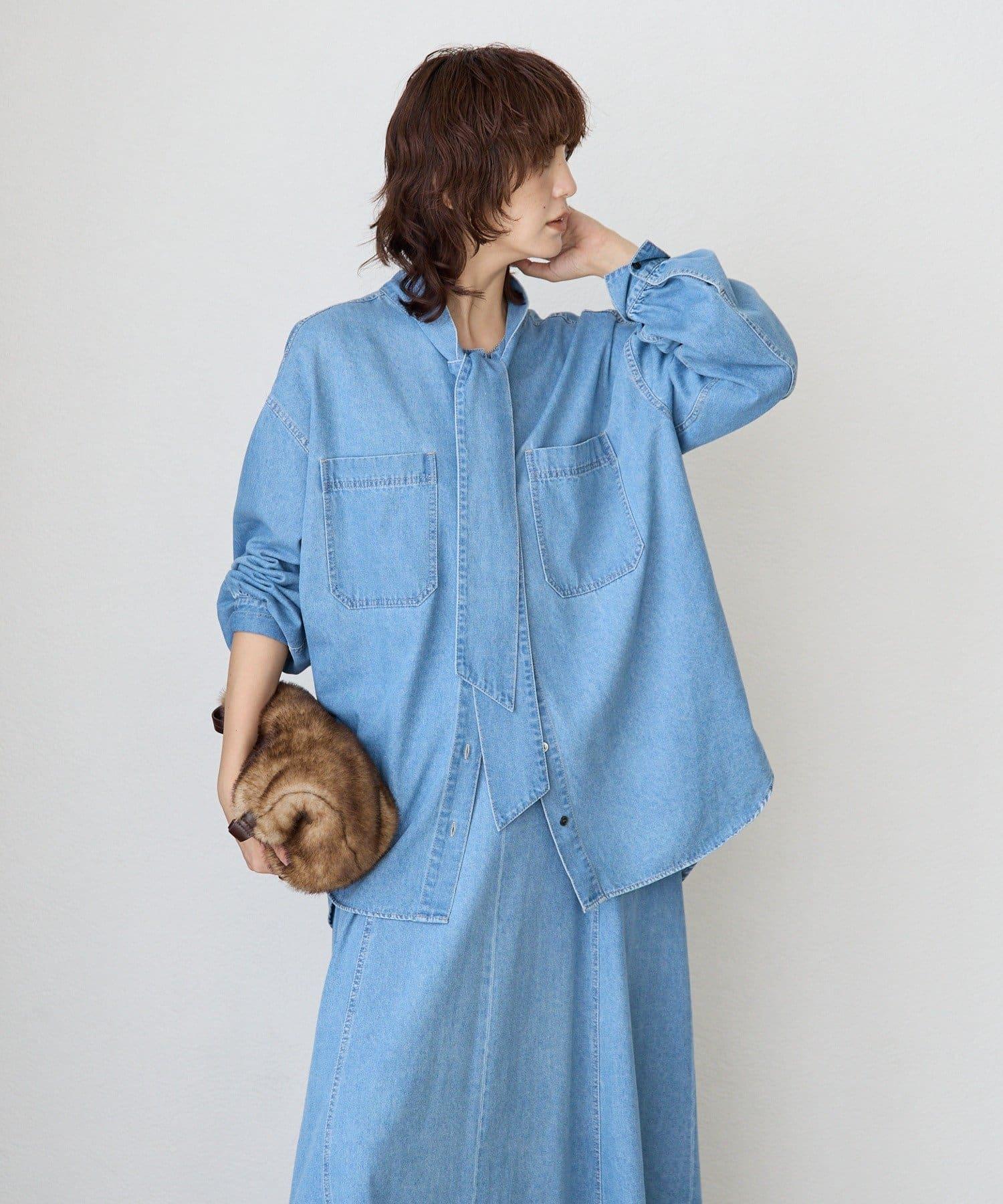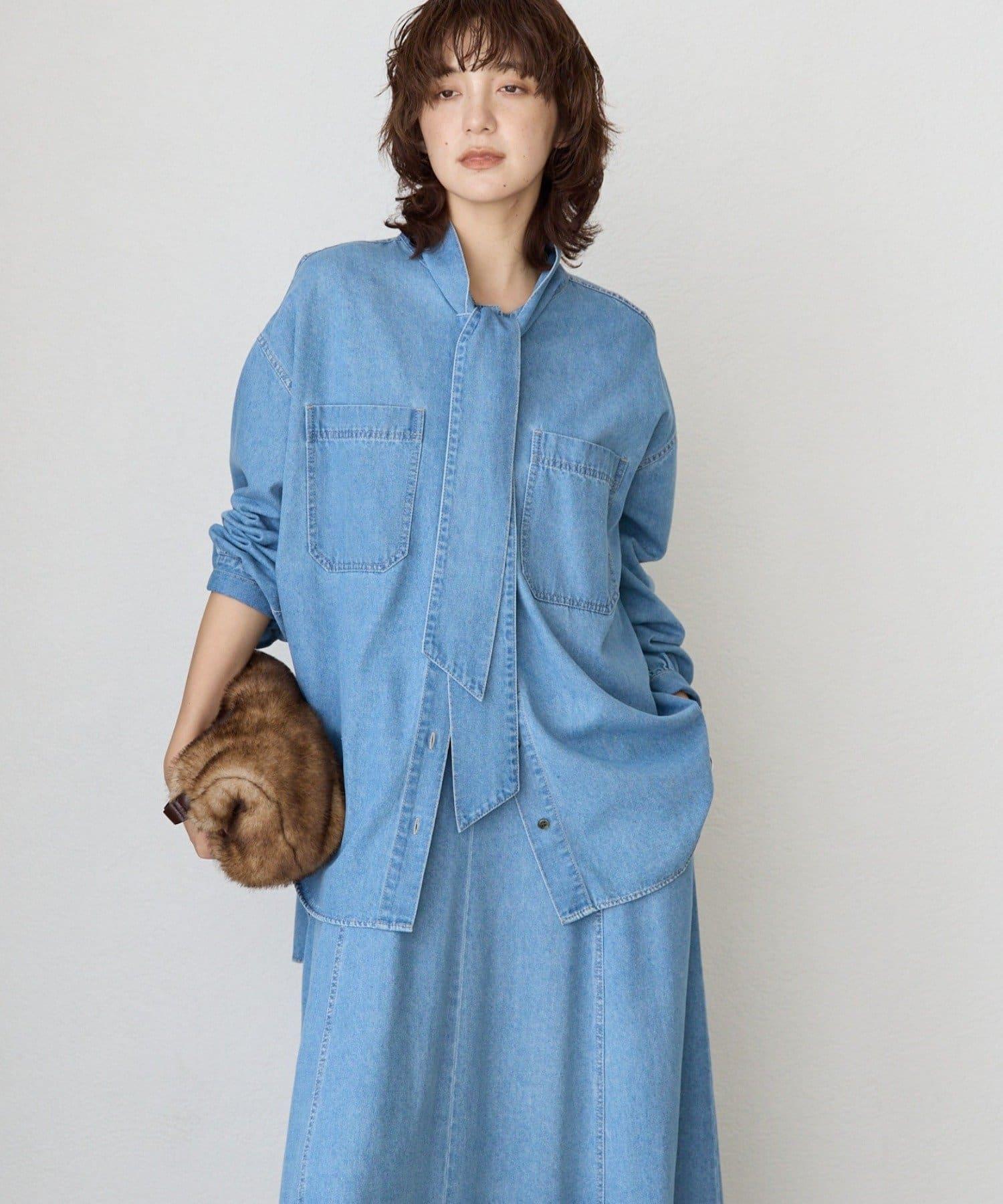 牛仔襯衫將蝴蝶結領帶和褶皺等女性化細節與牛仔襯衫的粗獷風格完美結合,給人耳目一新的感覺。