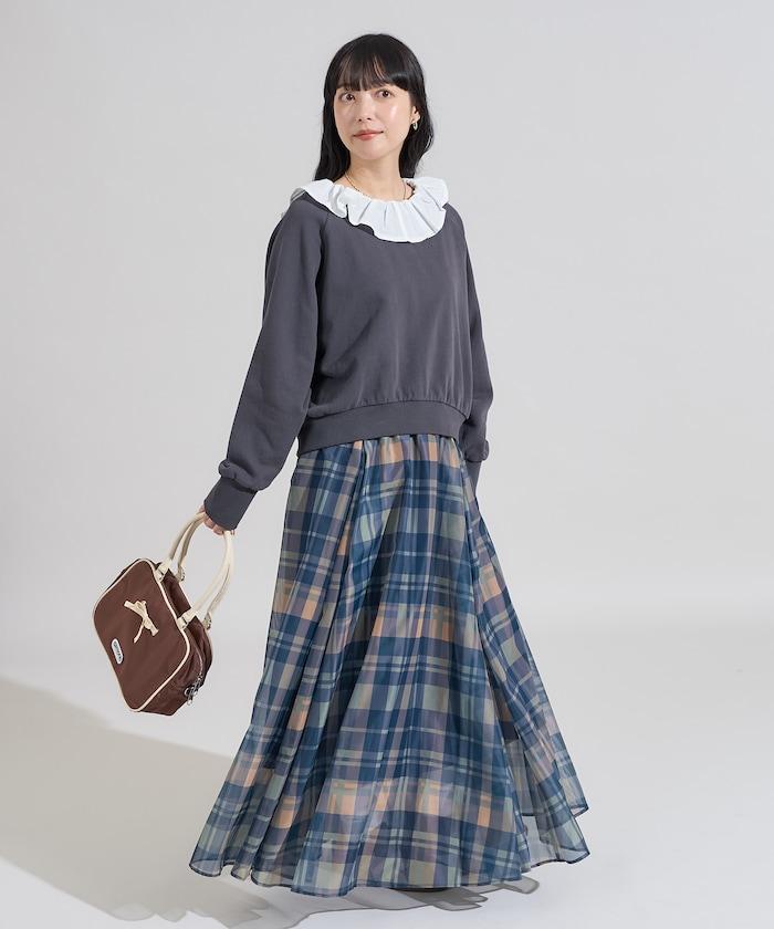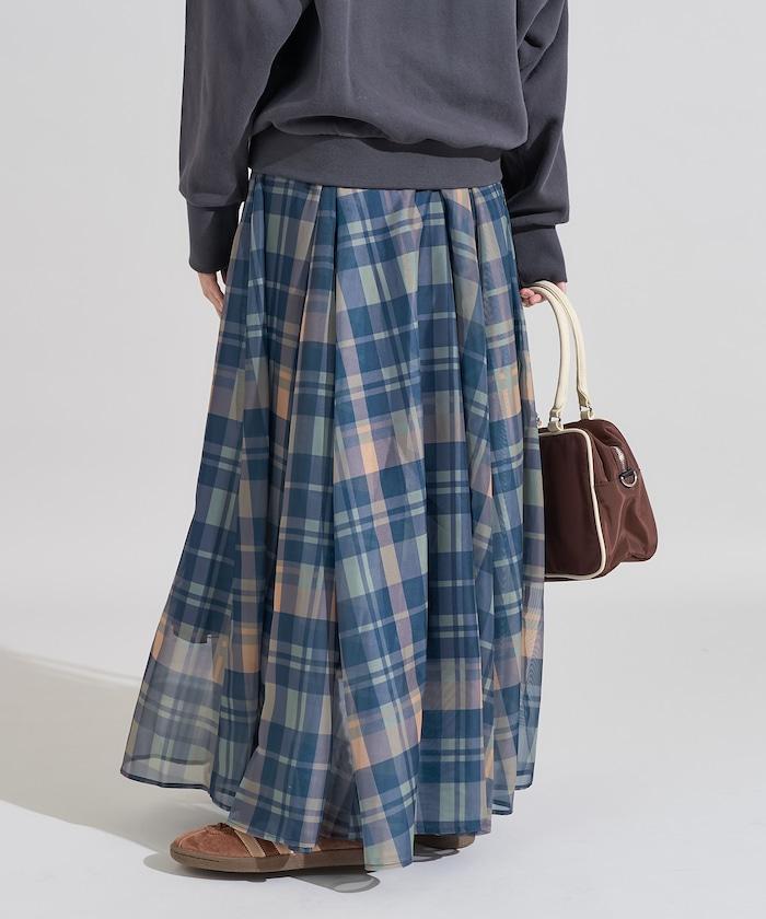 輕盈的格紋裙採用透氣的薄紗面料製成。