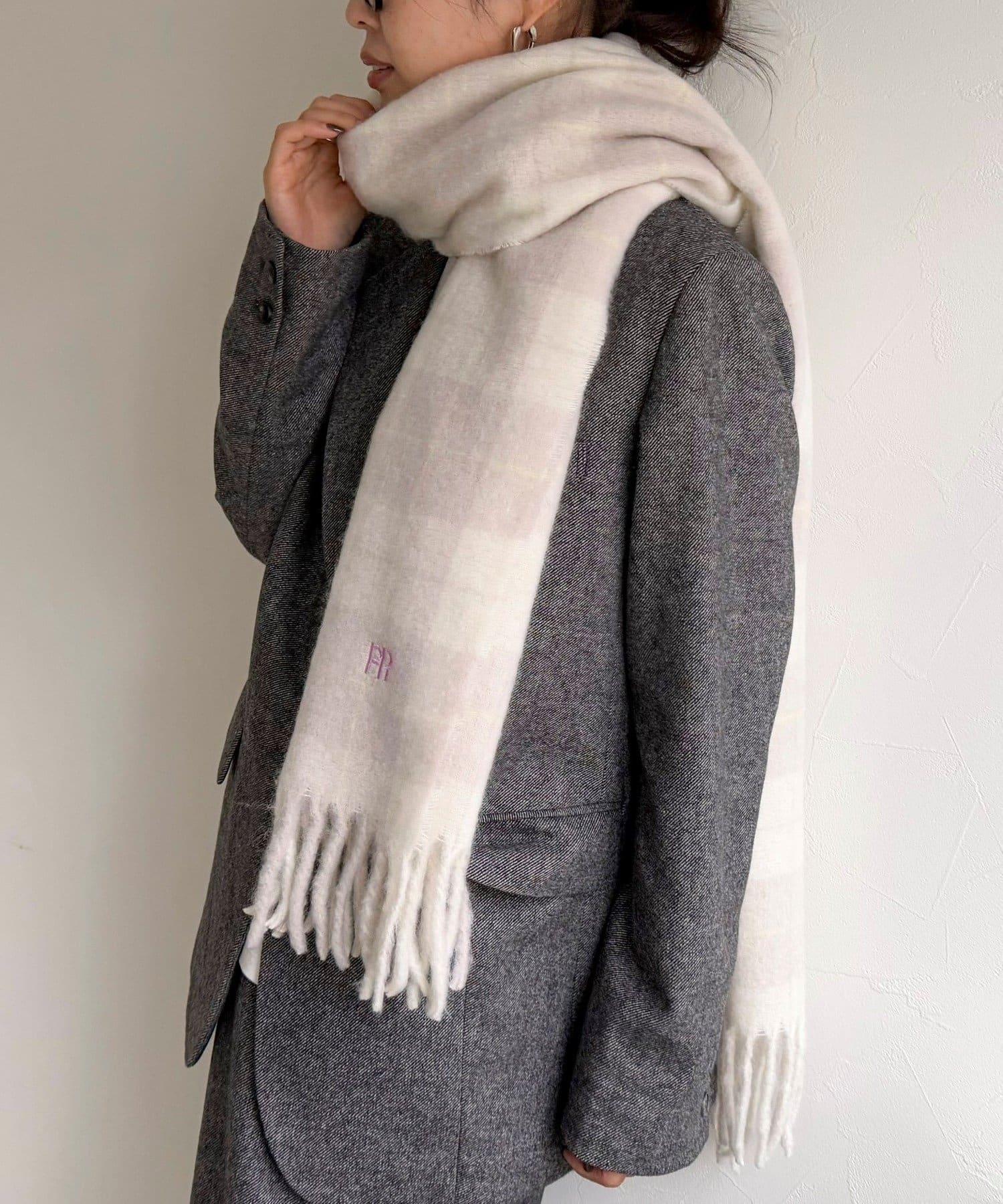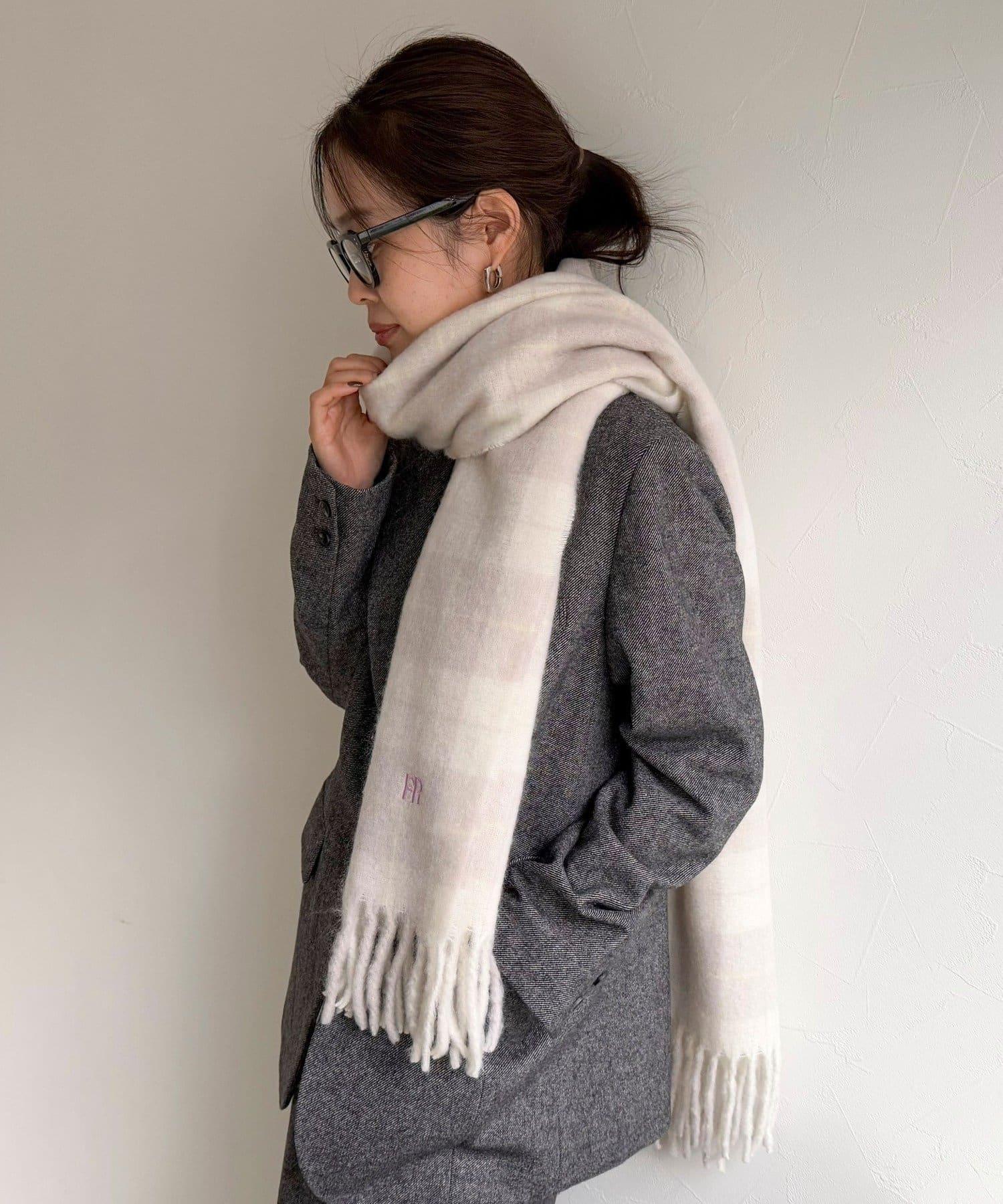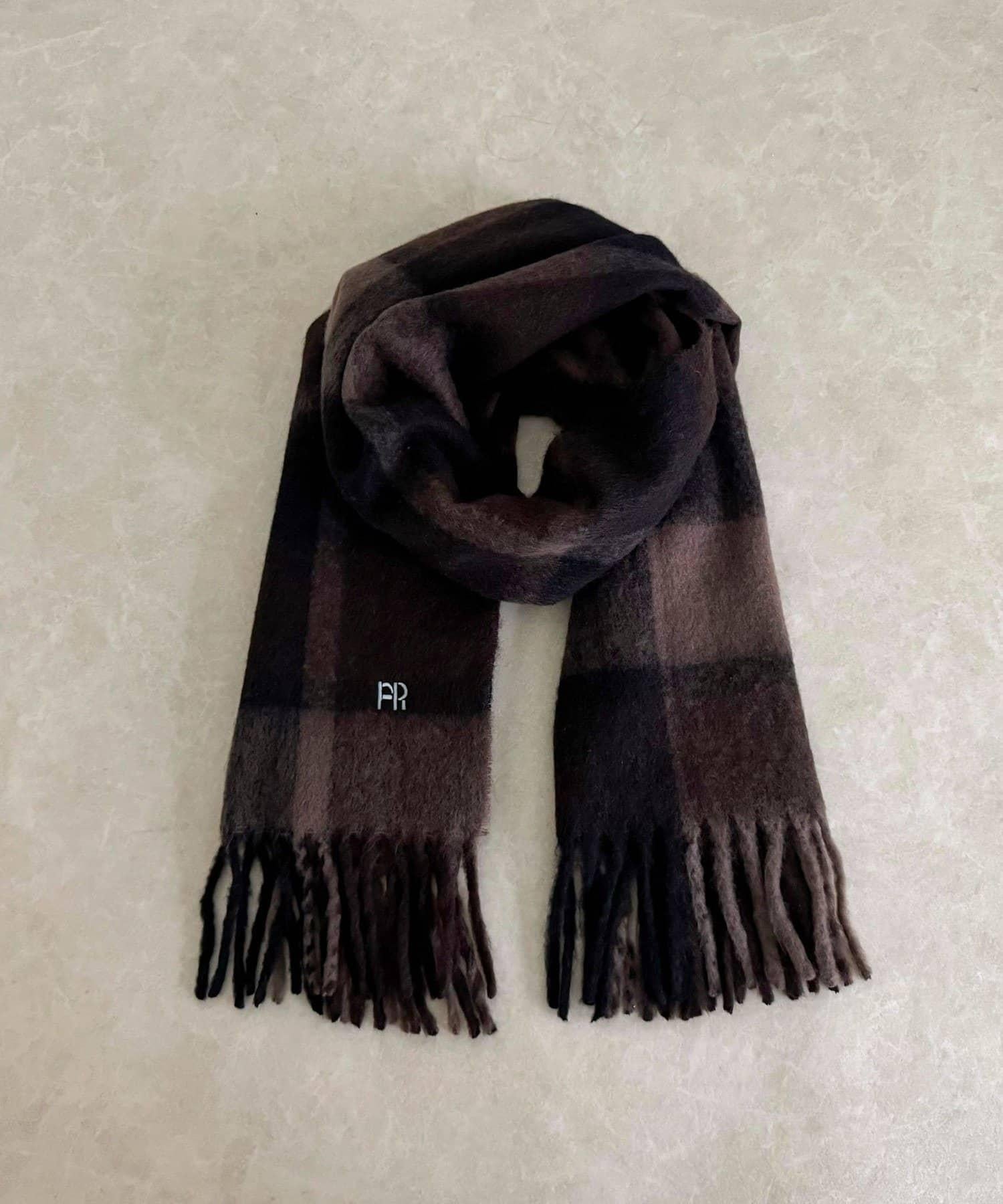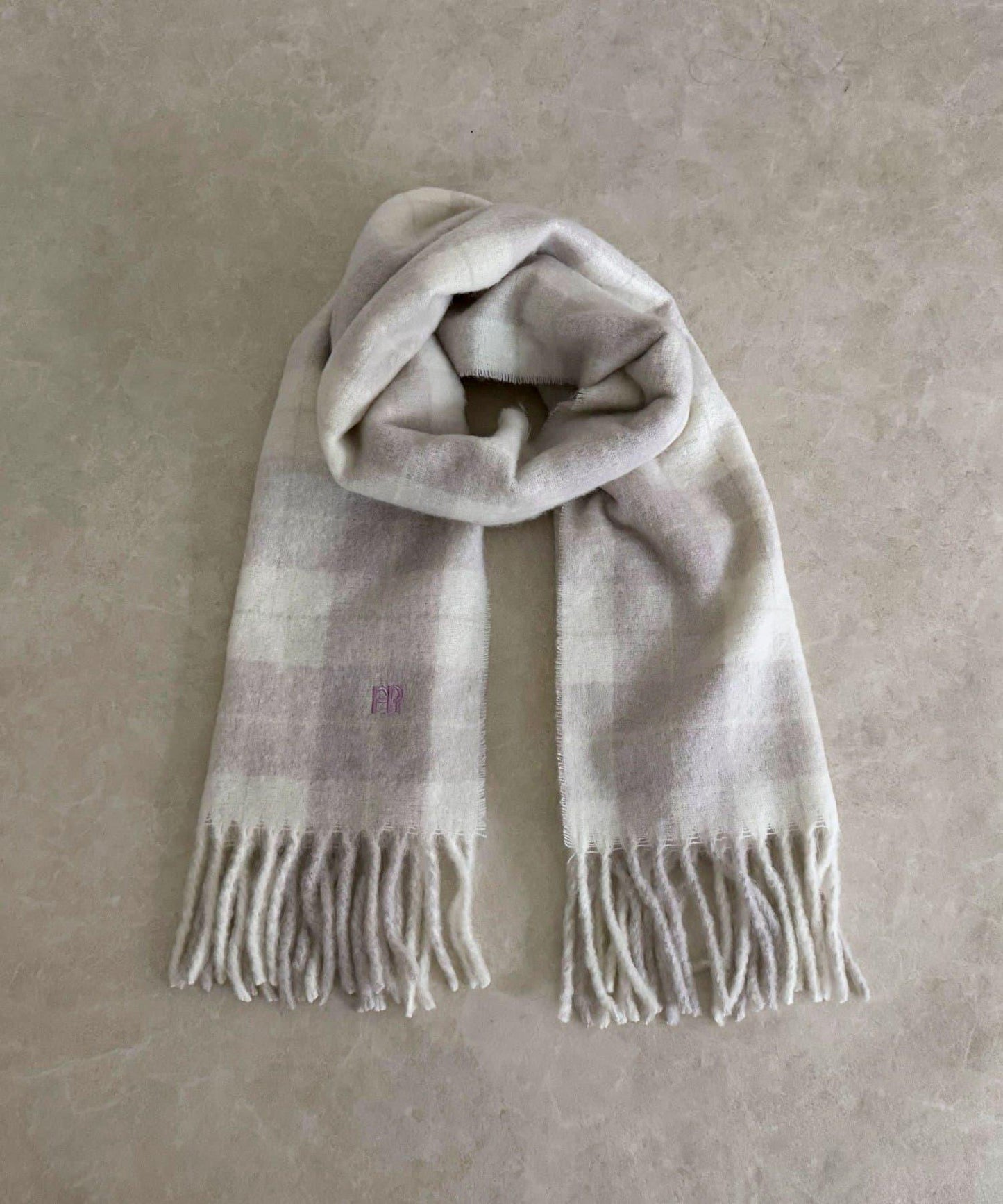 這款棋盤格圍巾採用輕盈柔軟的布克萊面料製成,圍在身上非常舒適。