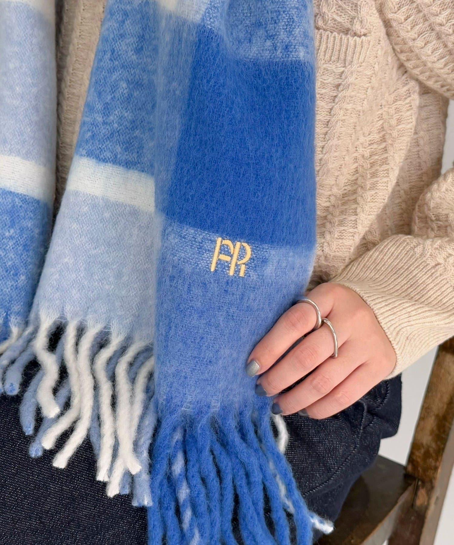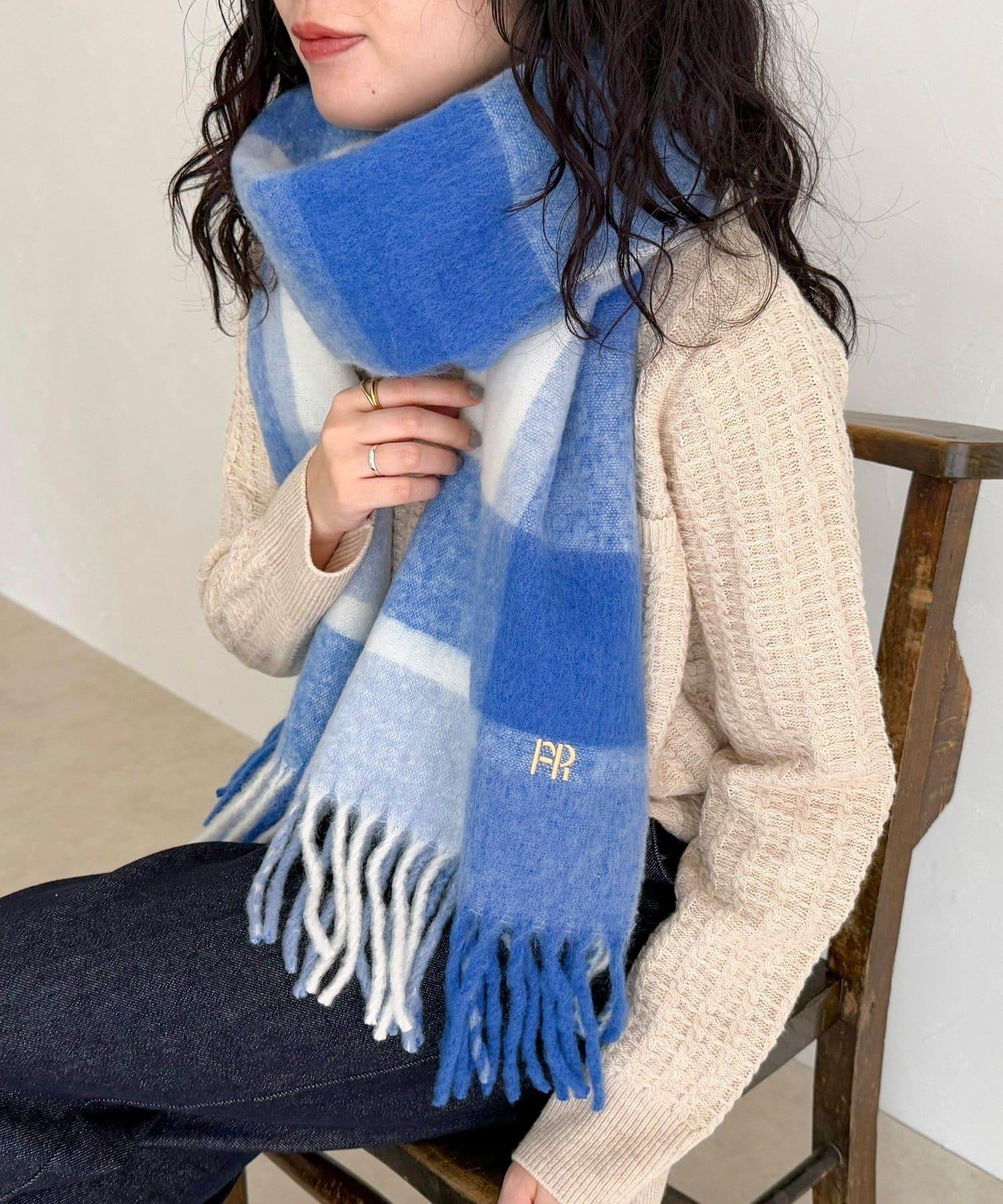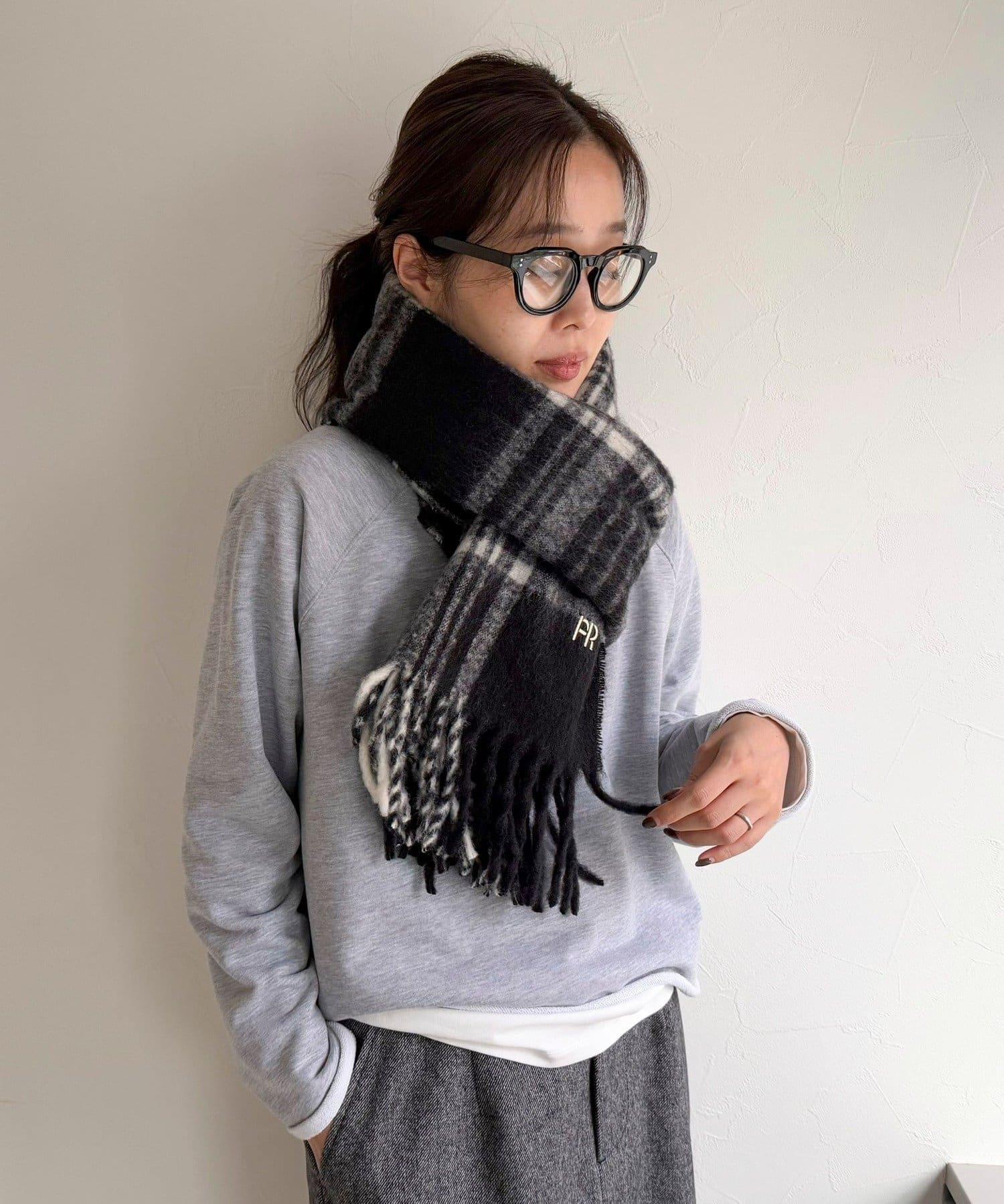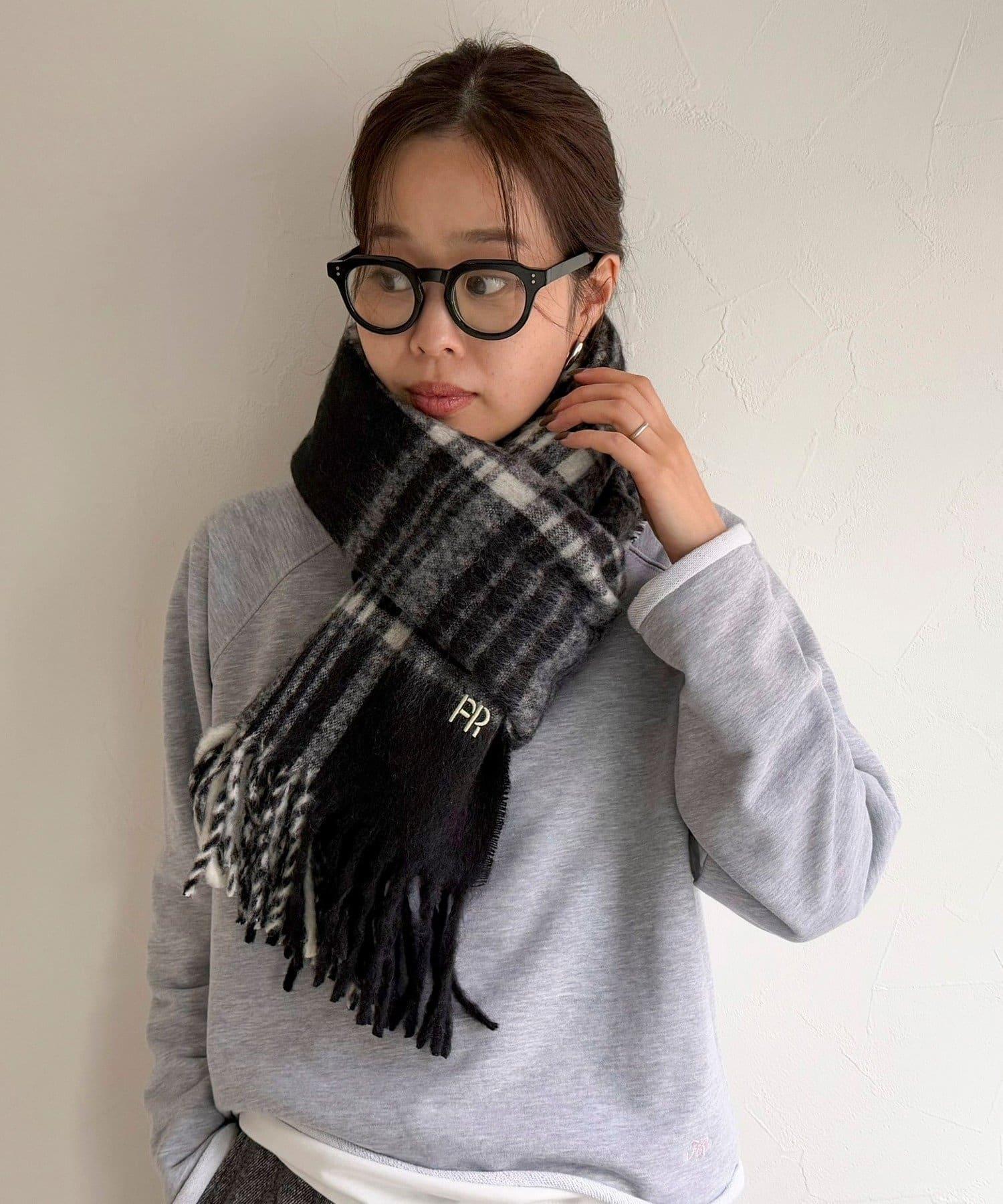 這款棋盤格圍巾採用輕盈柔軟的布克萊面料製成,圍在身上非常舒適。