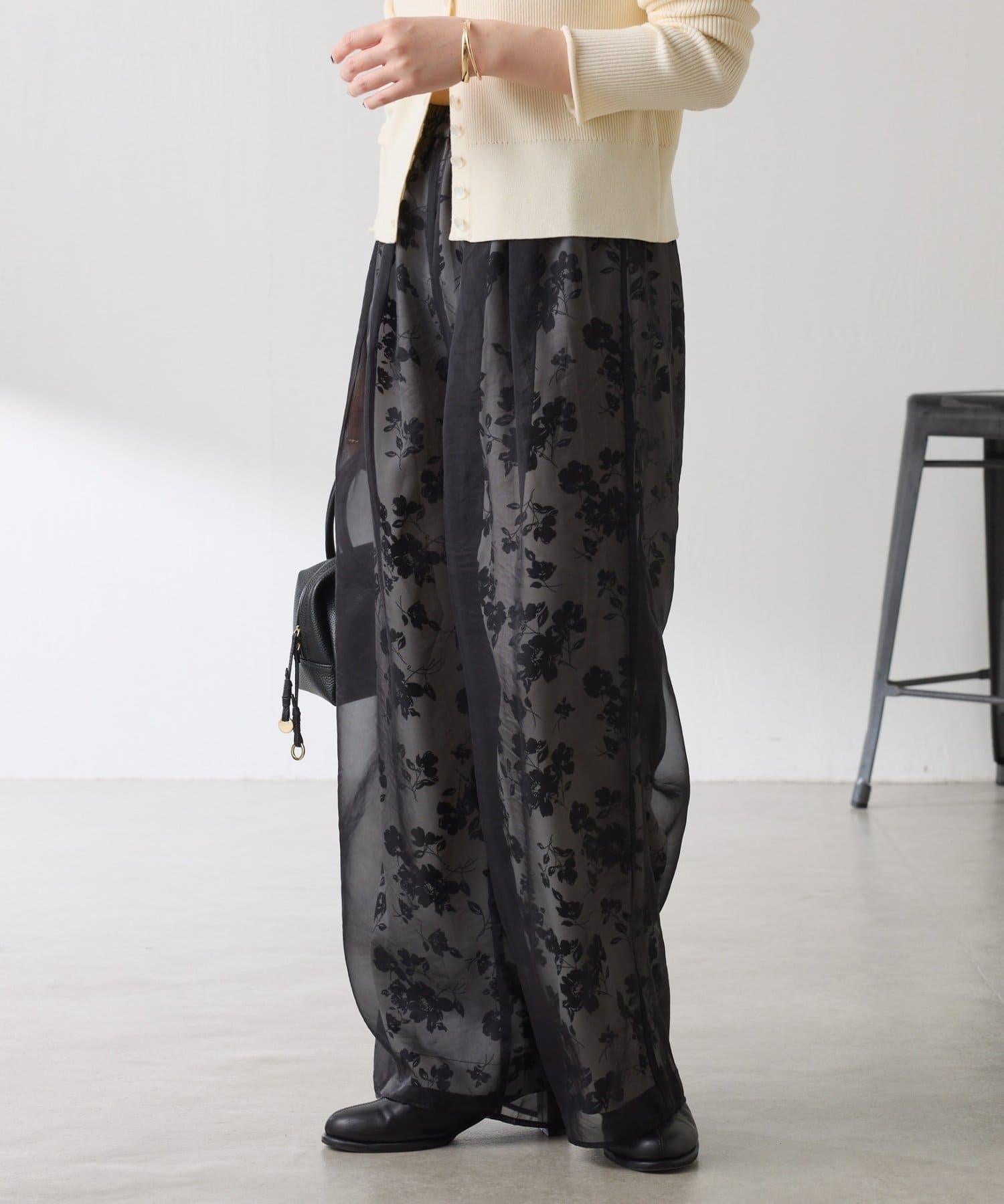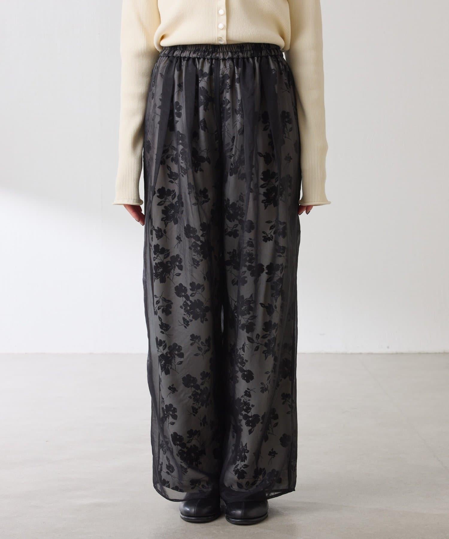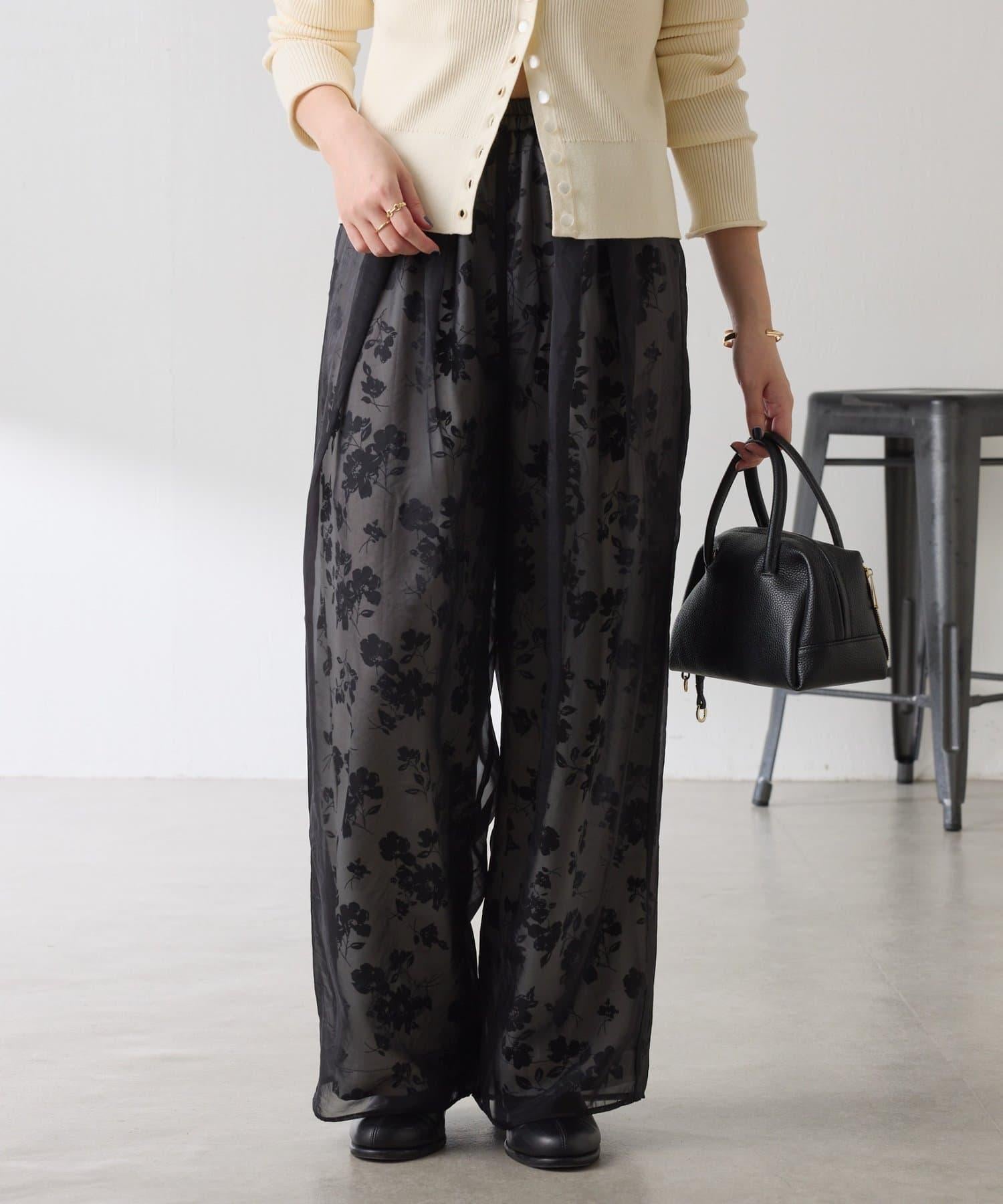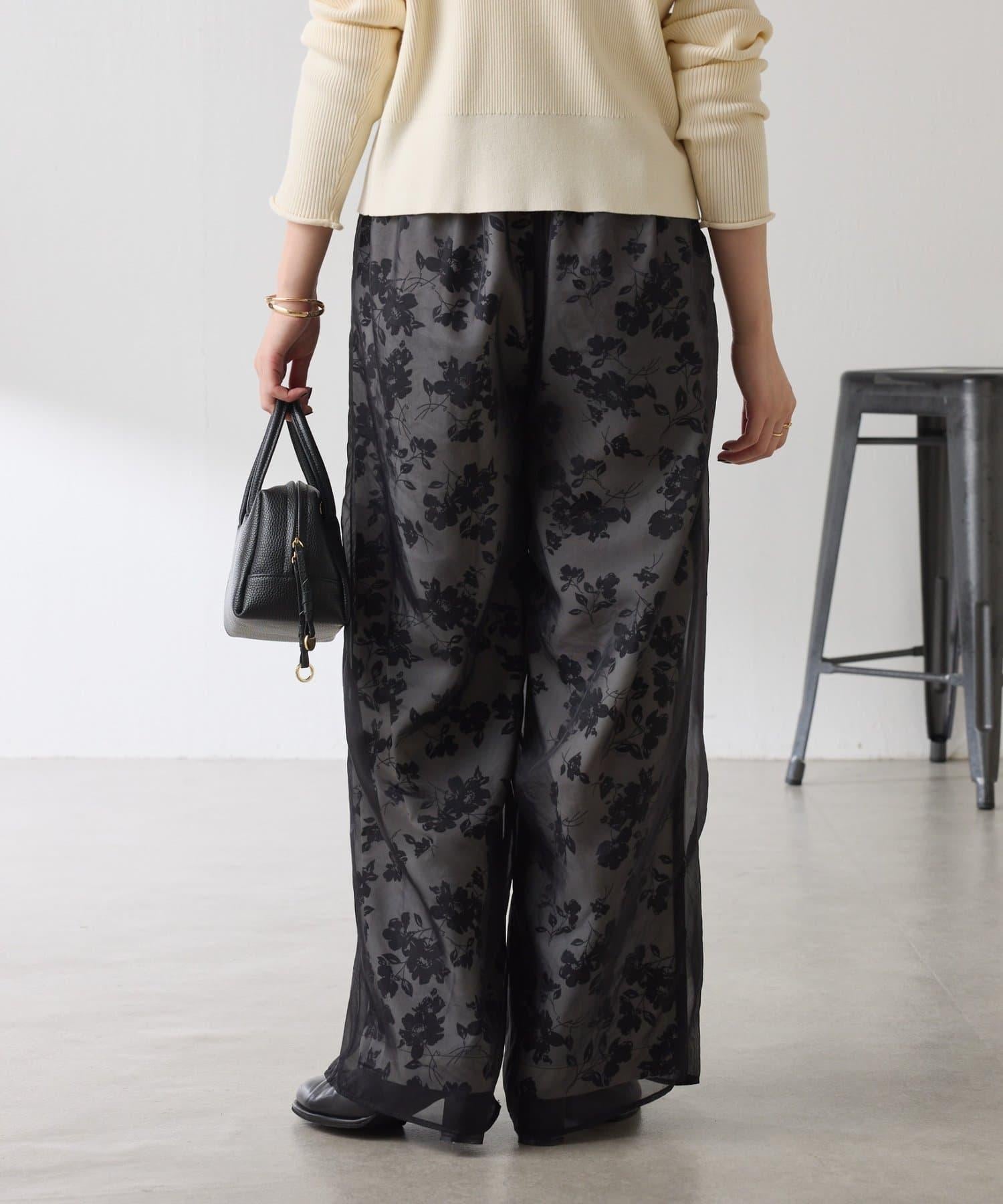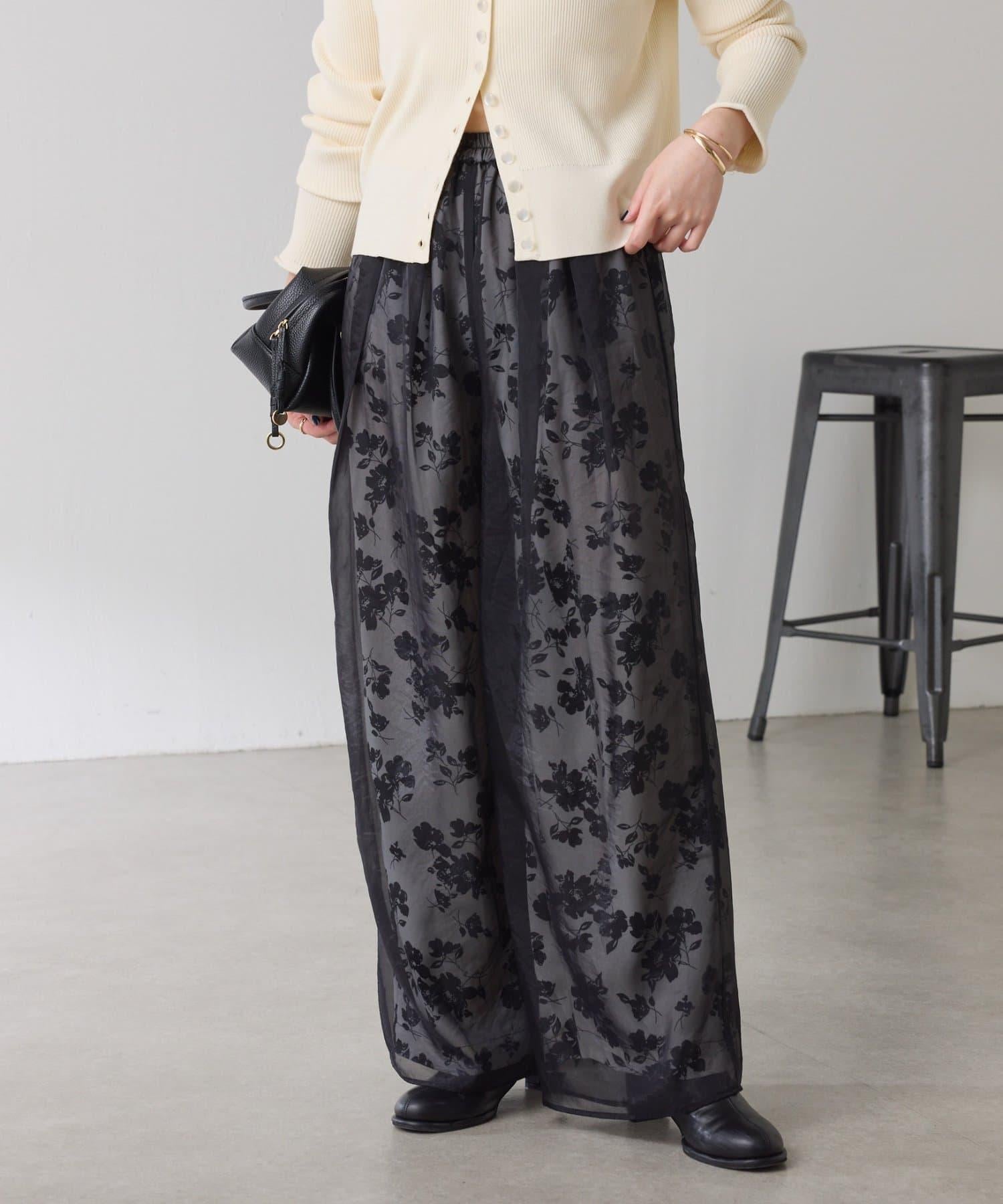 半寬鬆長褲,花朵圖案上有一層薄紗,即使在冬天也能享受薄紗的樂趣。