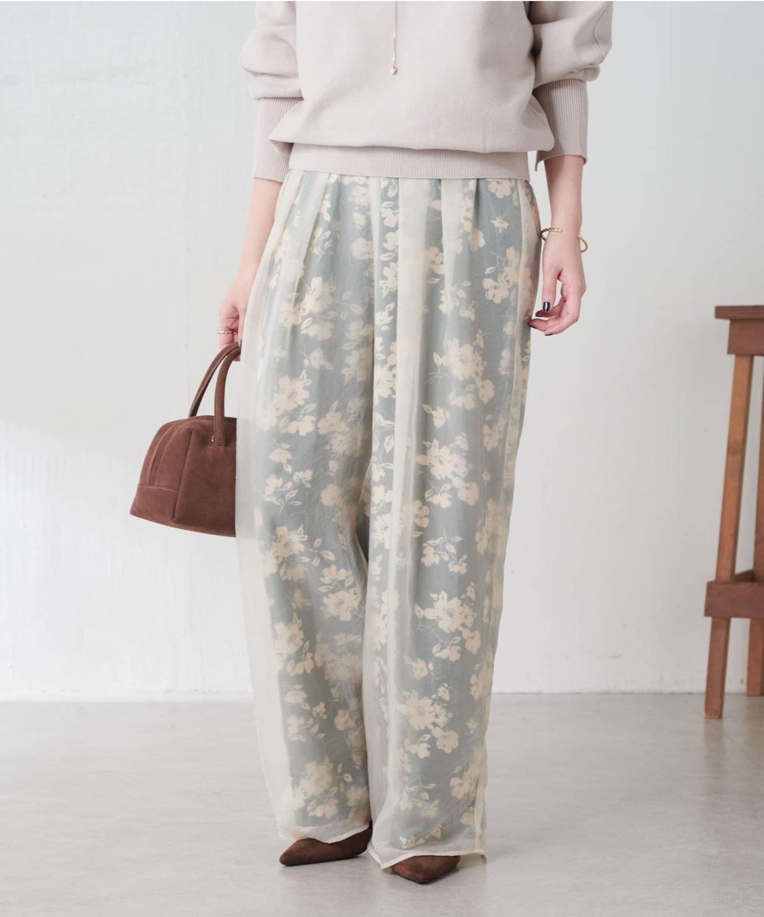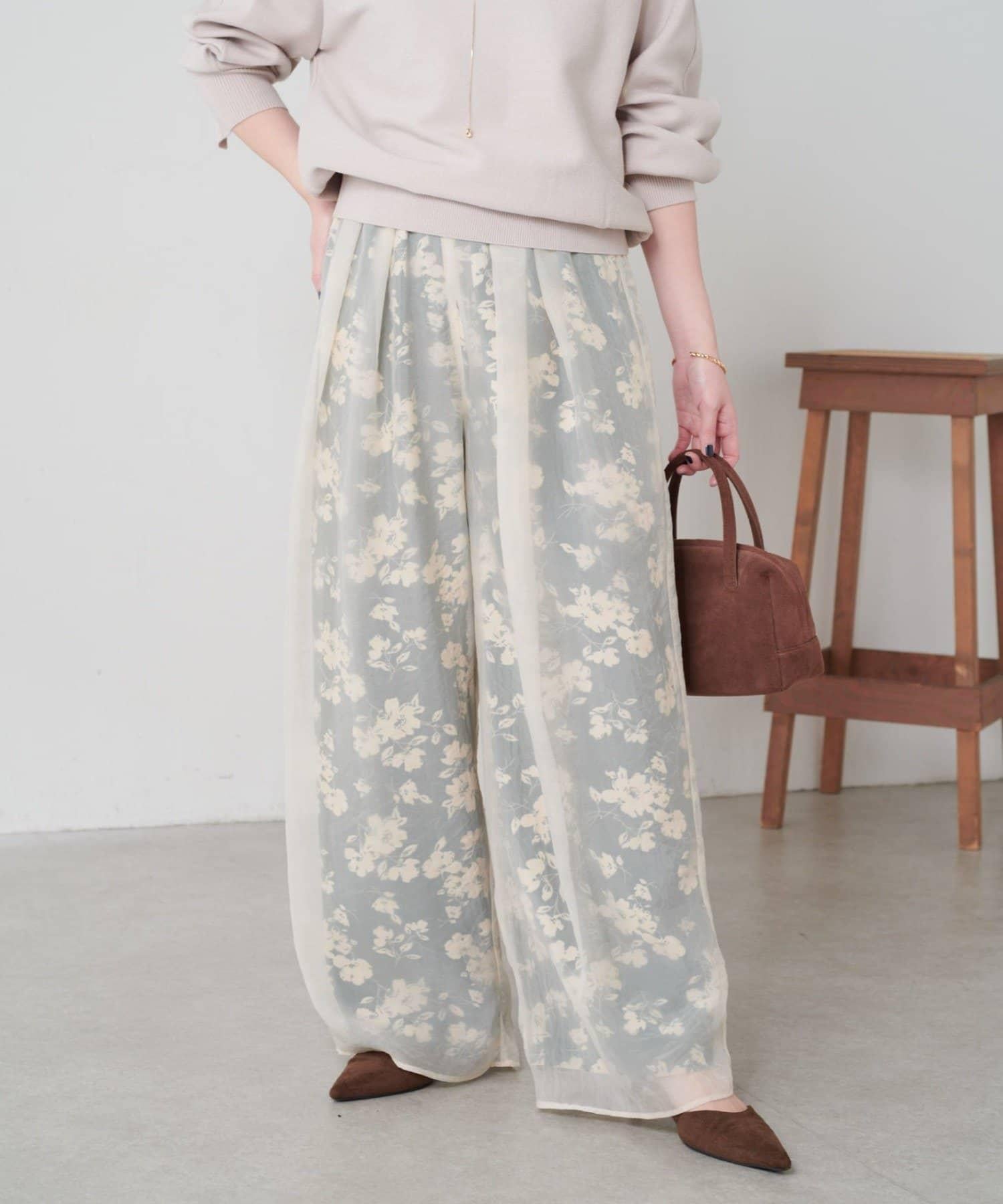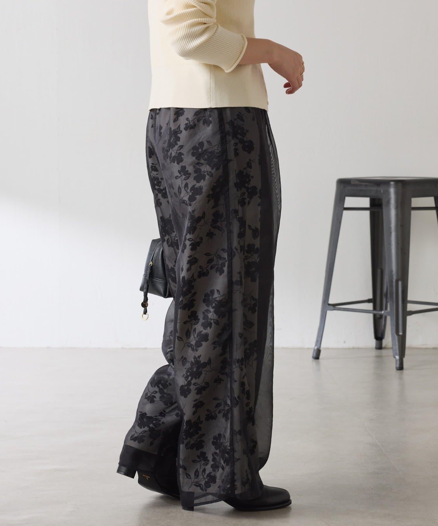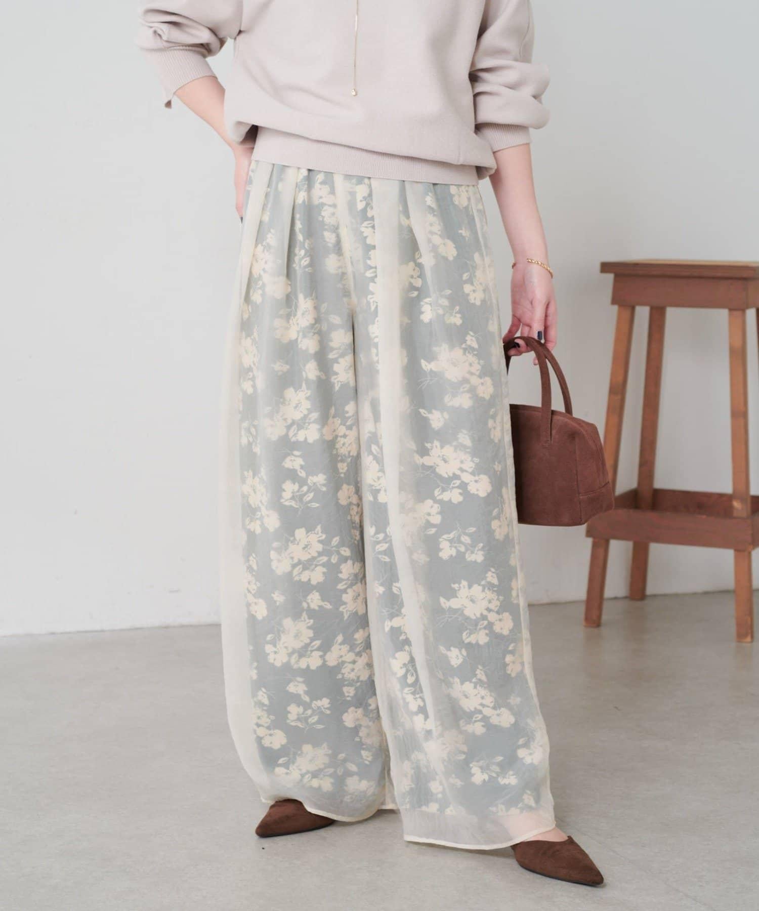半寬鬆長褲,花朵圖案上有一層薄紗,即使在冬天也能享受薄紗的樂趣。