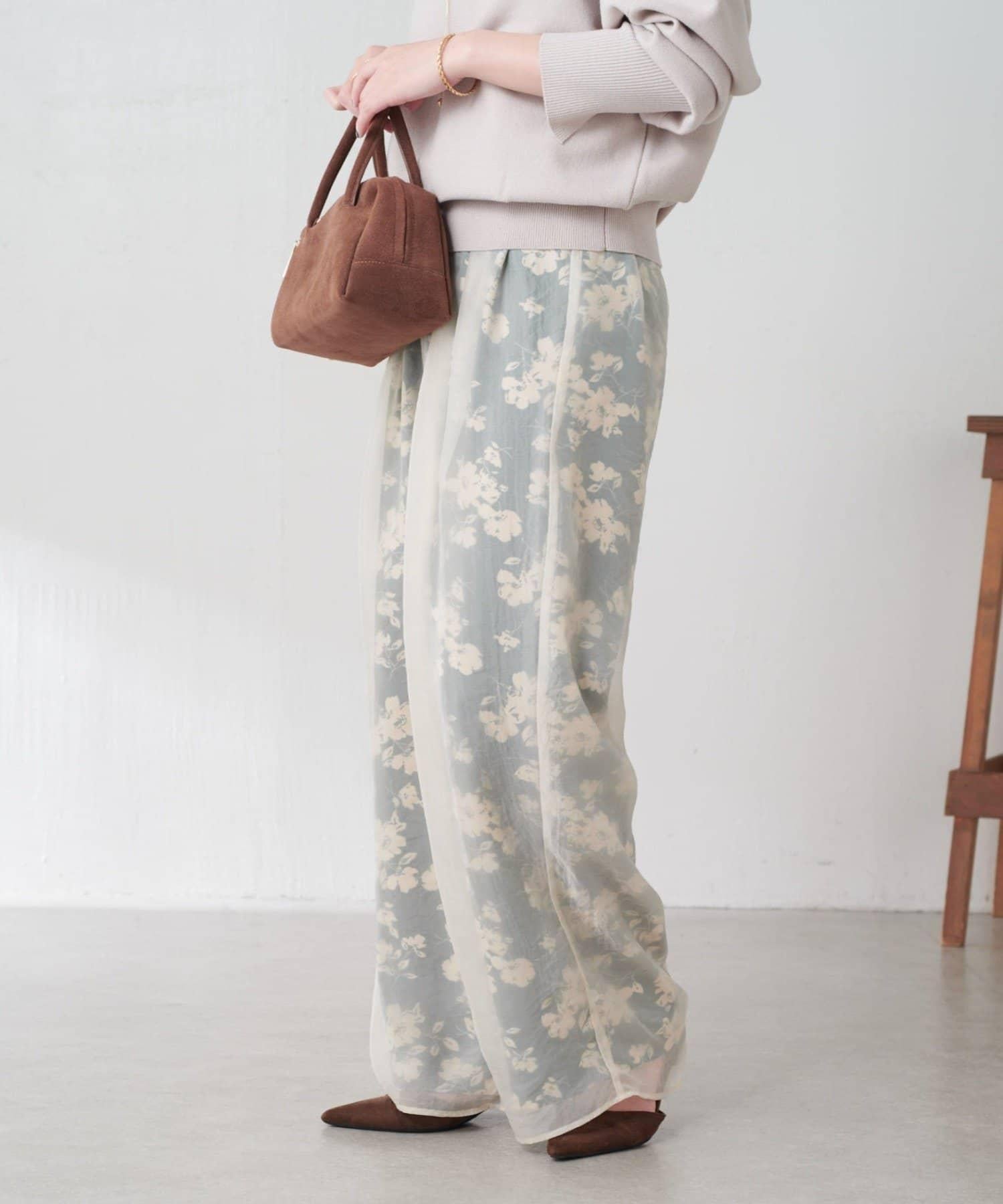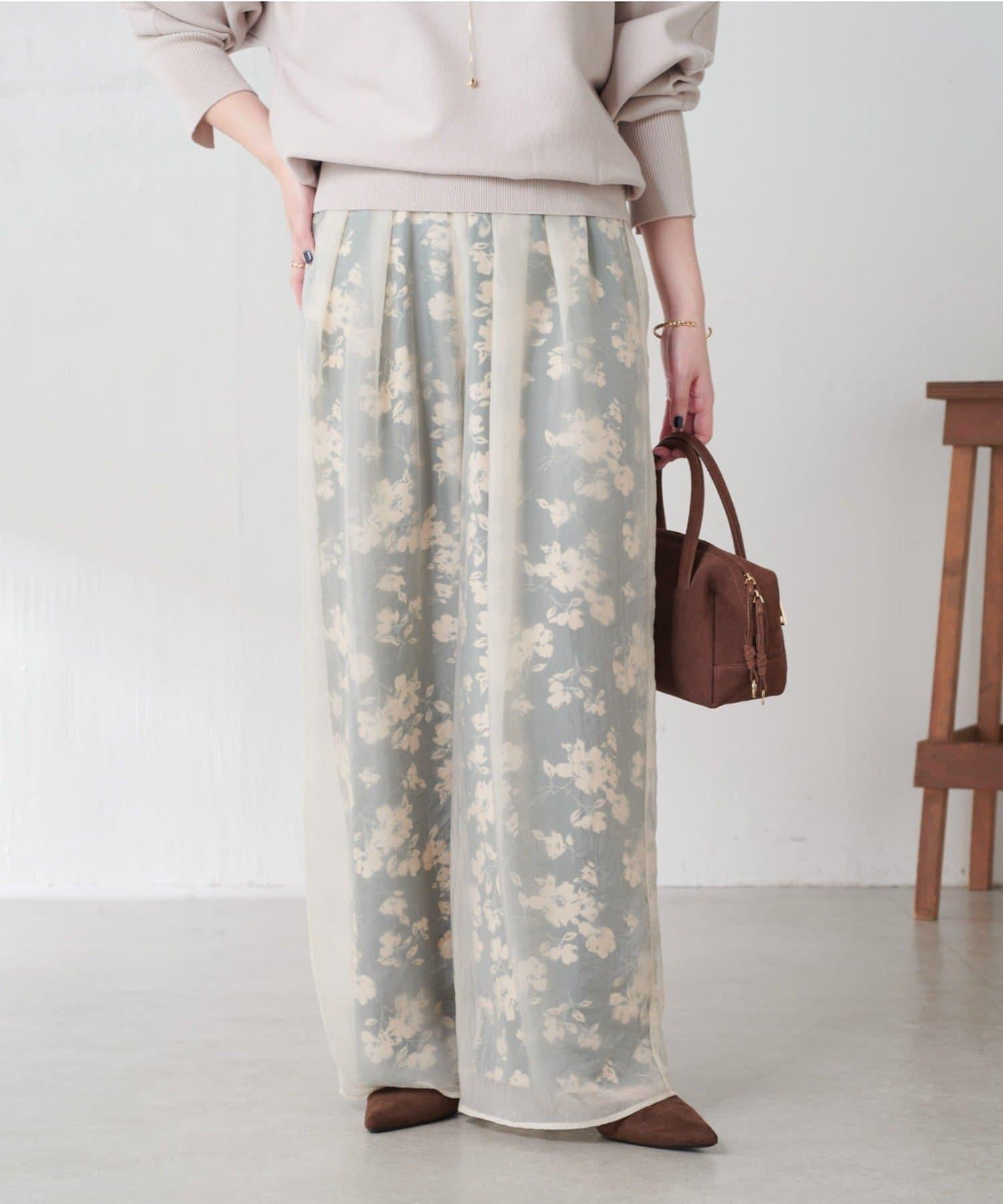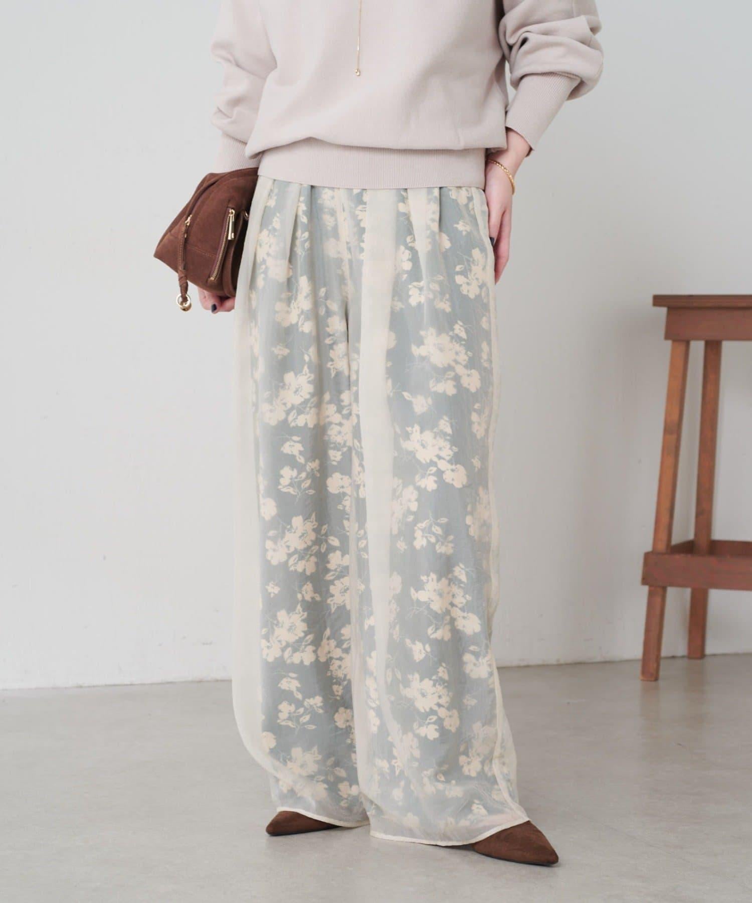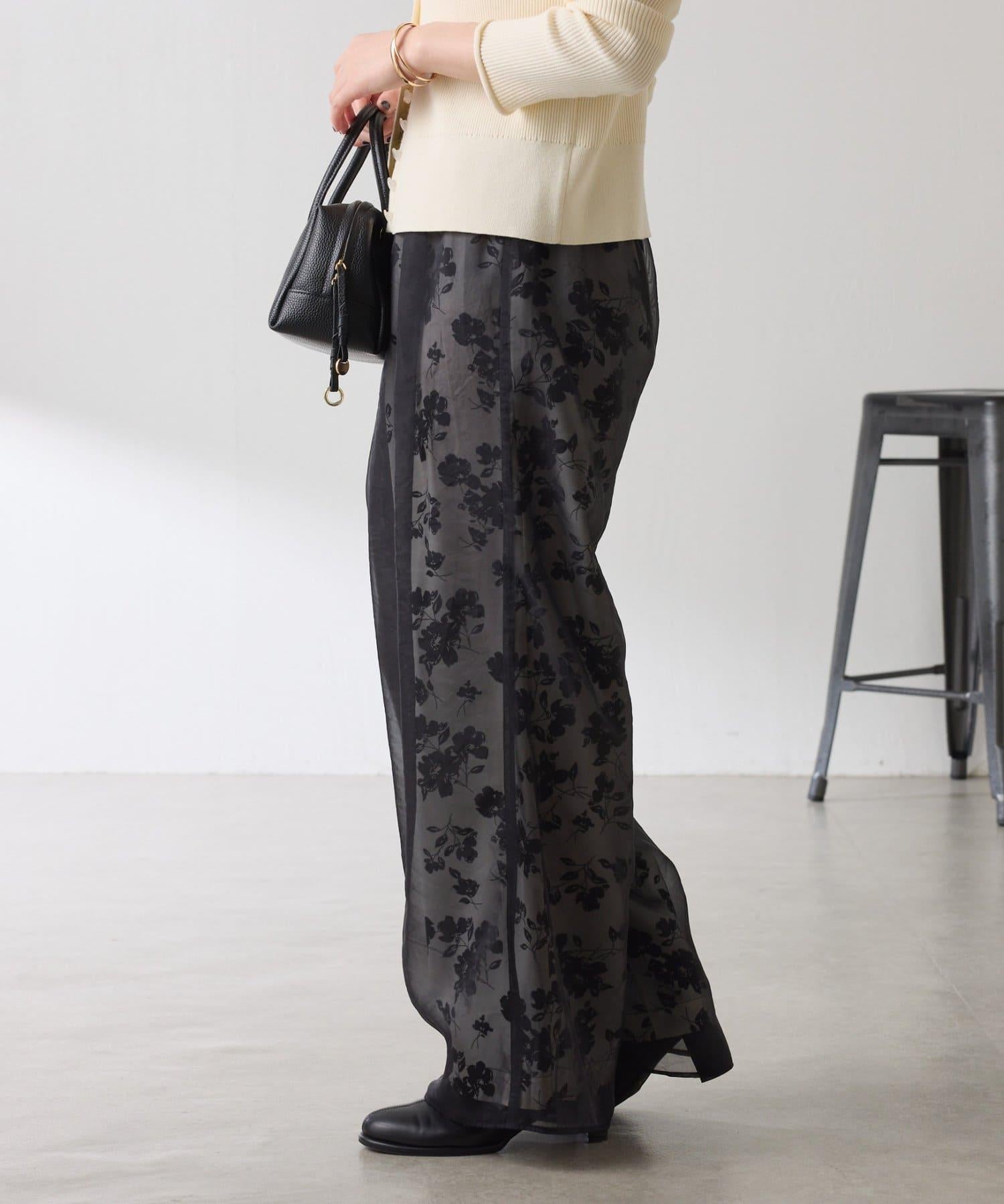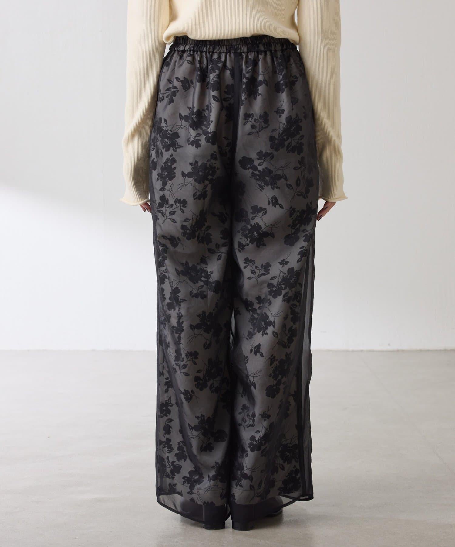 半寬鬆長褲,花朵圖案上有一層薄紗,即使在冬天也能享受薄紗的樂趣。