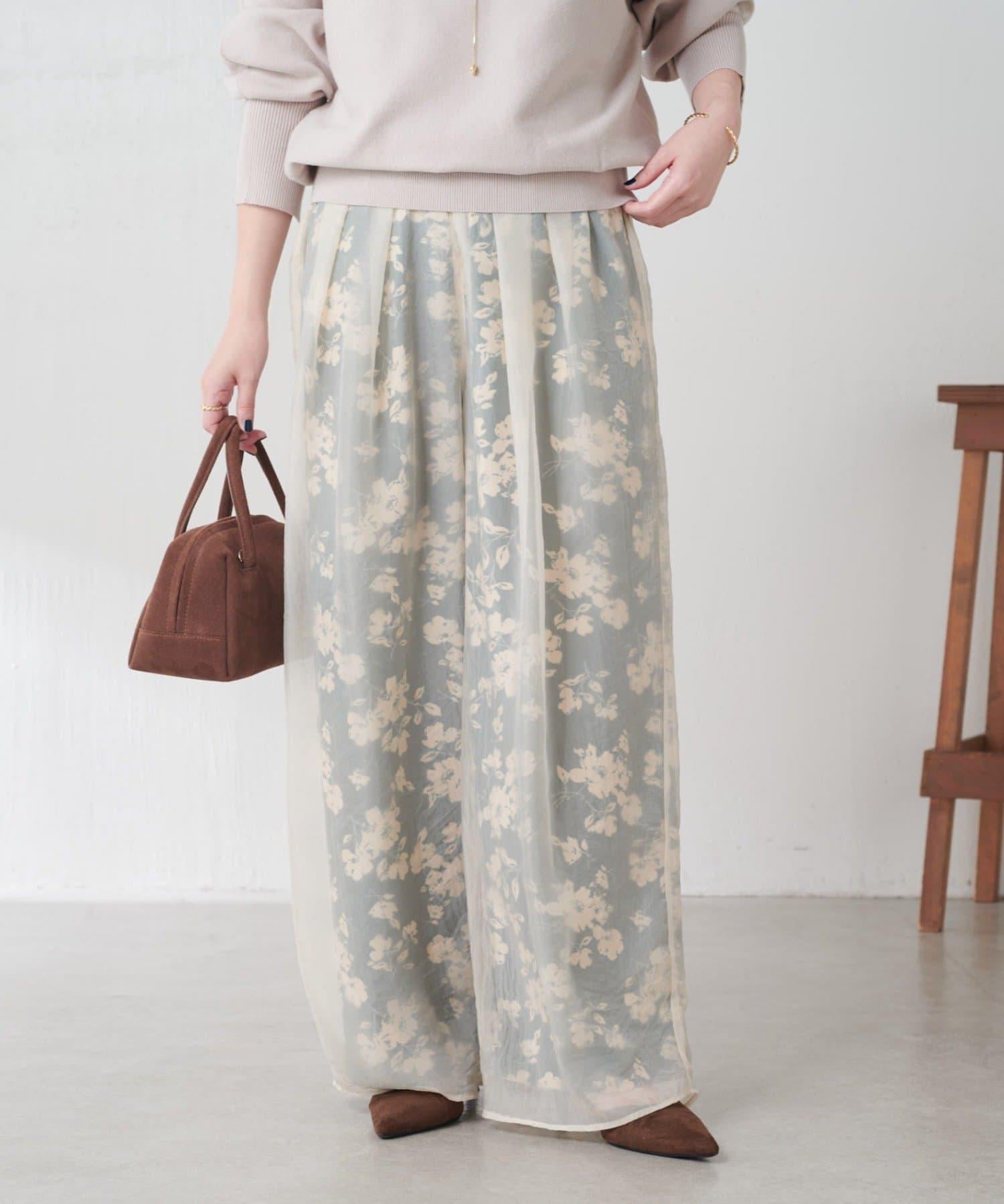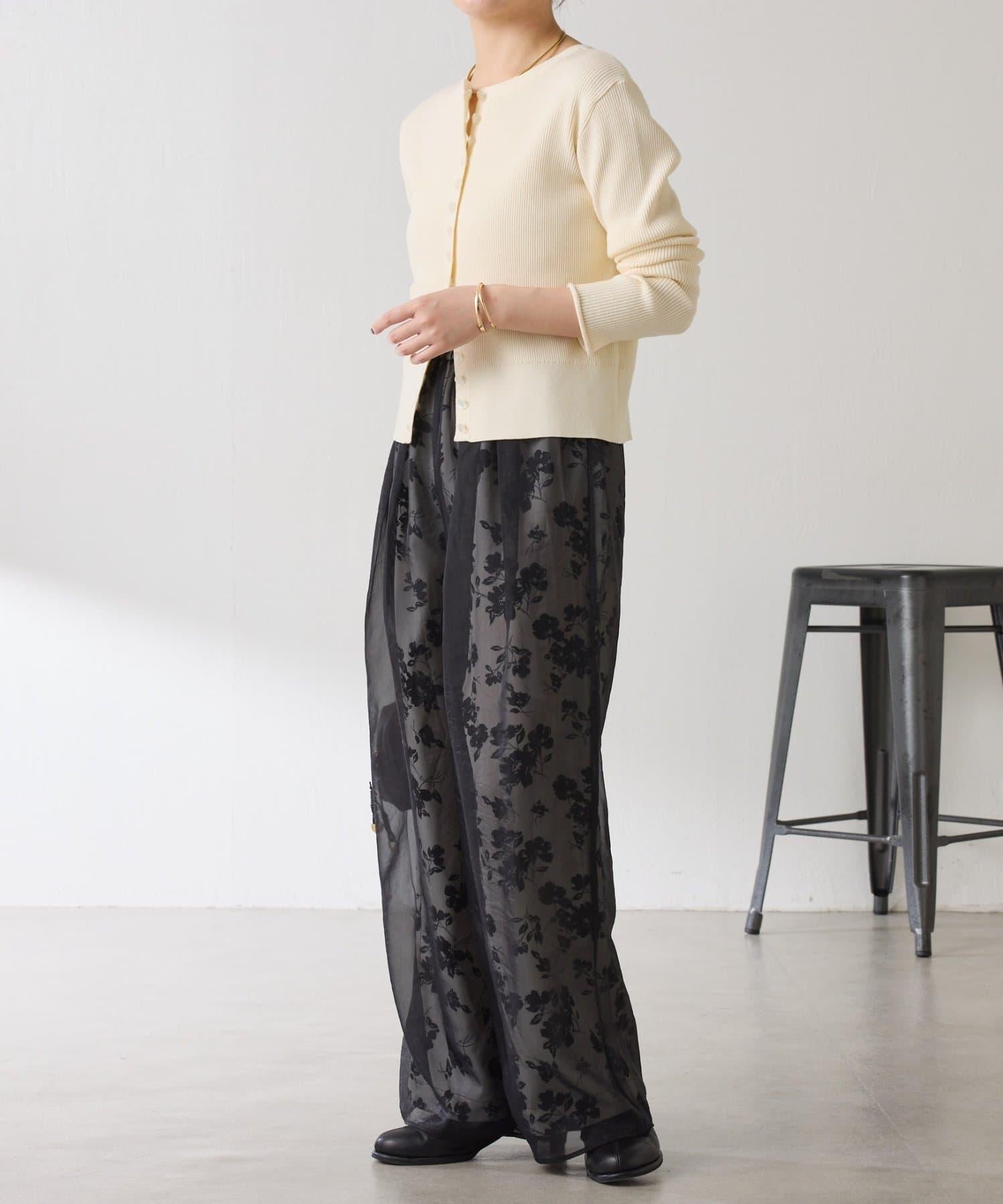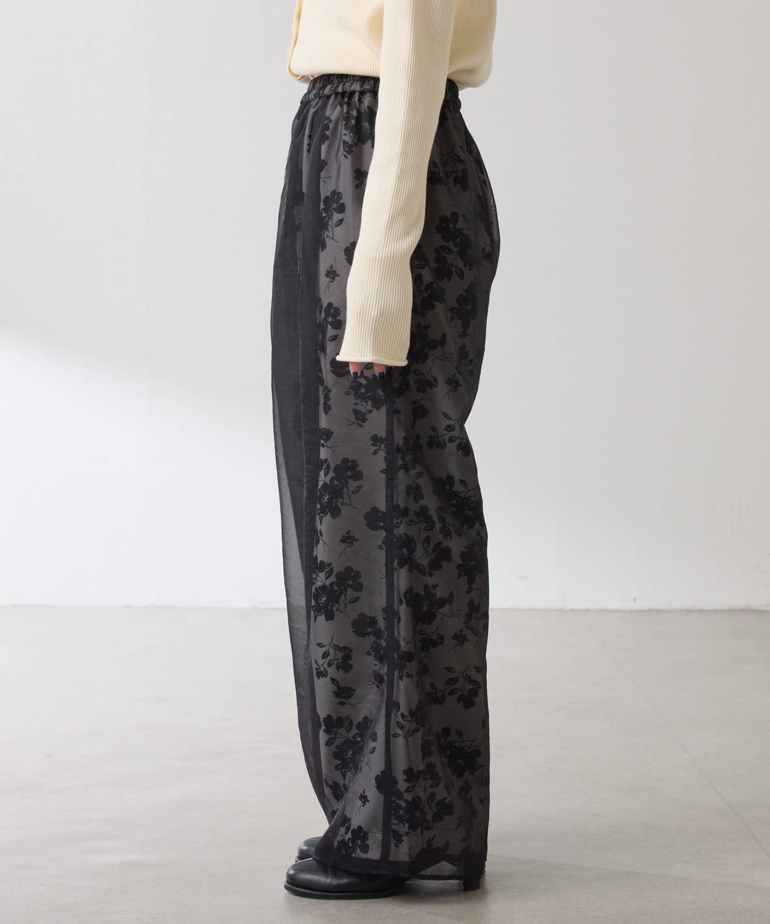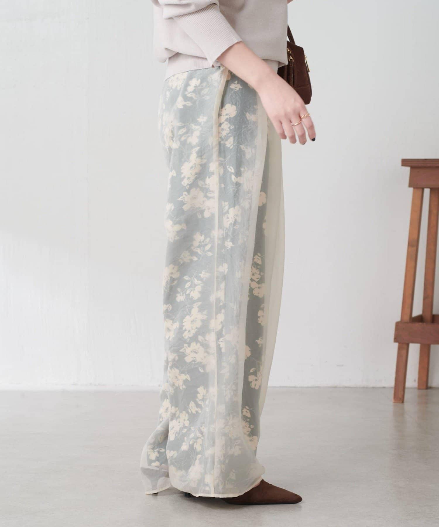 半寬鬆長褲,花朵圖案上有一層薄紗,即使在冬天也能享受薄紗的樂趣。