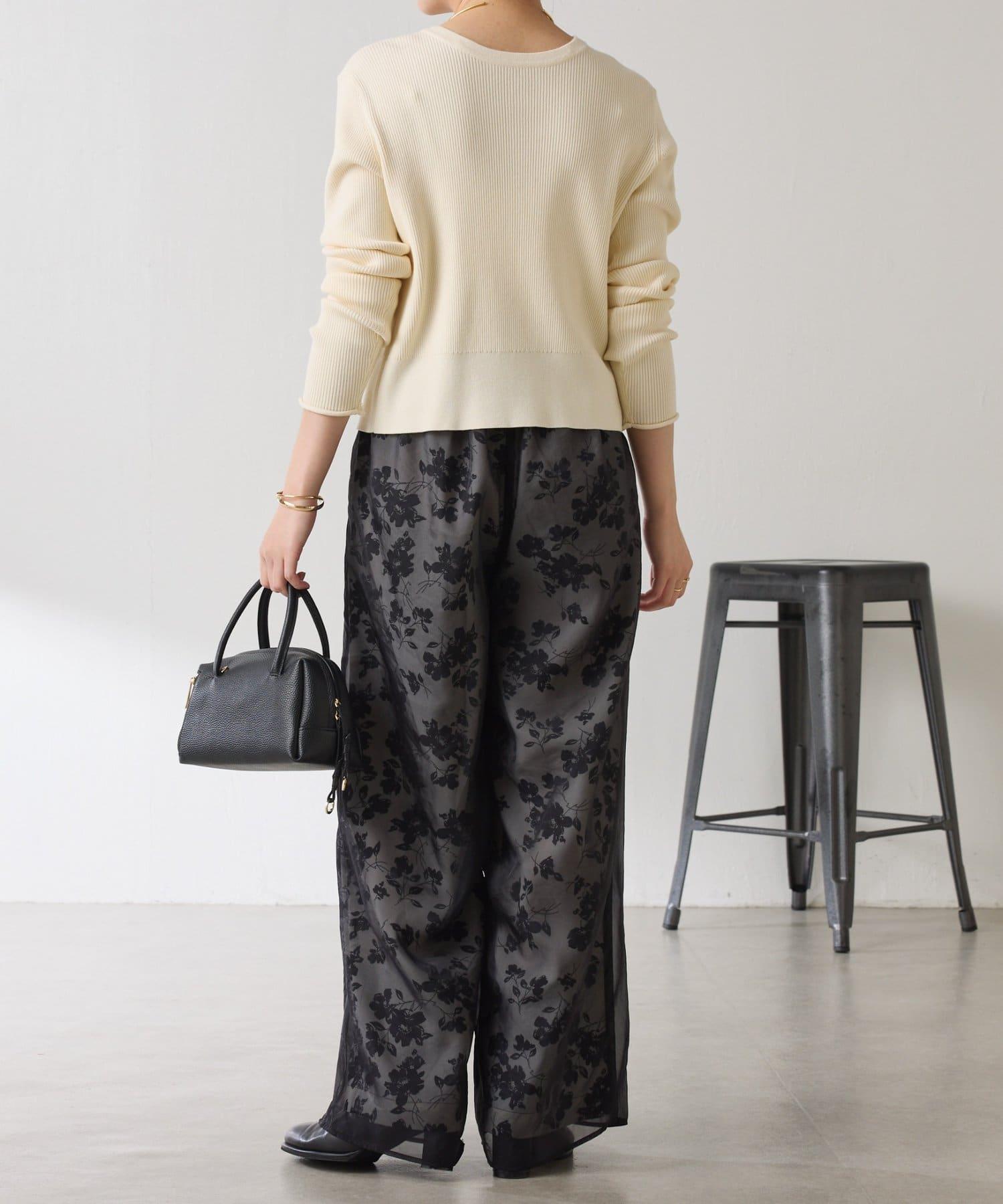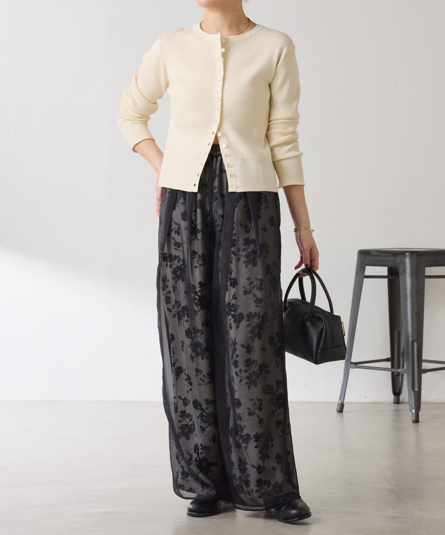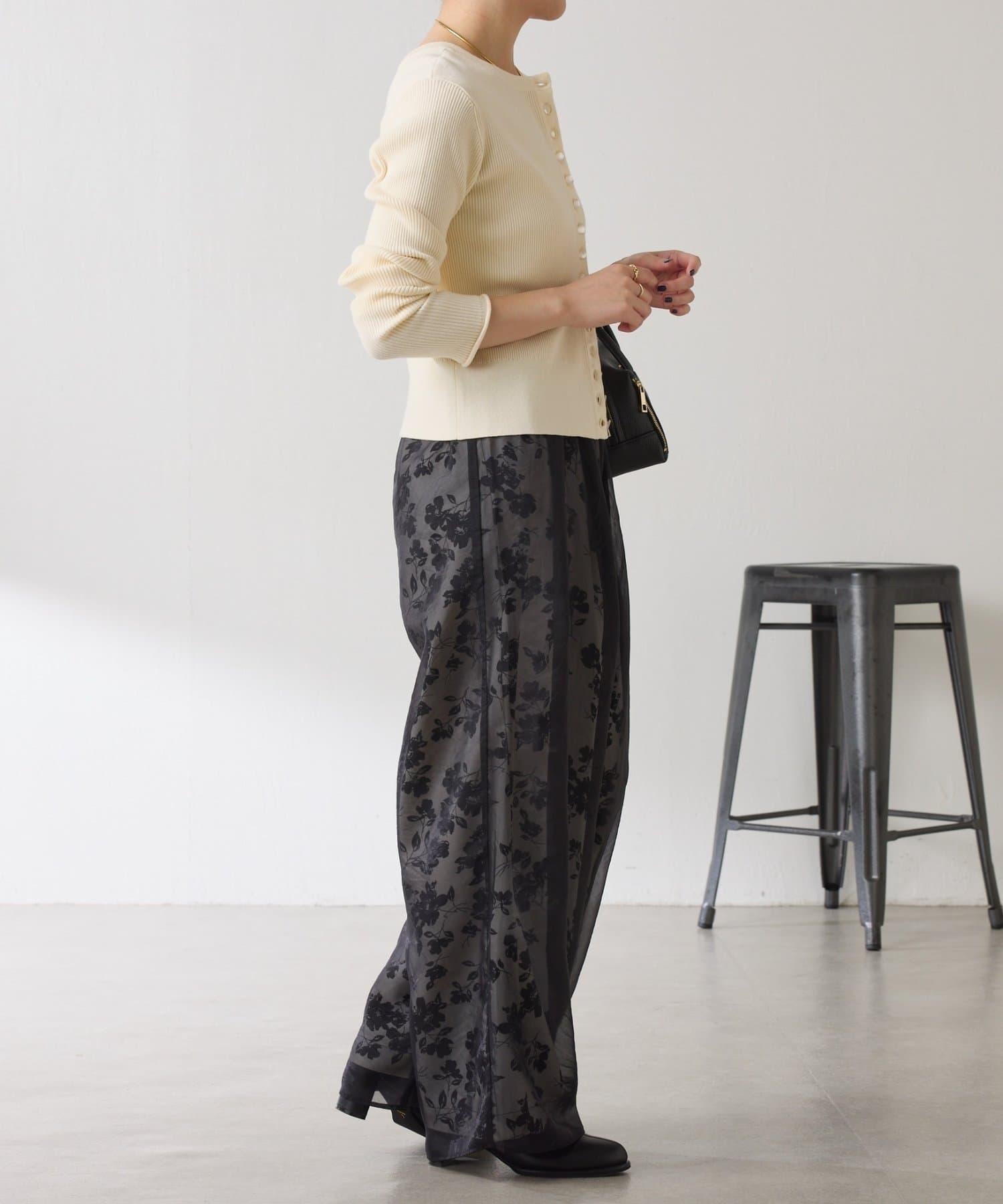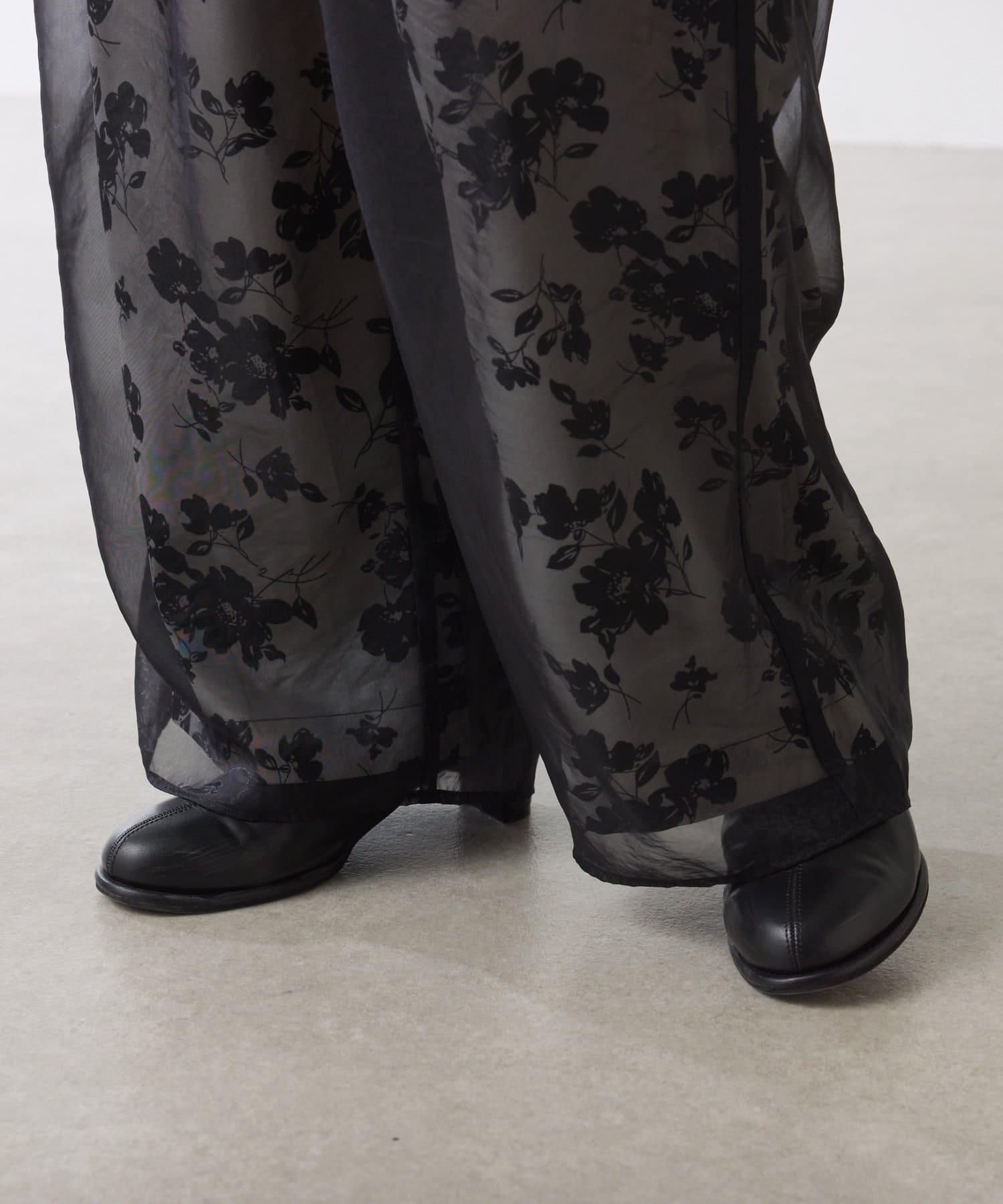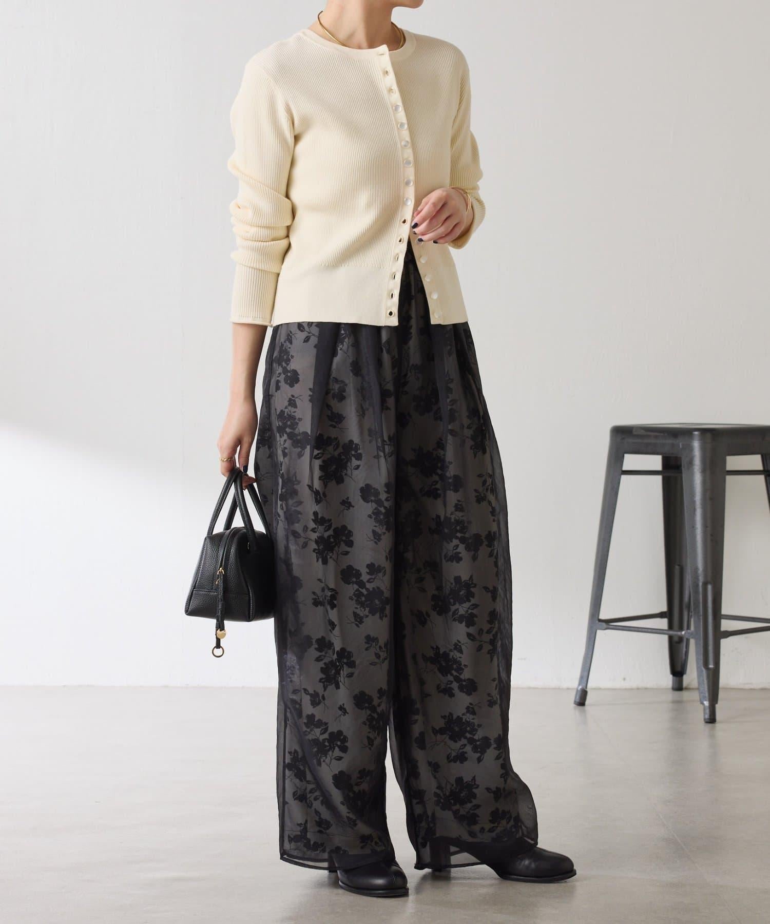 半寬鬆長褲,花朵圖案上有一層薄紗,即使在冬天也能享受薄紗的樂趣。
