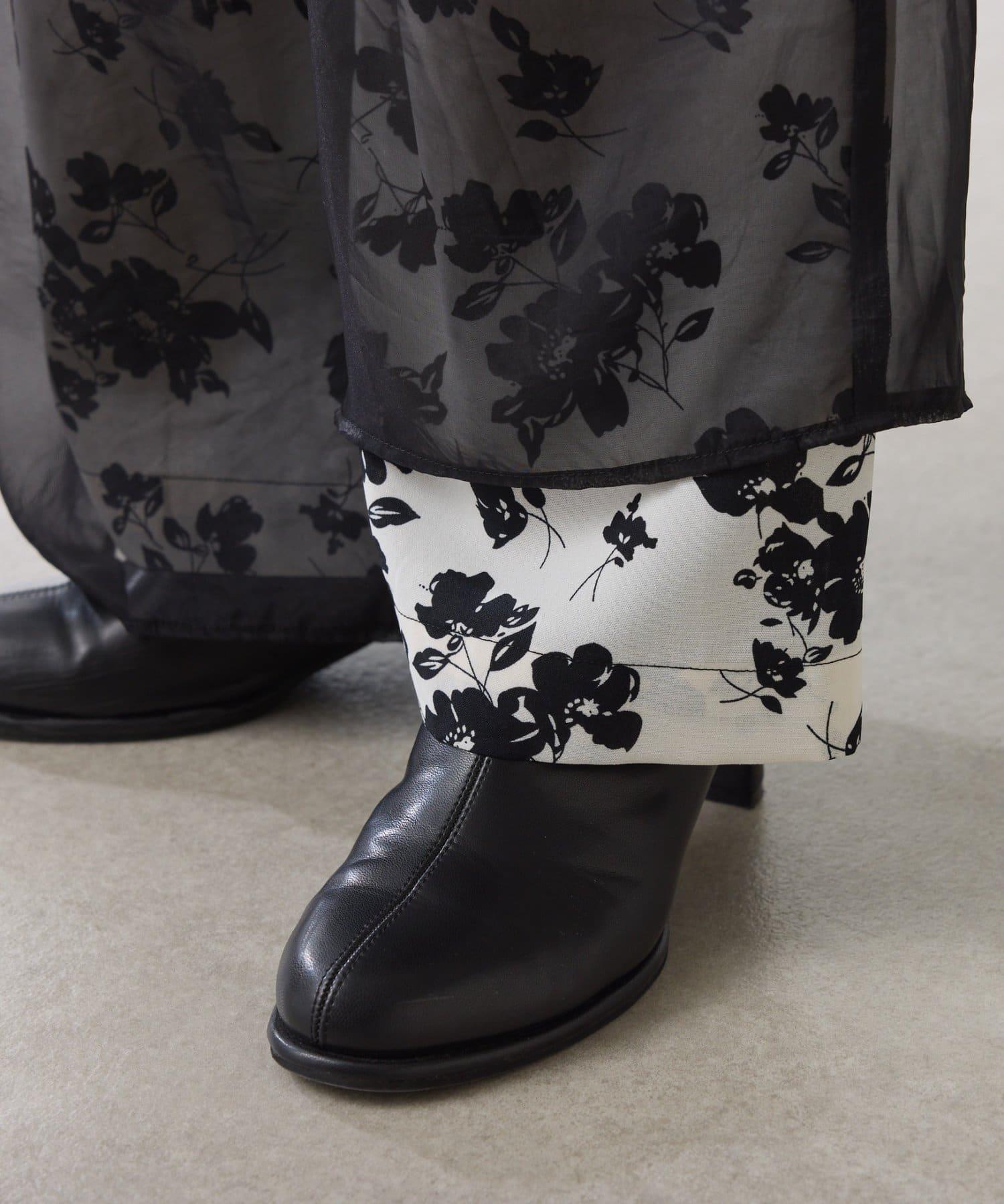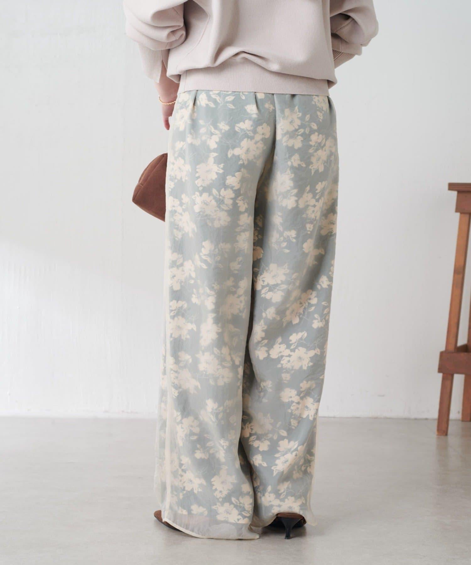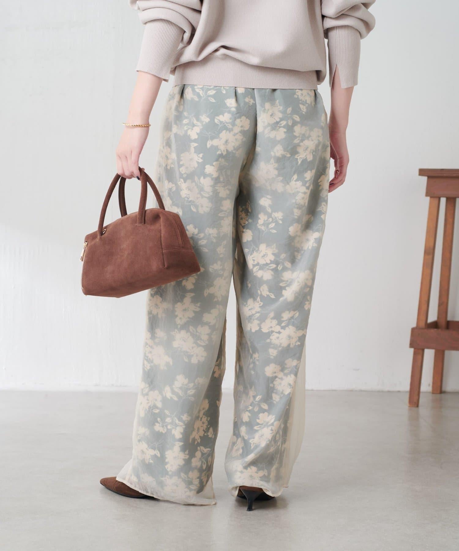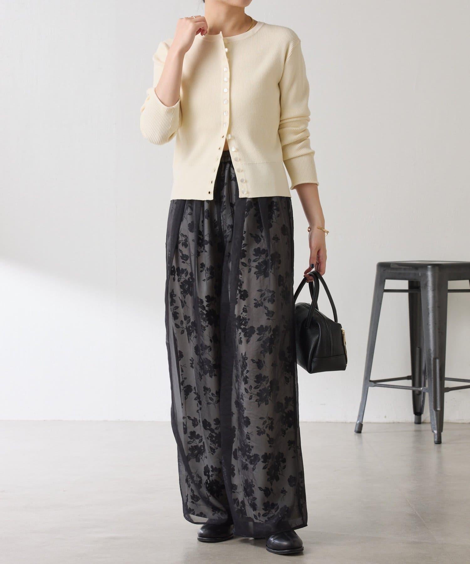 半寬鬆長褲,花朵圖案上有一層薄紗,即使在冬天也能享受薄紗的樂趣。