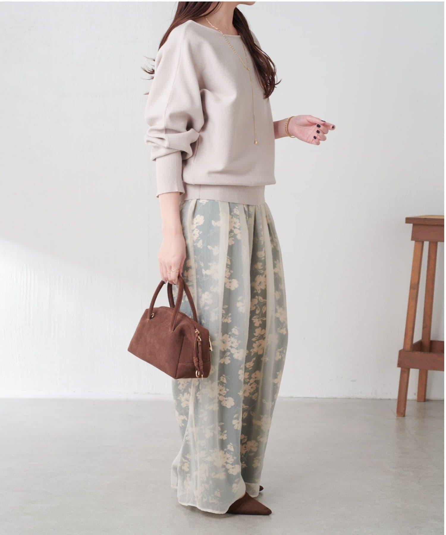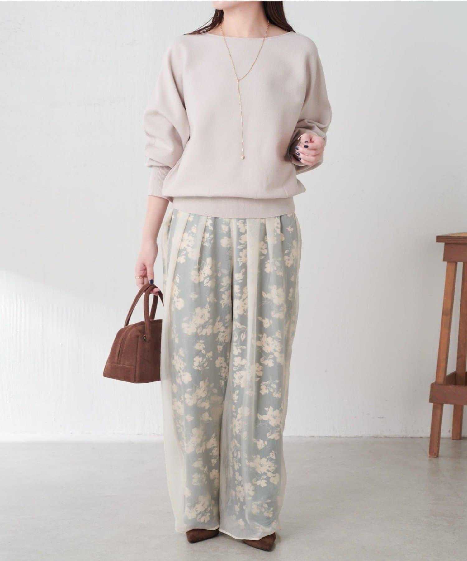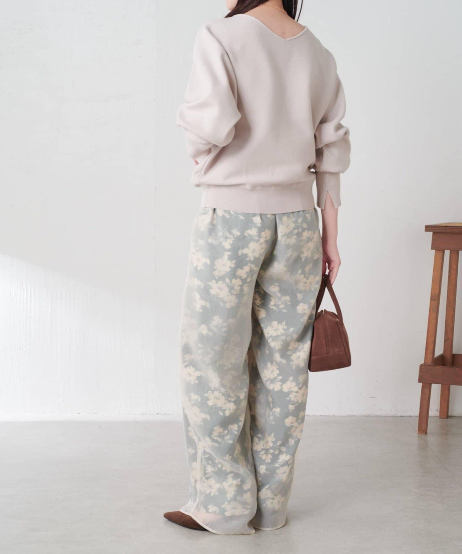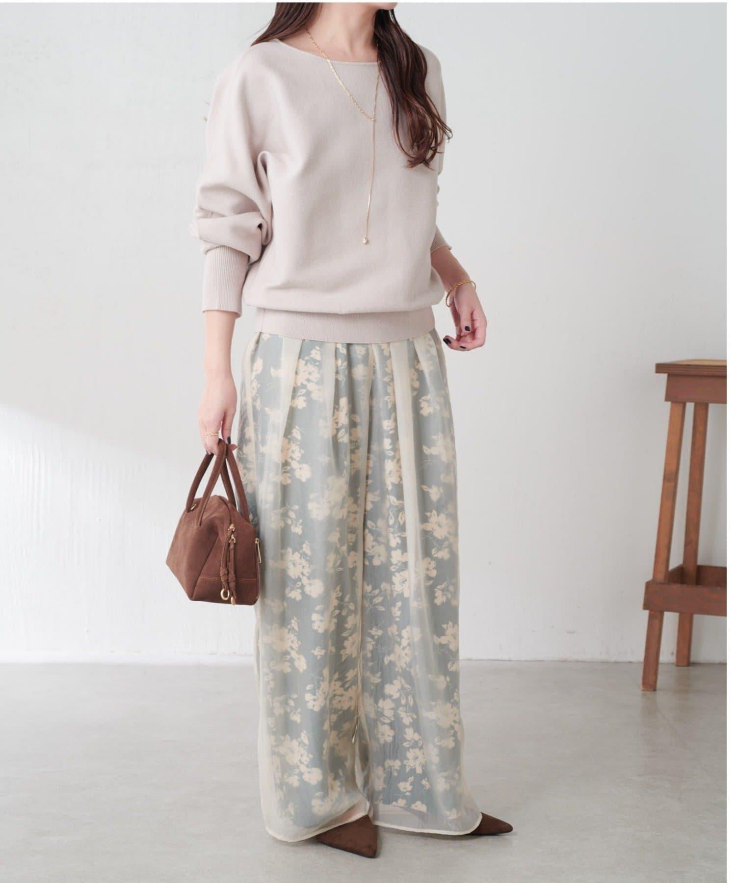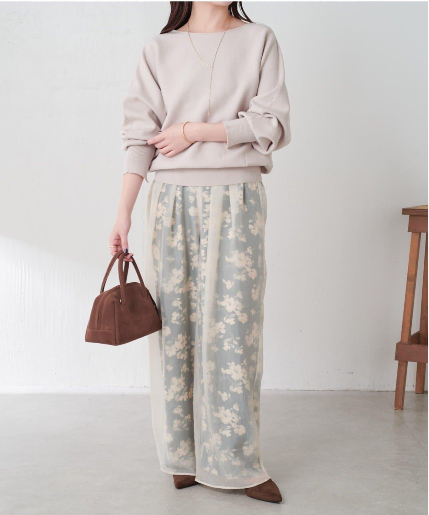 半寬鬆長褲,花朵圖案上有一層薄紗,即使在冬天也能享受薄紗的樂趣。