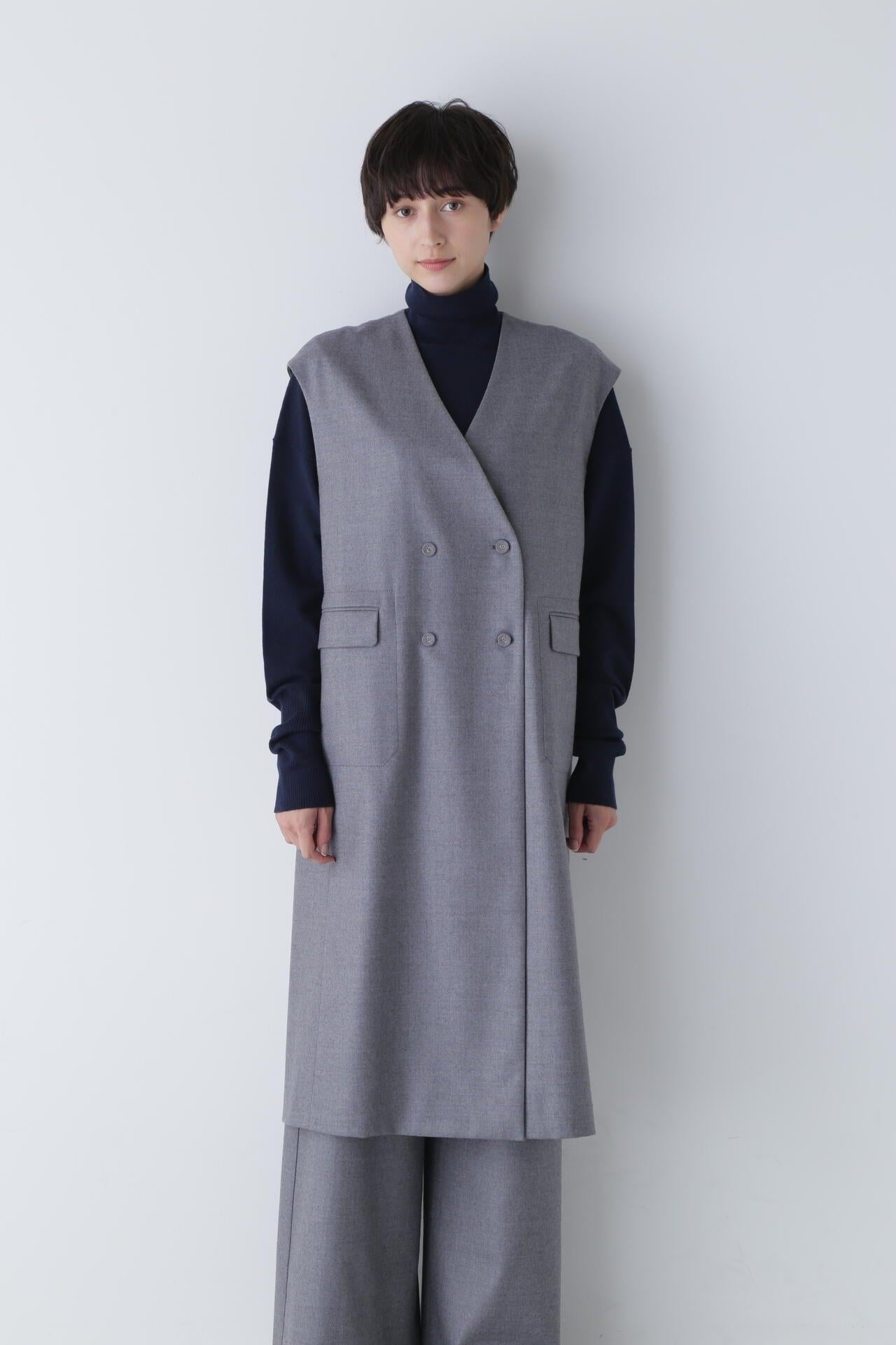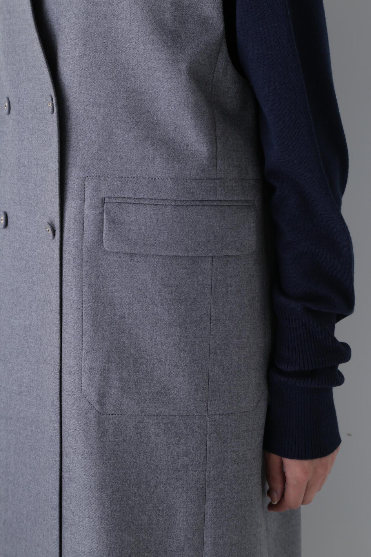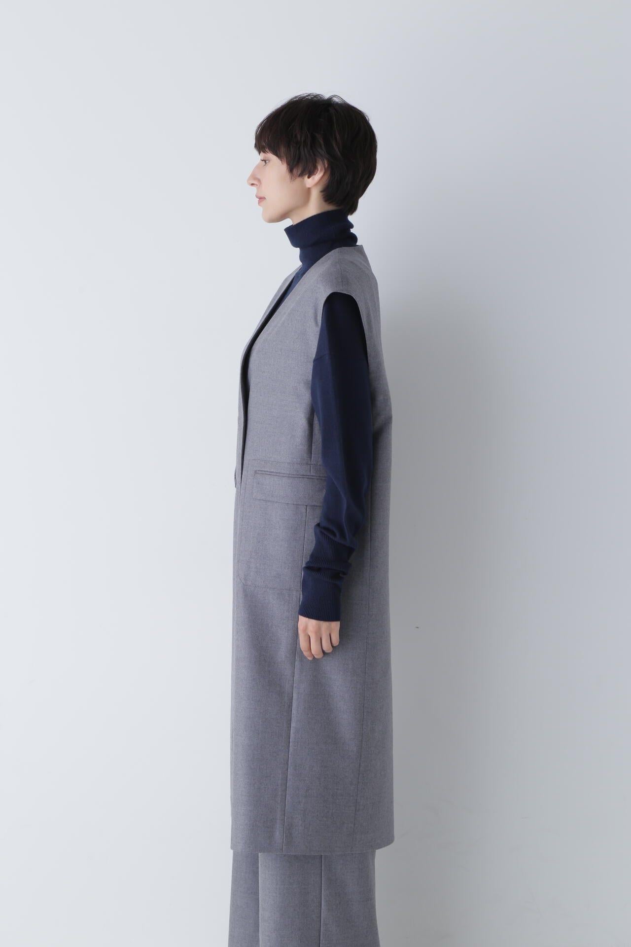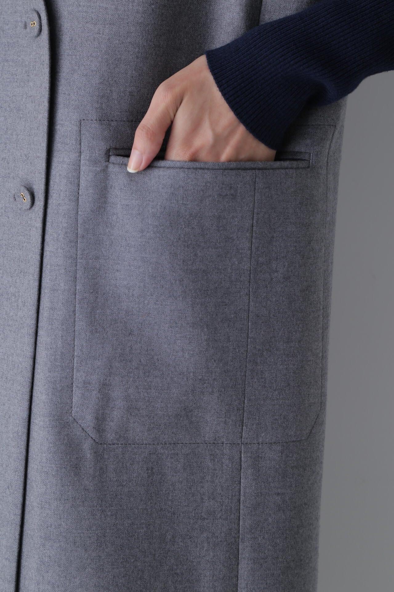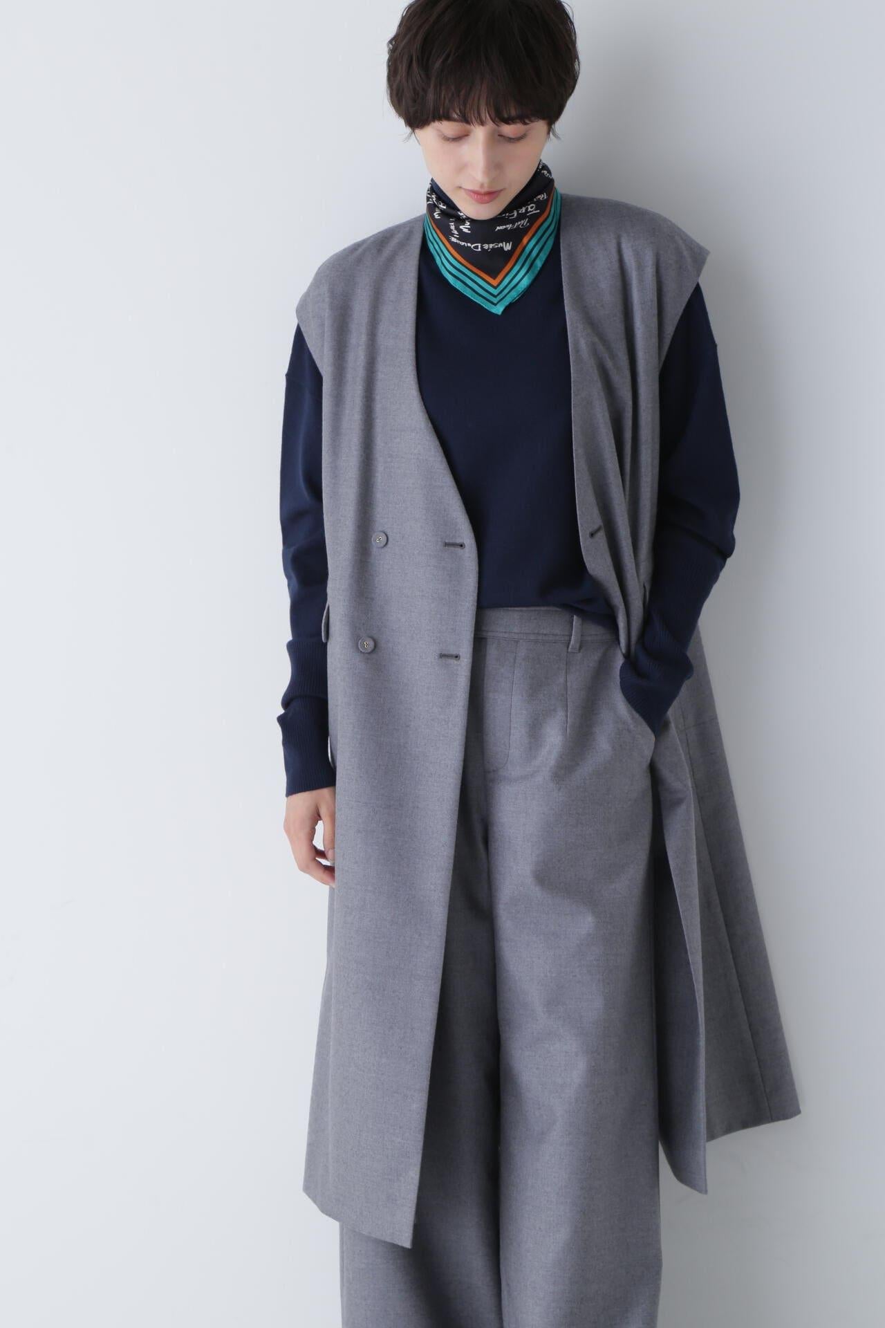 這款長款套頭衫只需穿上它,就能提升你的著裝品位 [設計特色] 這款雙前襟無領套頭衫採用寬鬆的方形剪裁。口袋的隨意運用是其一大亮點。面料採用比紹地區織造的柔軟輕盈的羊毛法蘭絨。可水洗,可在家手洗。推薦搭配:可與標誌運動鞋等休閒單品搭配,打造寬鬆造型。此外,還可搭配豐滿袖子的襯衫和透視高領毛衣等淑女風單品,讓您隨心搭配。
