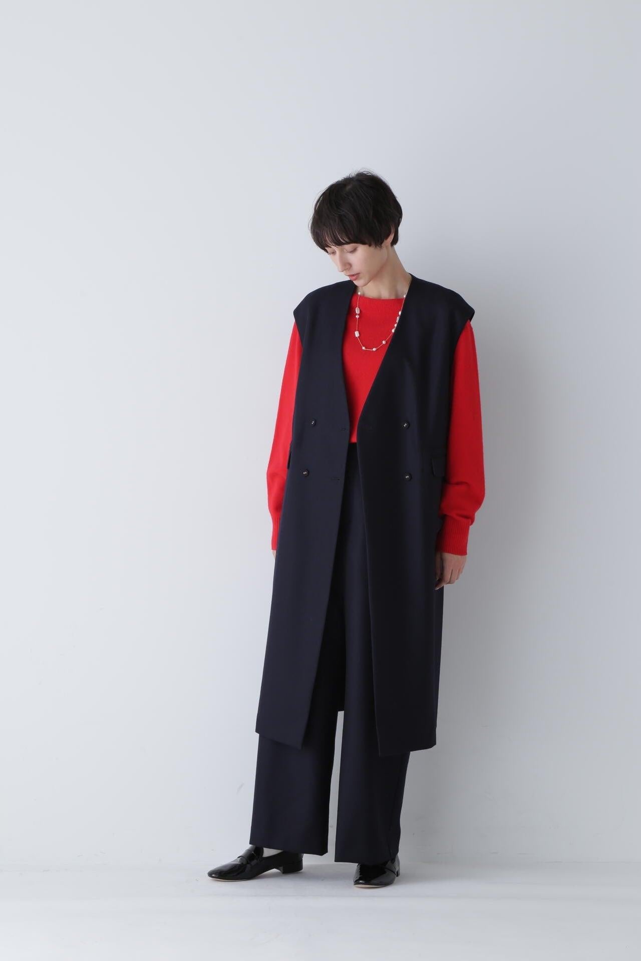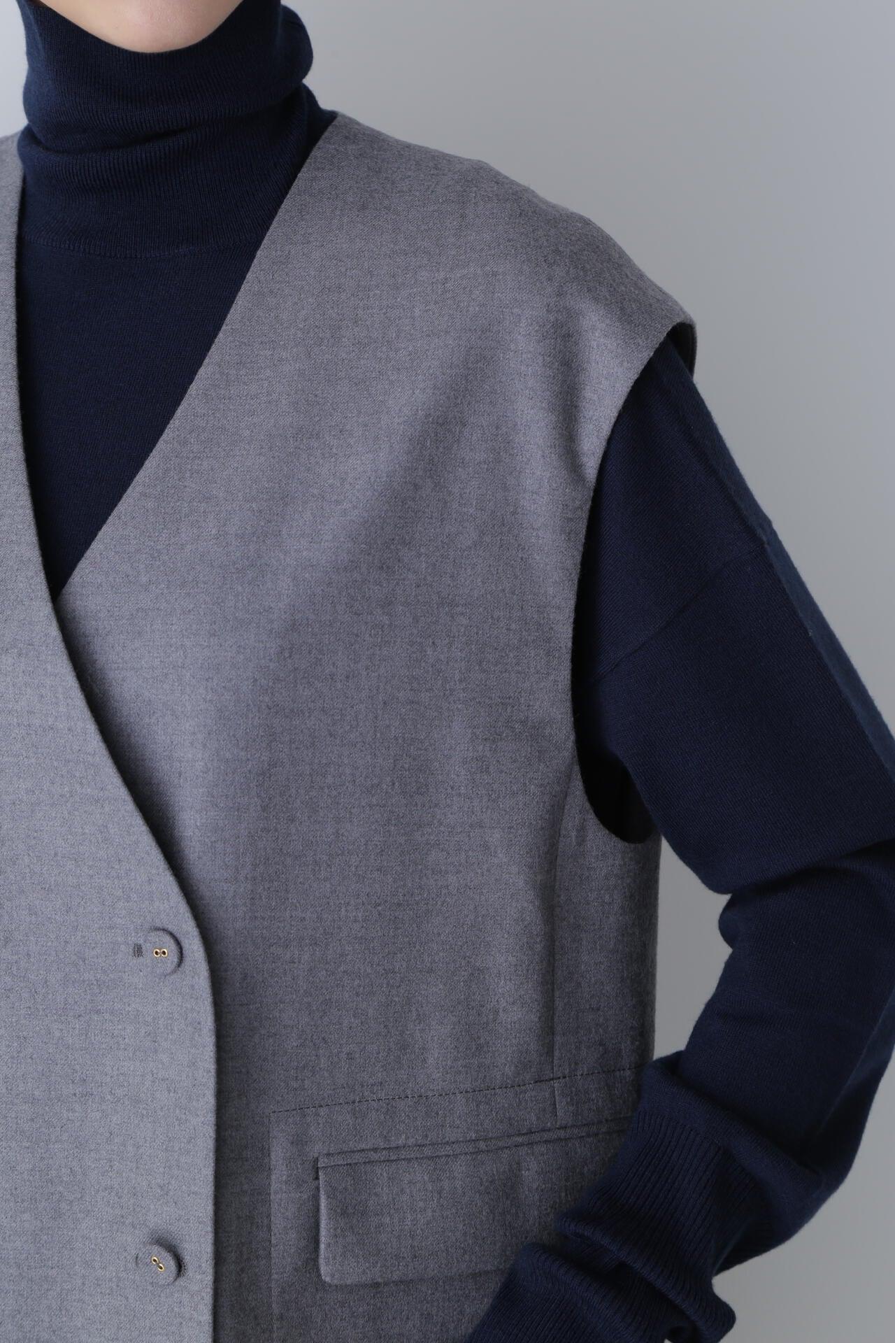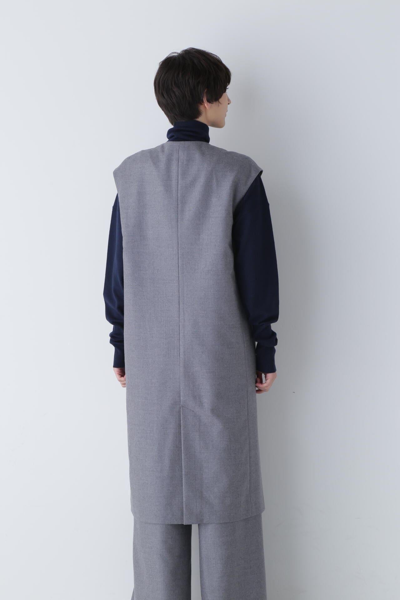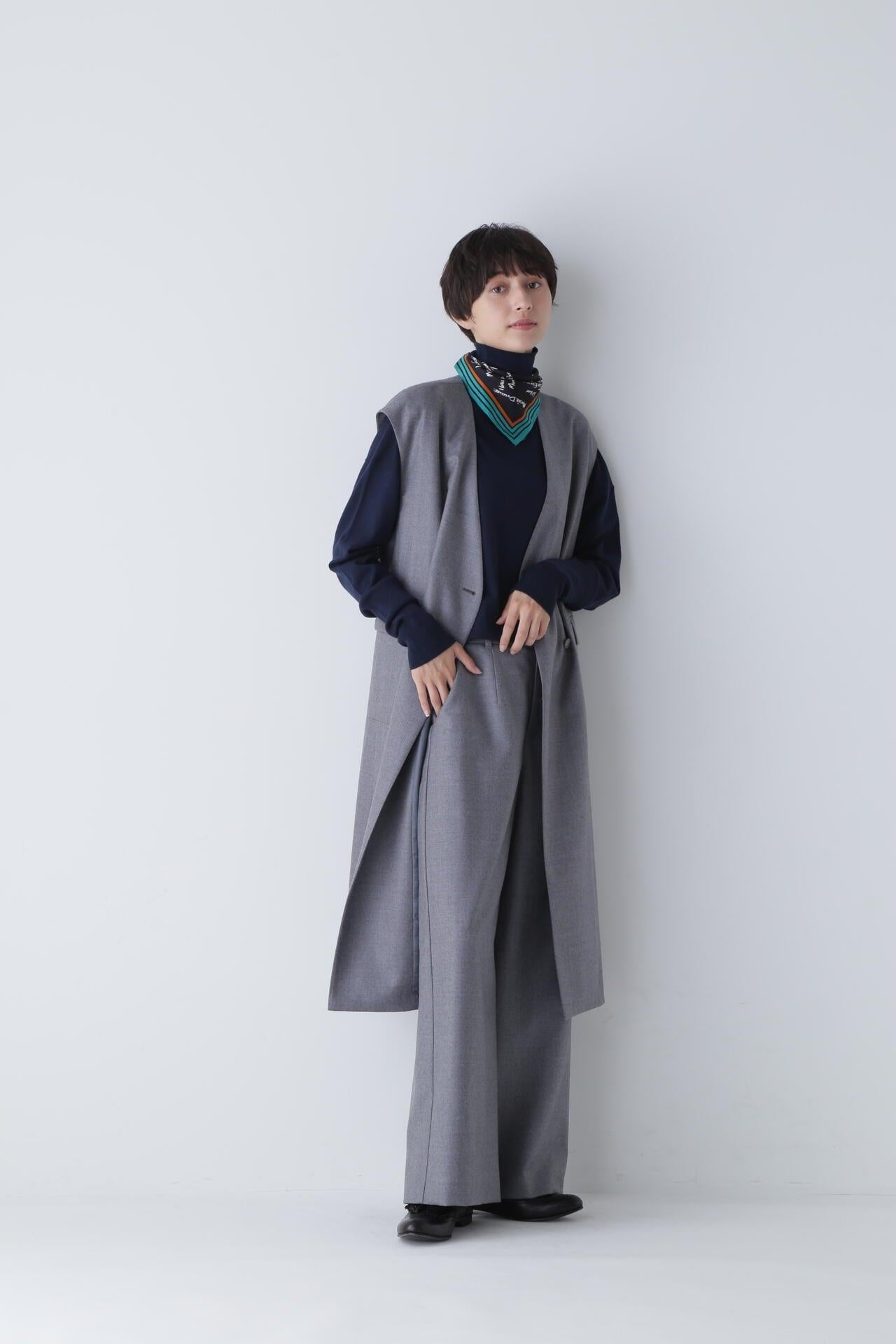這款長款套頭衫只需穿上它,就能提升你的著裝品位 [設計特色] 這款雙前襟無領套頭衫採用寬鬆的方形剪裁。口袋的隨意運用是其一大亮點。面料採用比紹地區織造的柔軟輕盈的羊毛法蘭絨。可水洗,可在家手洗。推薦搭配:可與標誌運動鞋等休閒單品搭配,打造寬鬆造型。此外,還可搭配豐滿袖子的襯衫和透視高領毛衣等淑女風單品,讓您隨心搭配。