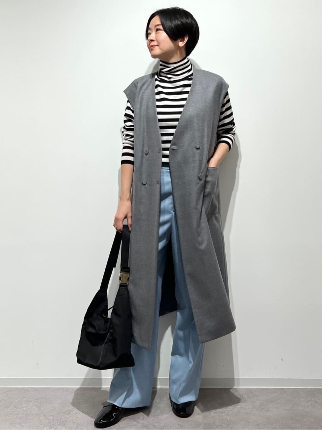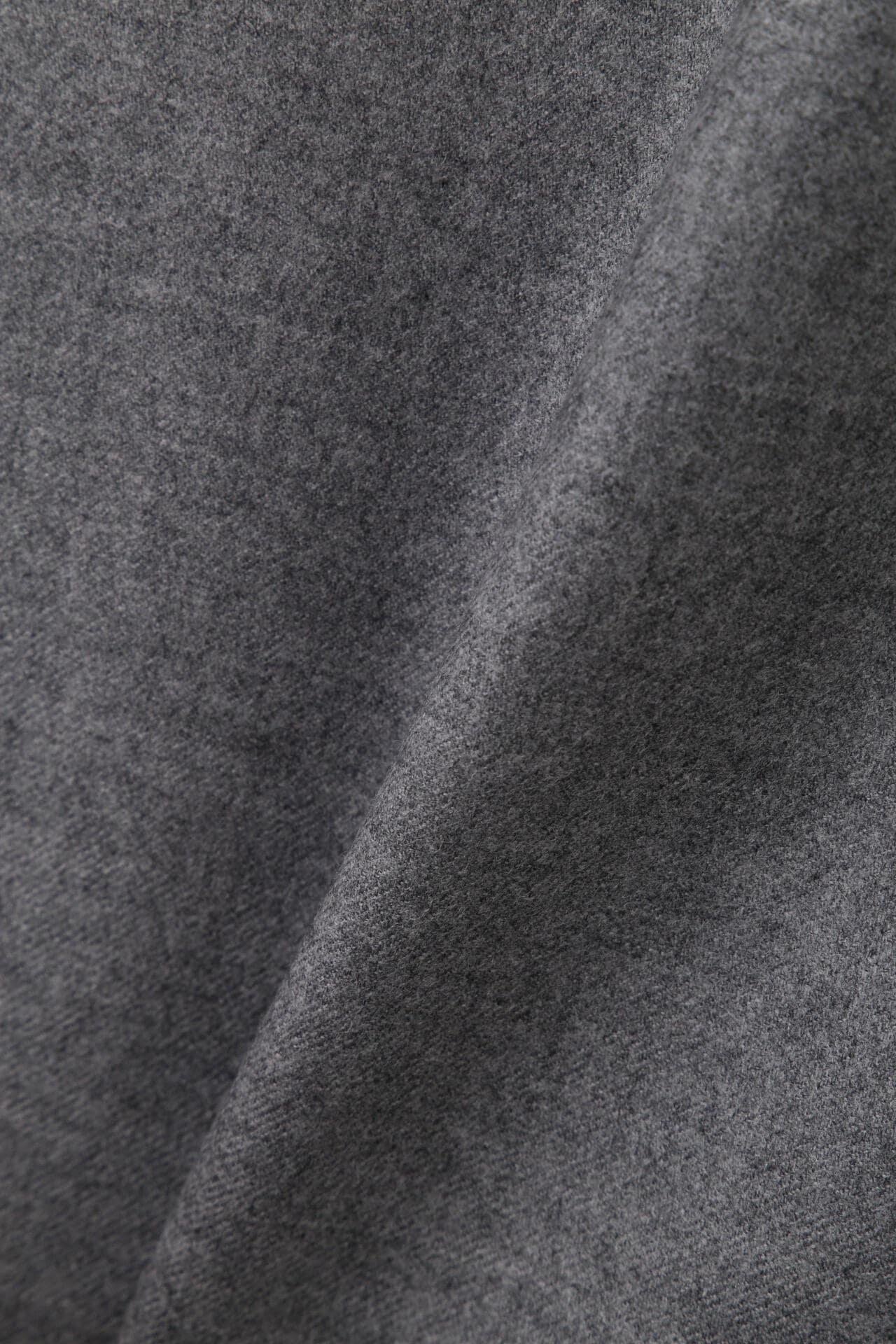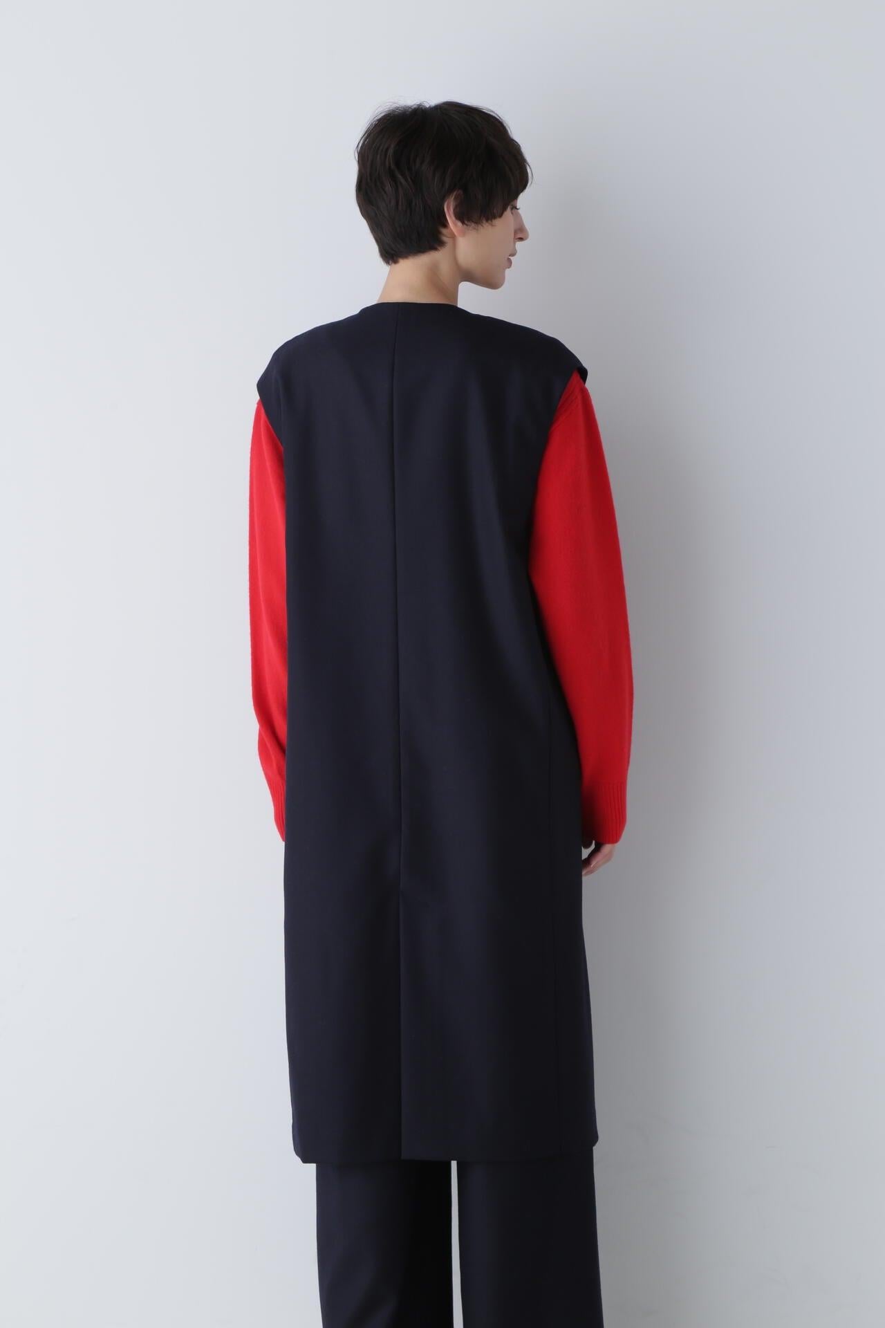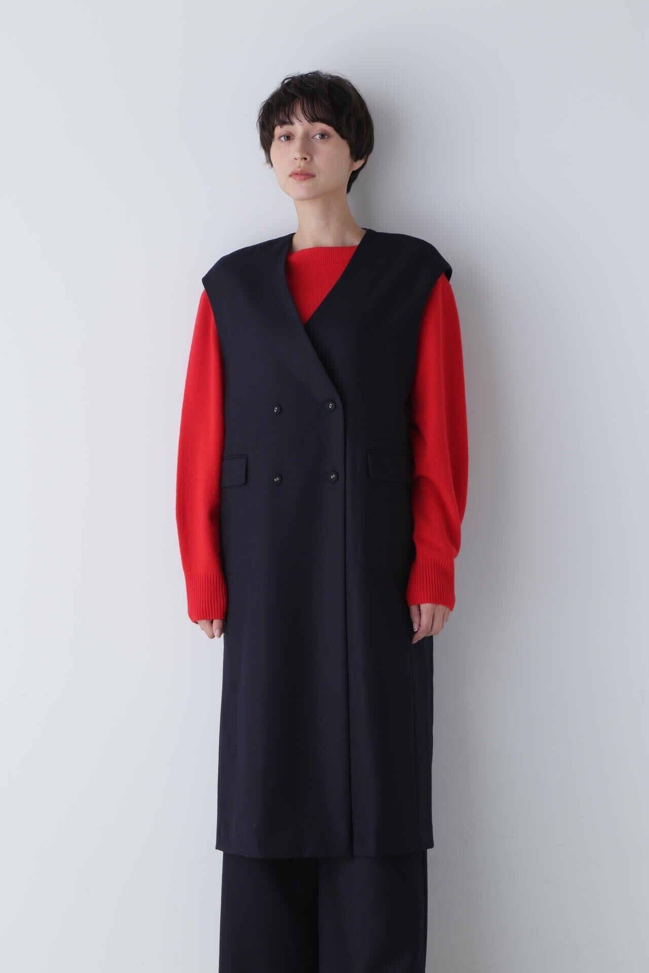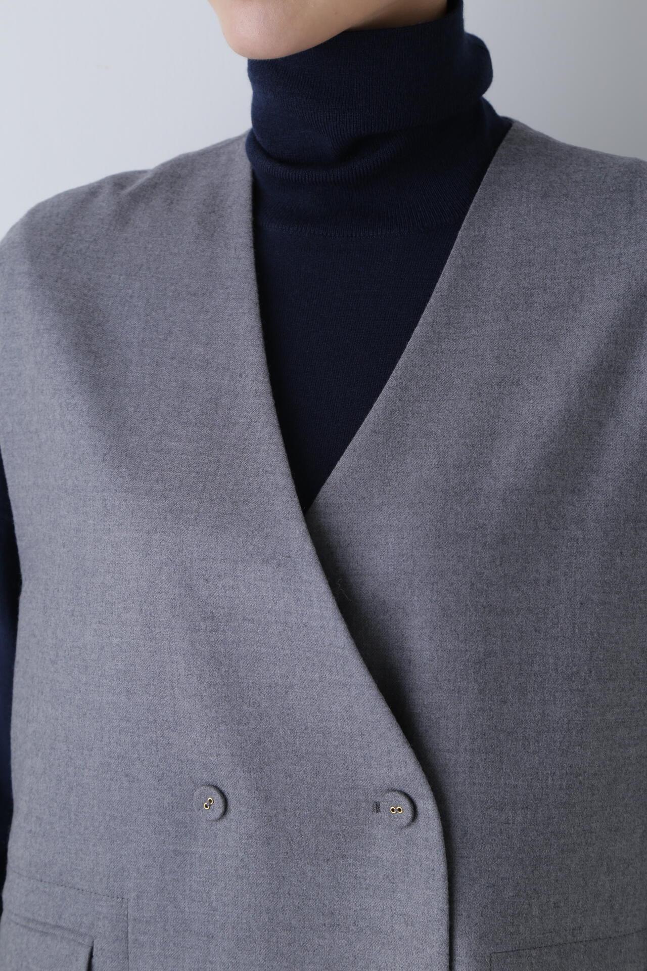 這款長款套頭衫只需穿上它,就能提升你的著裝品位 [設計特色] 這款雙前襟無領套頭衫採用寬鬆的方形剪裁。口袋的隨意運用是其一大亮點。面料採用比紹地區織造的柔軟輕盈的羊毛法蘭絨。可水洗,可在家手洗。推薦搭配:可與標誌運動鞋等休閒單品搭配,打造寬鬆造型。此外,還可搭配豐滿袖子的襯衫和透視高領毛衣等淑女風單品,讓您隨心搭配。